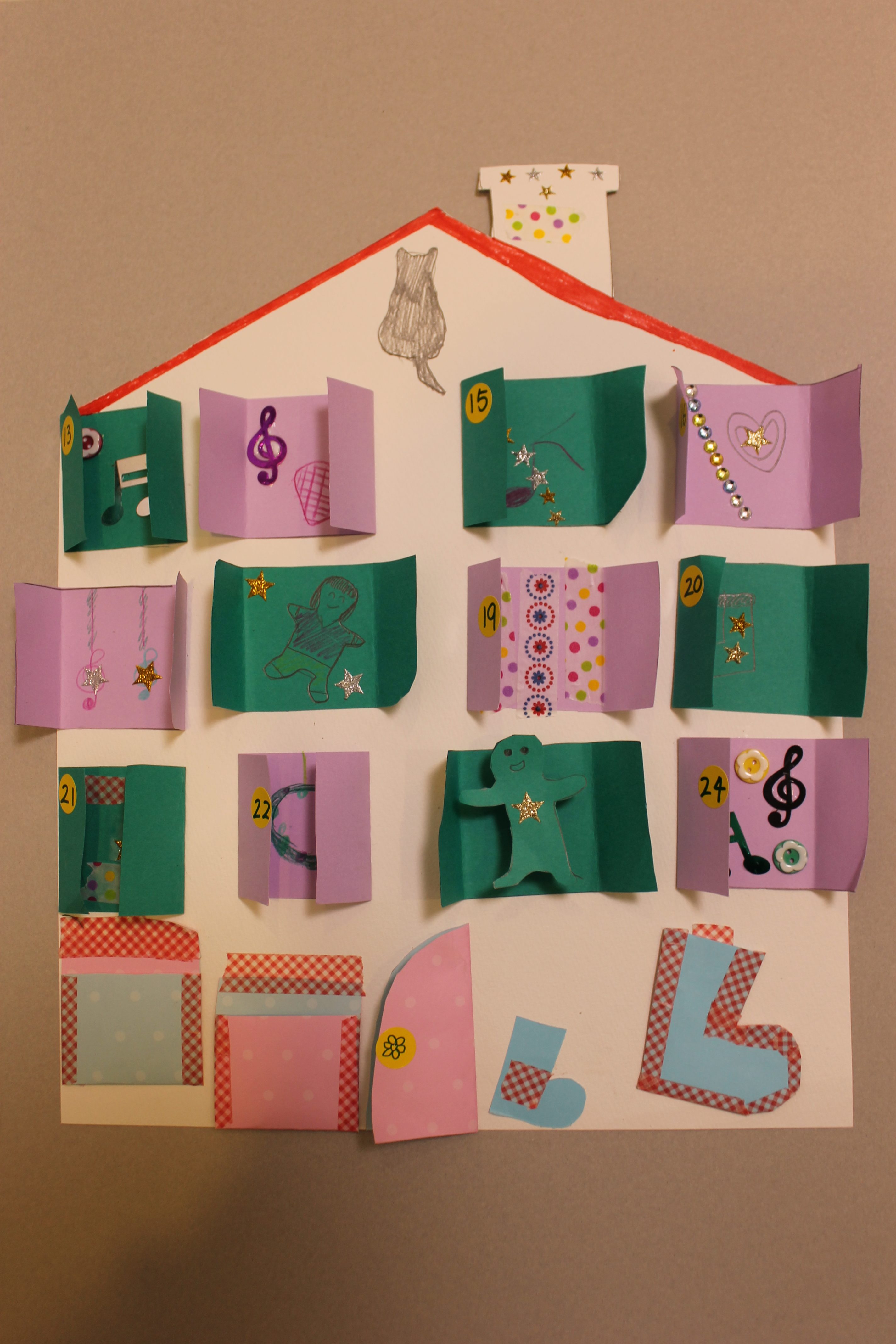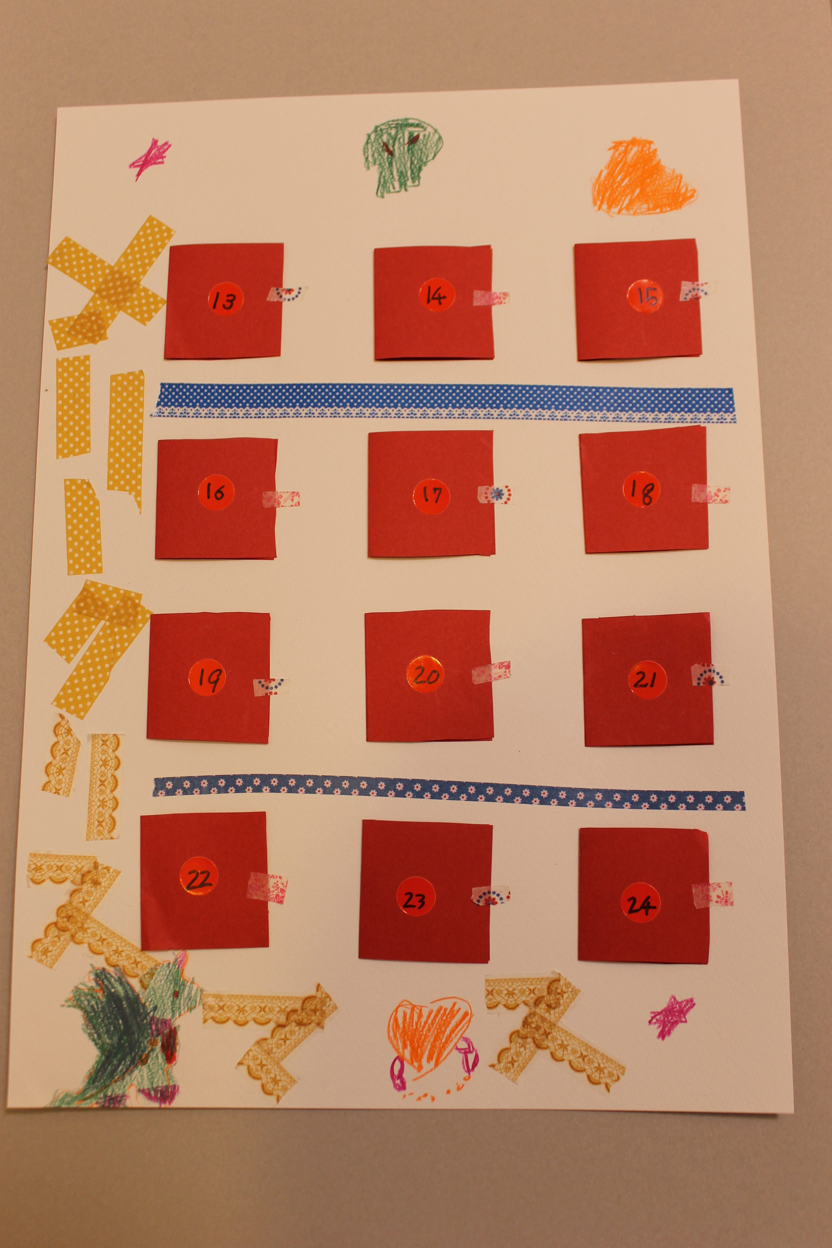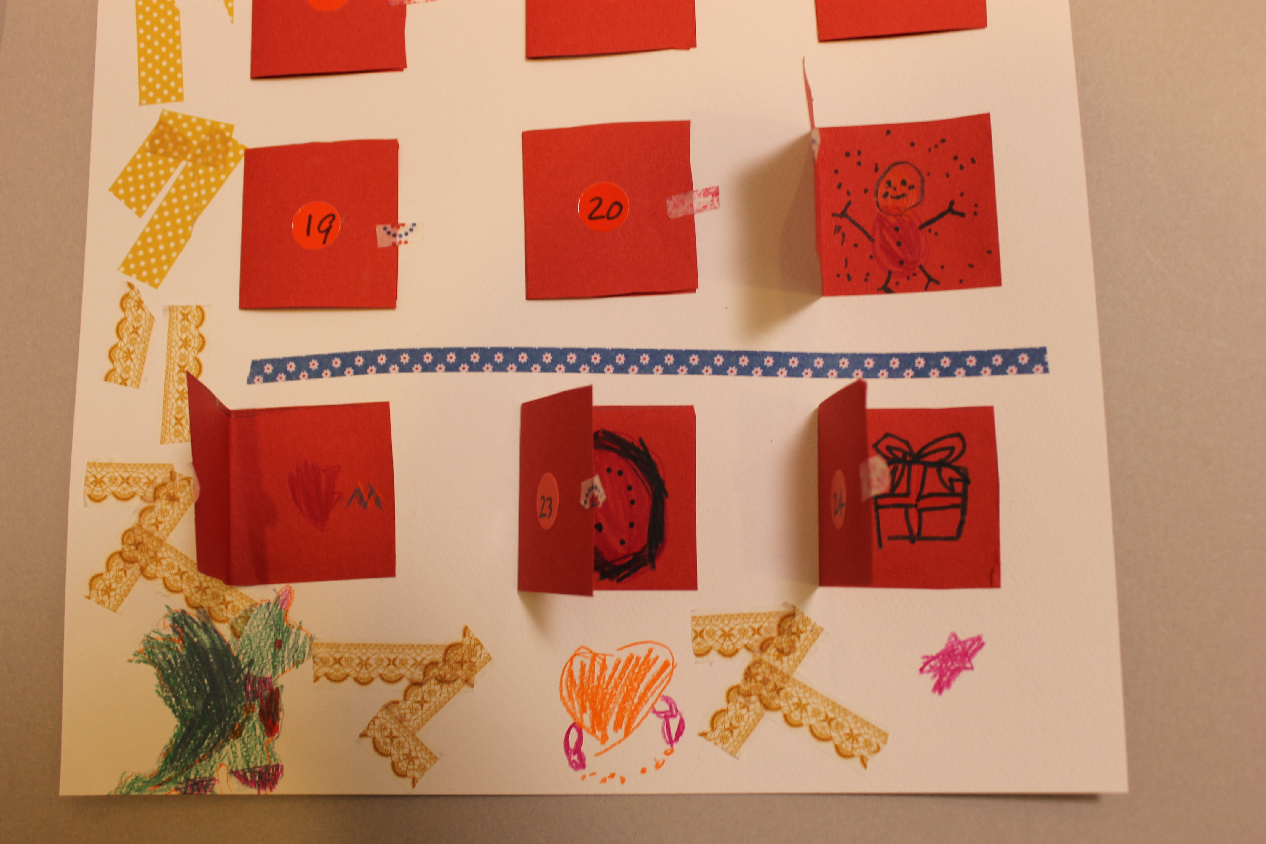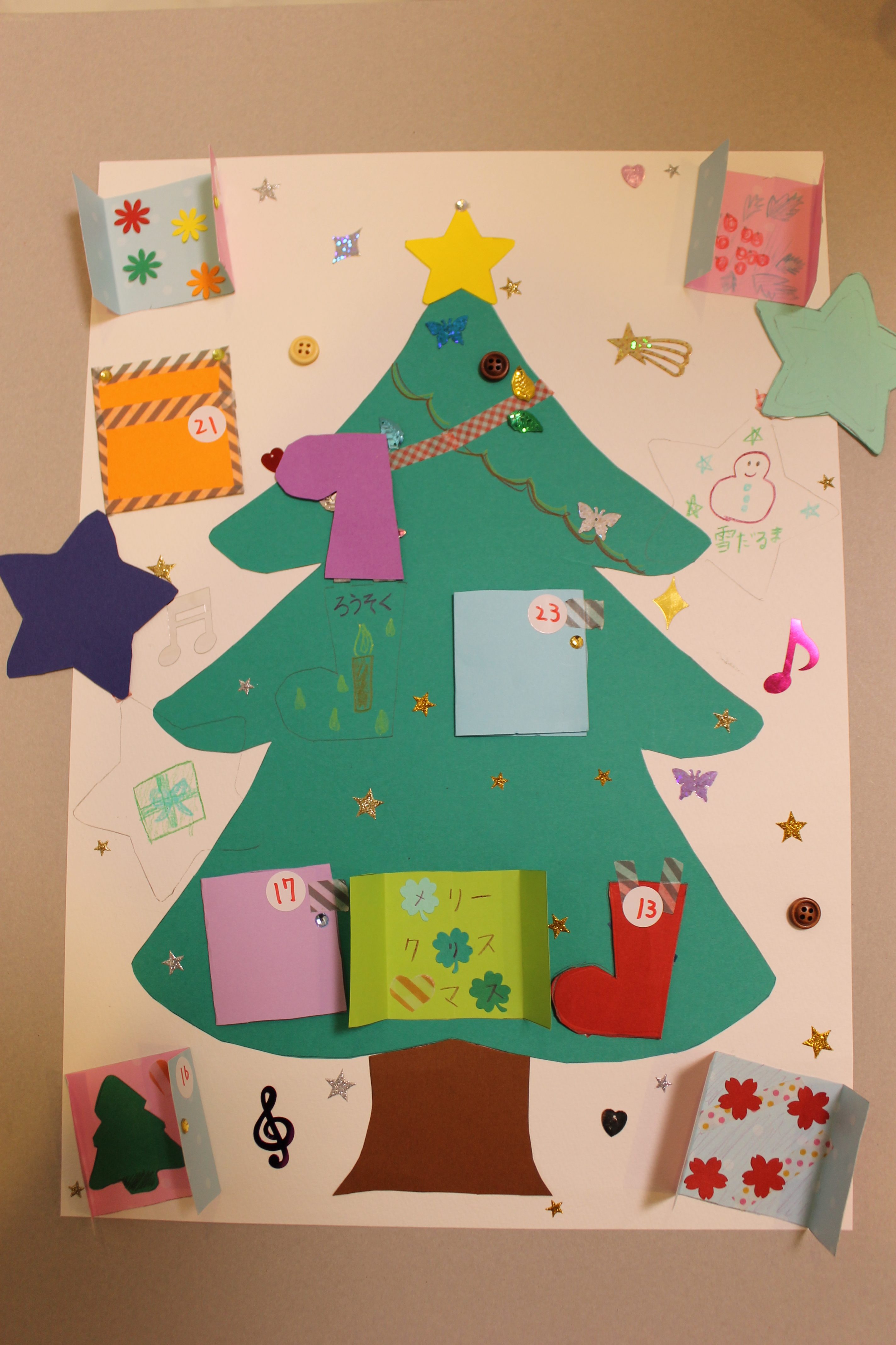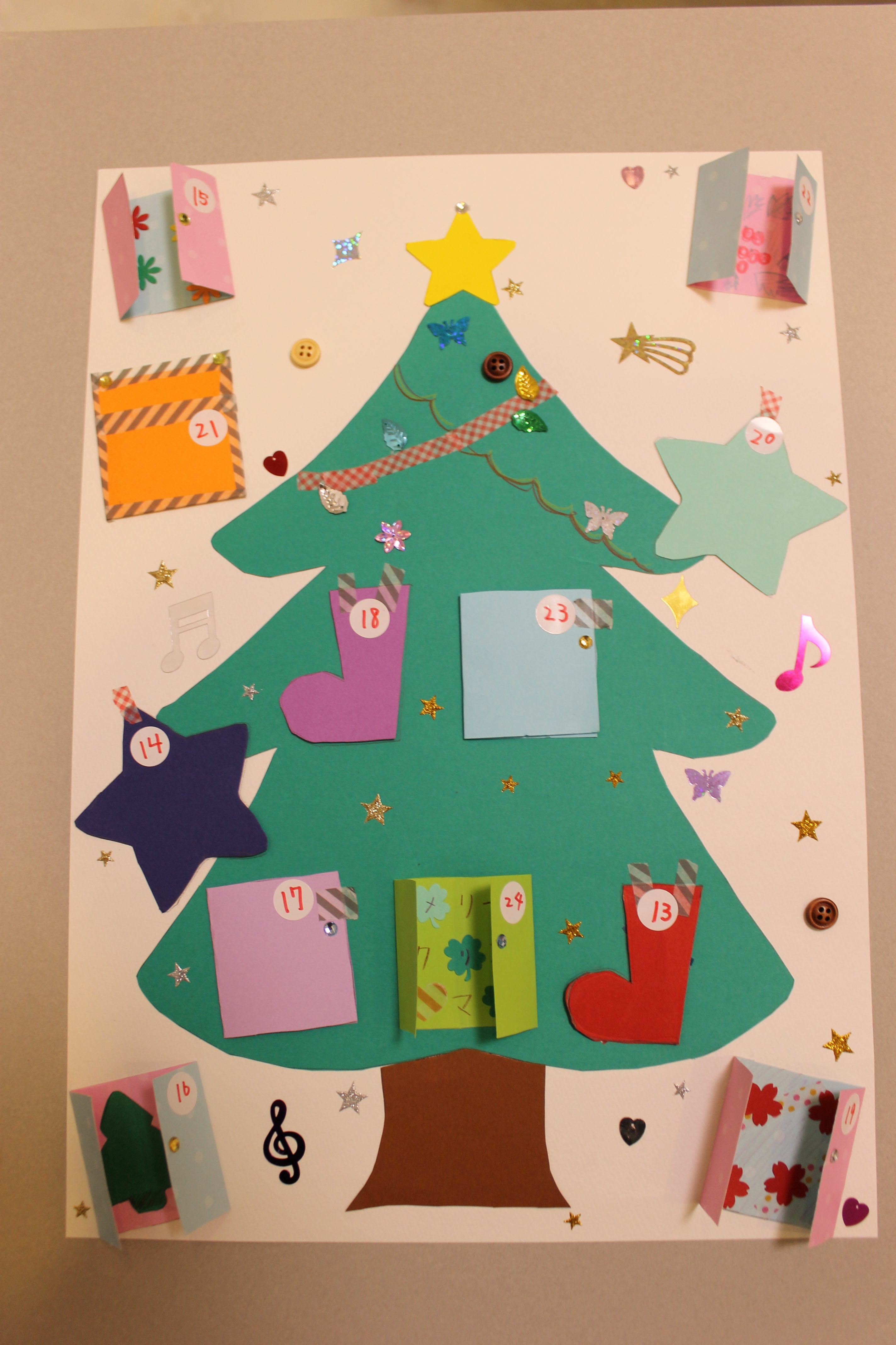 クリスマスまで毎日わくわくするような素敵なアドベント・カレンダーが完成したと思います!画像はクリックすると拡大いたしますので、是非、細かいところまでご覧になって下さい。カレンダーを開けたところもとても可愛らしいです。