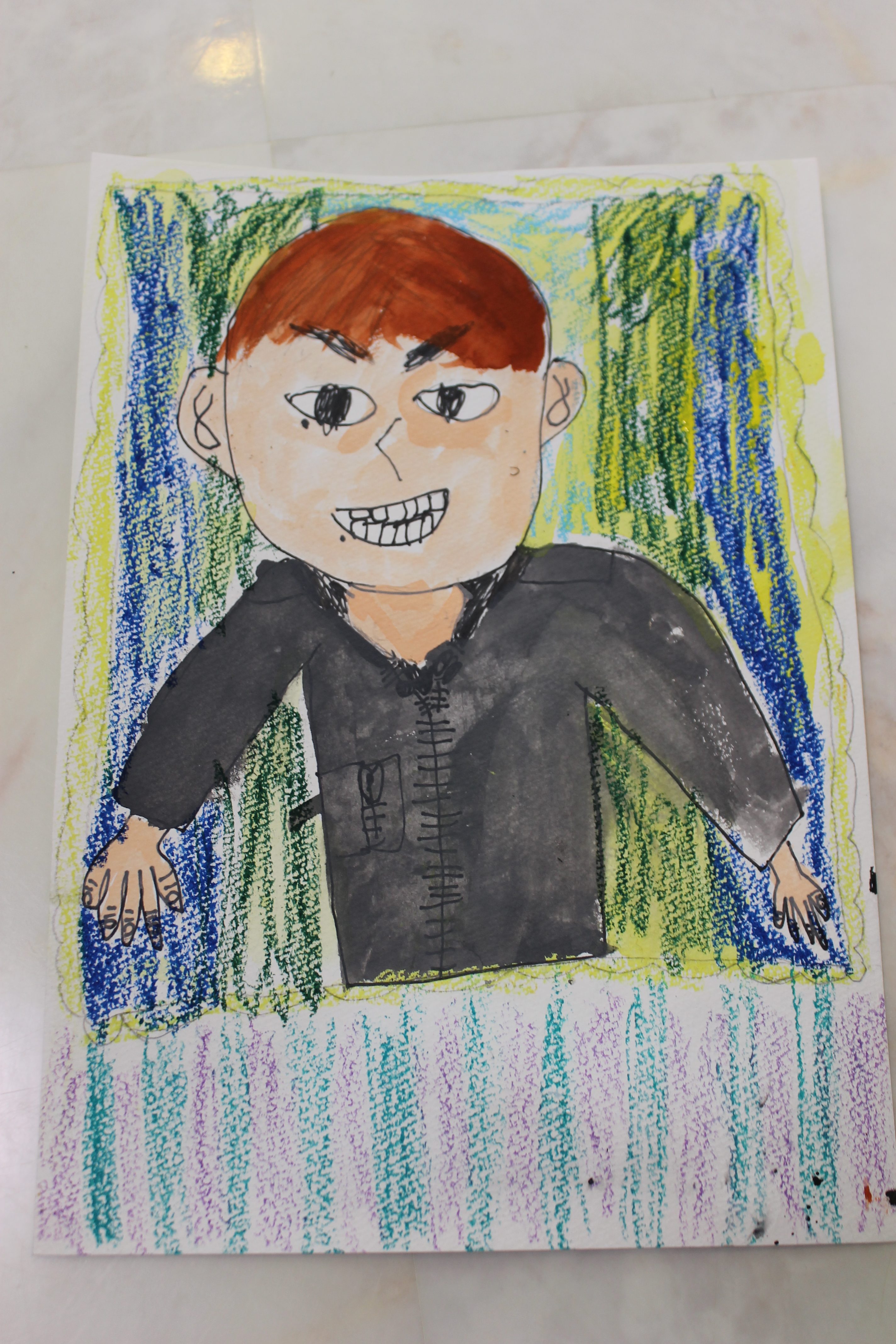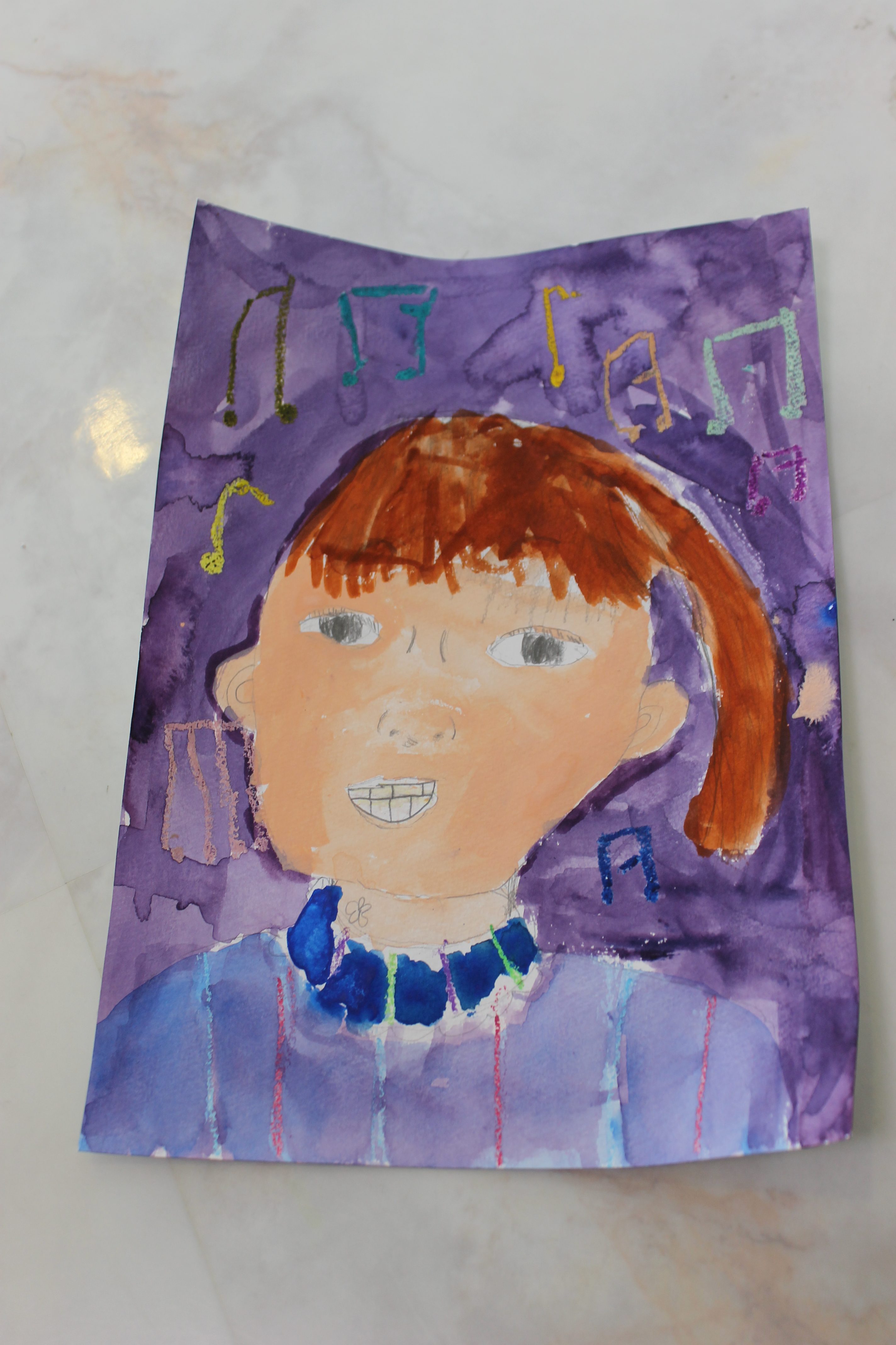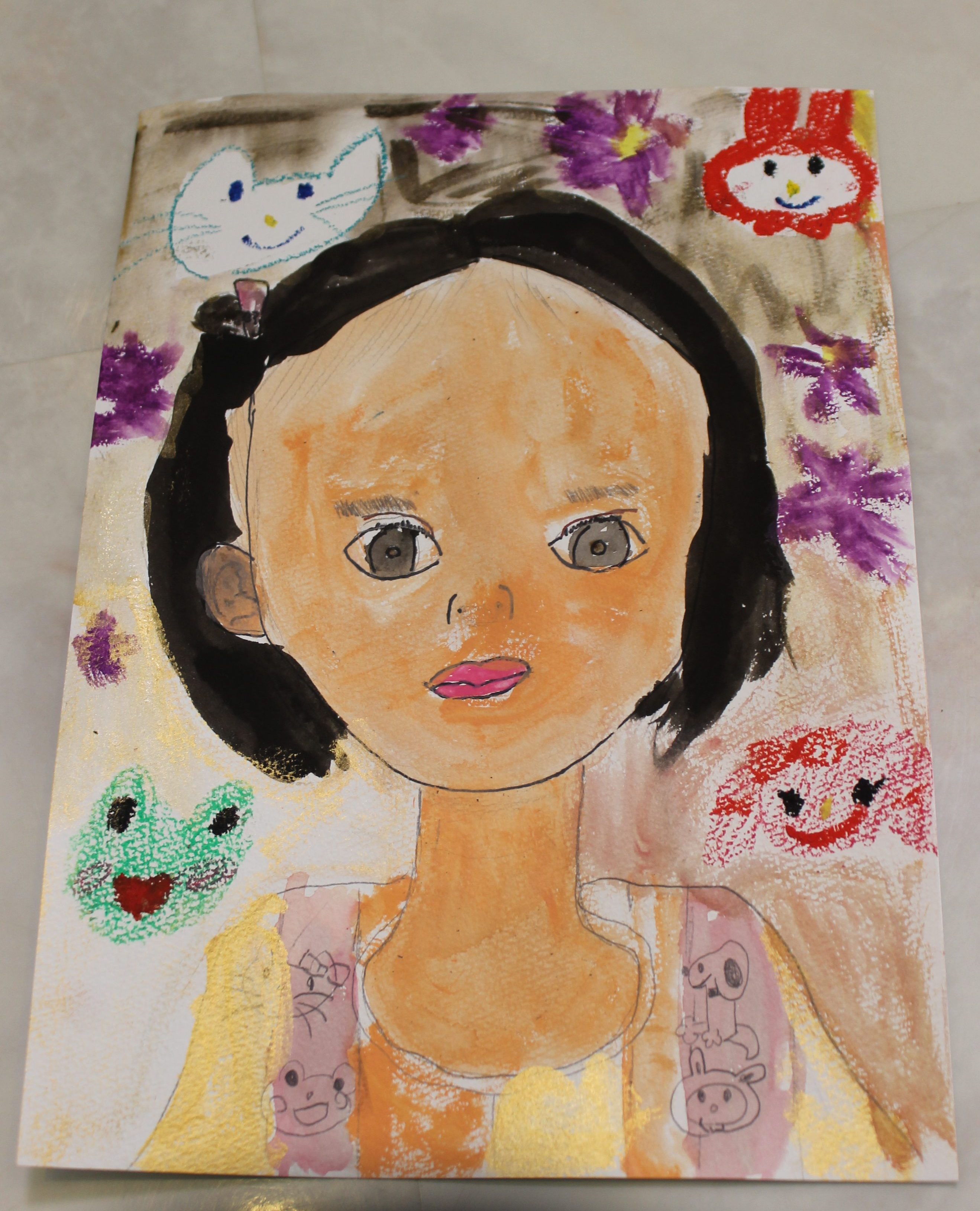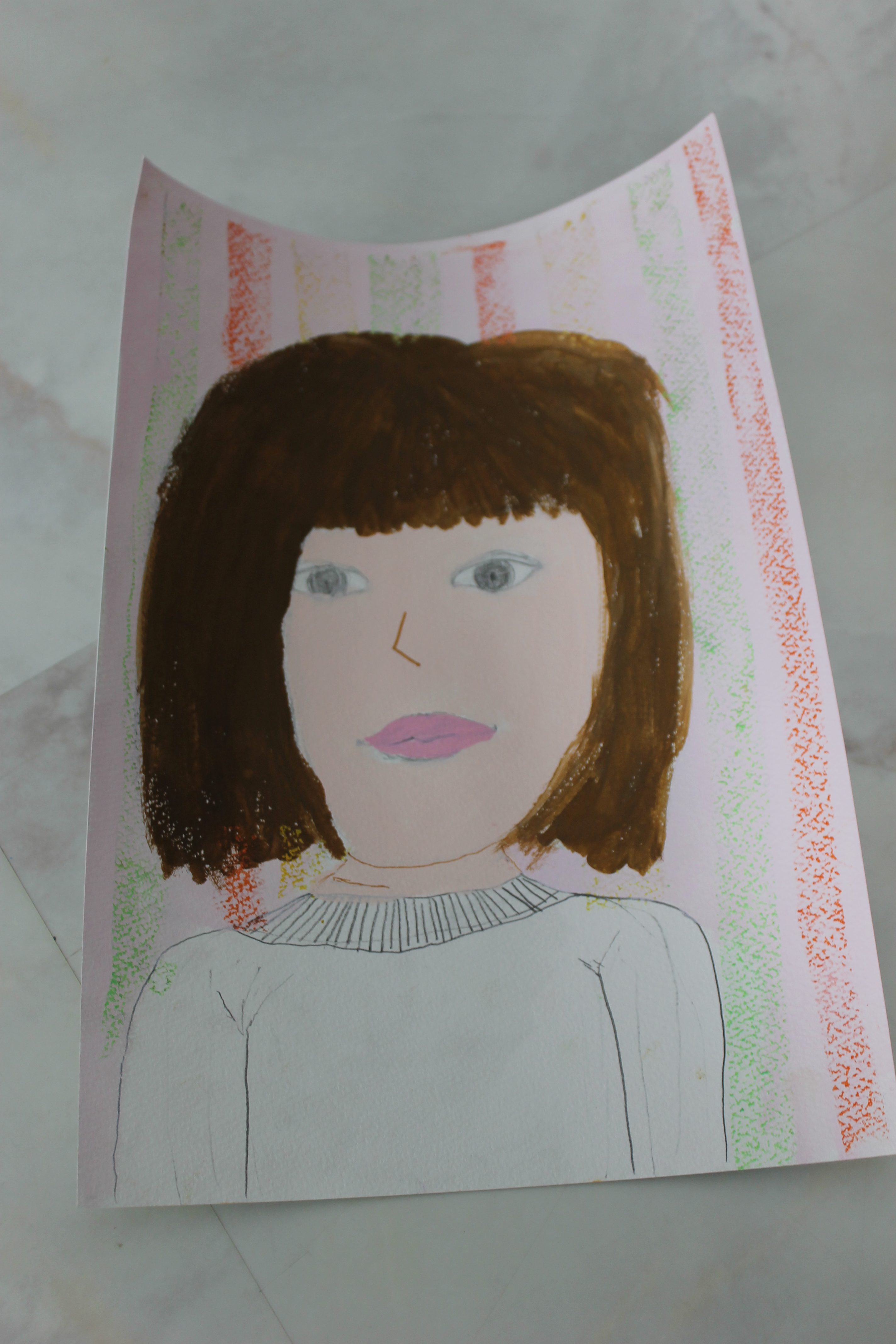 自画像では、よく観察することの大切さや、ゴッホやドガやフリーダ・カーロの自画像をお見せし自分らしい絵を描く大切さと、クレパスと水彩を使った技法などをお伝えした後に描きはじめて頂きました。何回も納得がいかず修正したりしたので、終わらなかった生徒様もいらっしゃいましたが、ものを創るということにおいてはそのこだわりもとても大切なことだと思います。とても素敵な自画像ができました。