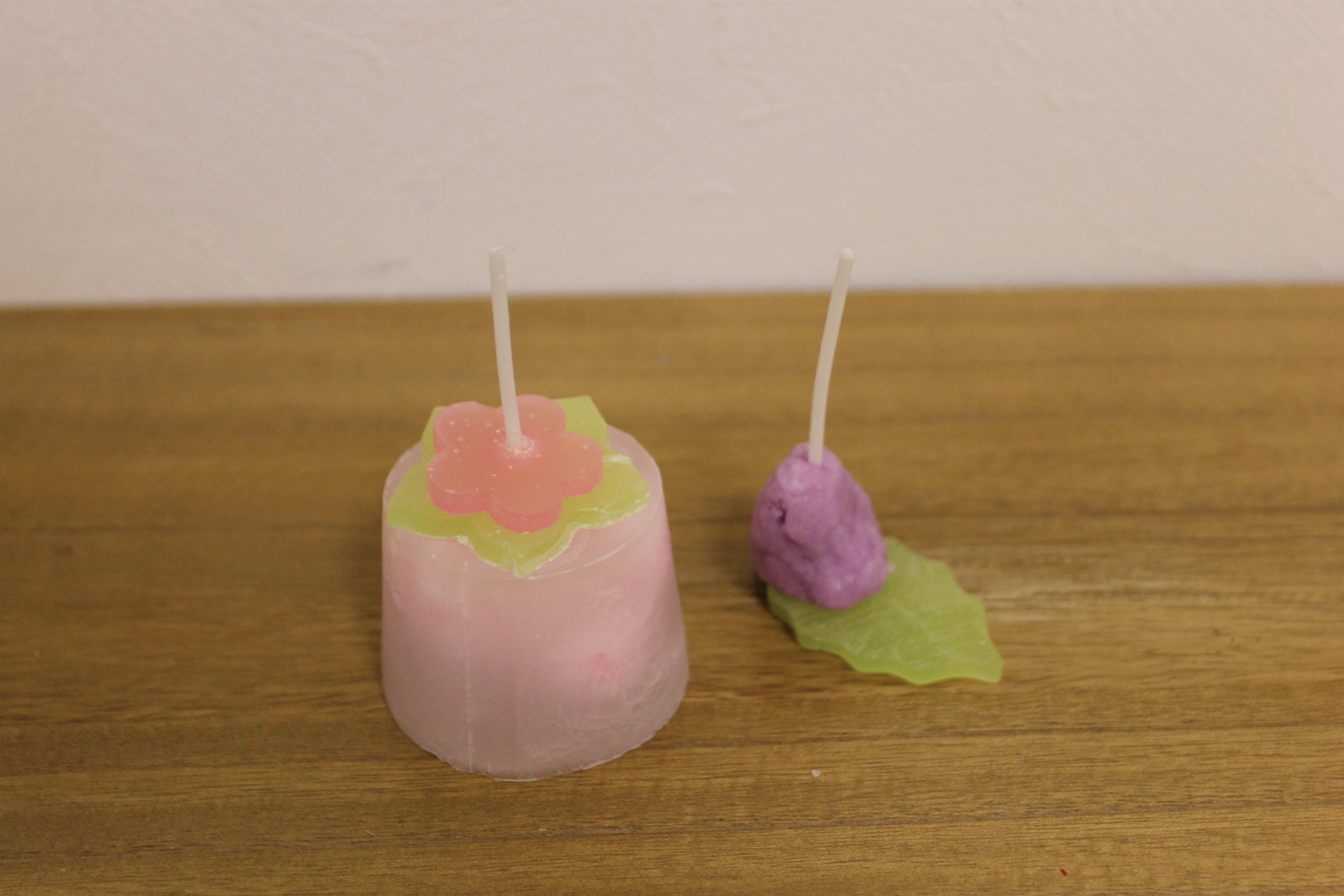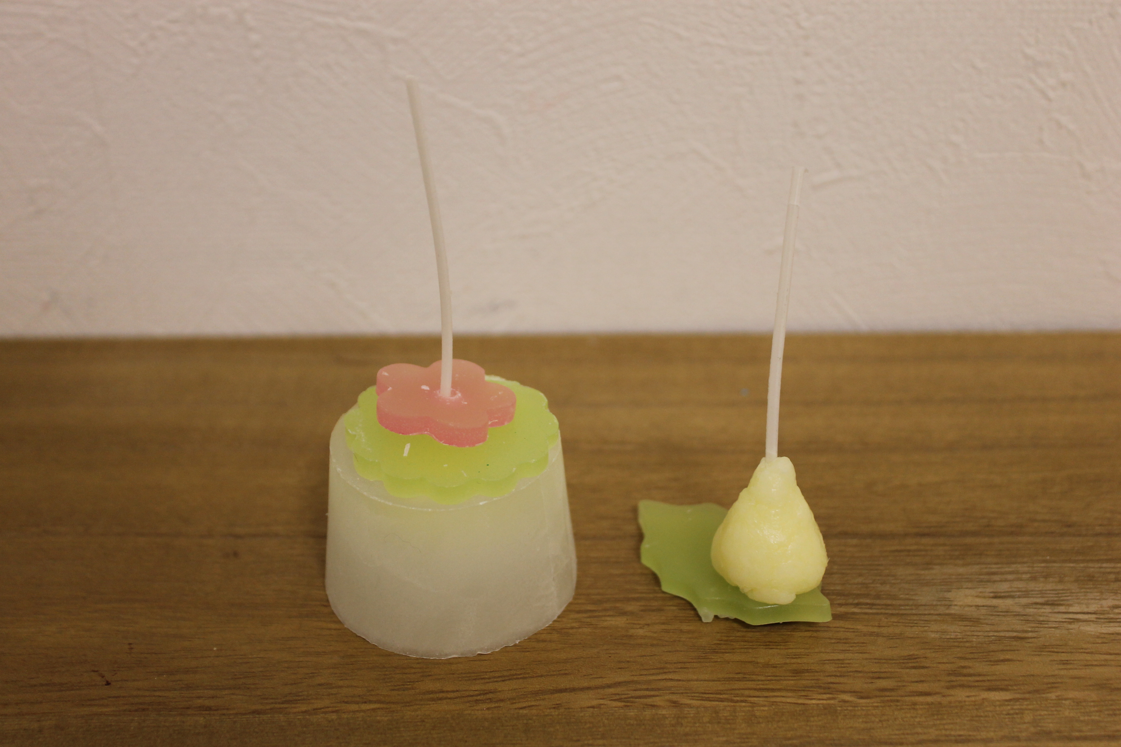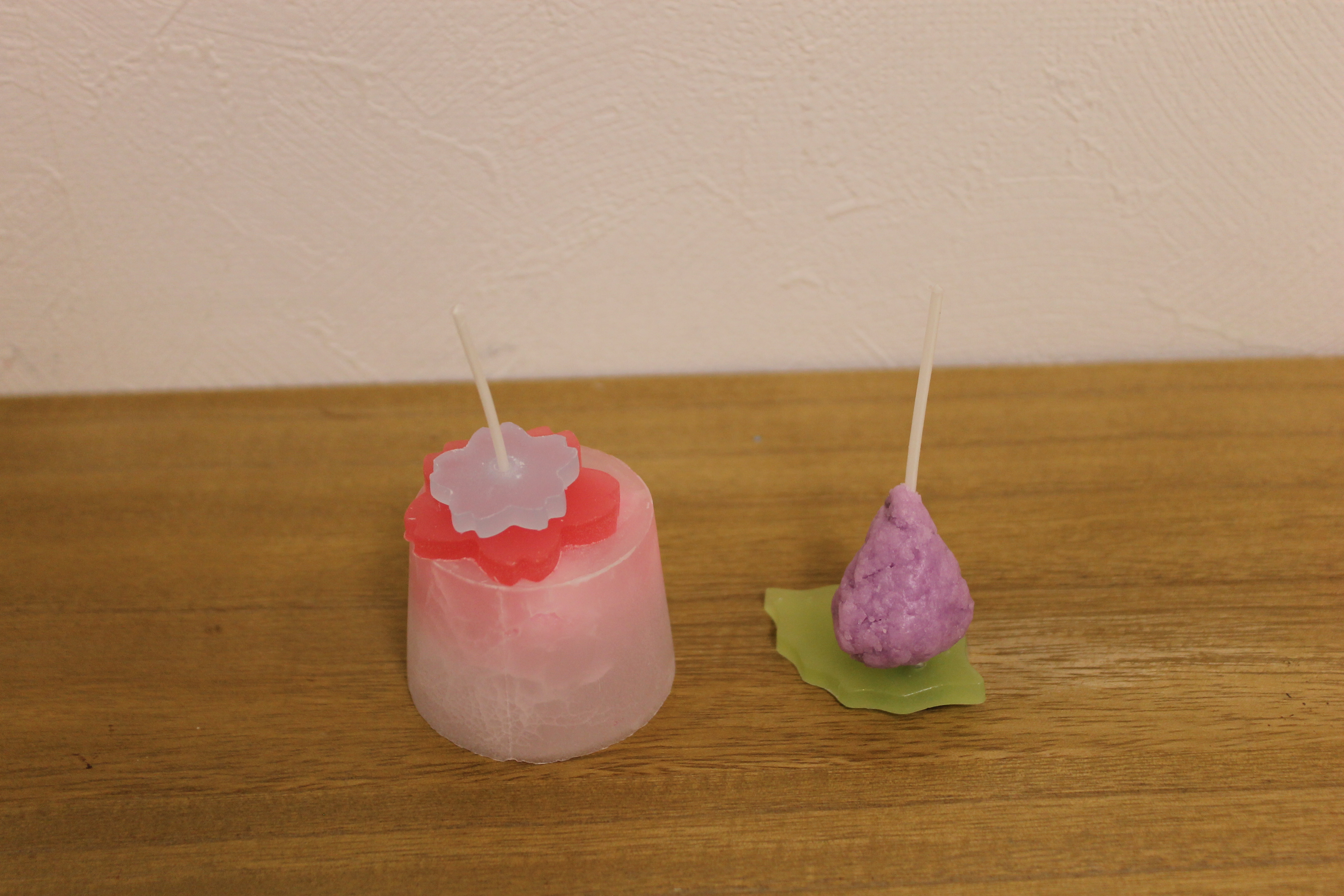 今回のモチーフは、桜、梅、花のつぼみです。春らしく、とても可愛らしくて素敵なキャンドルができました。