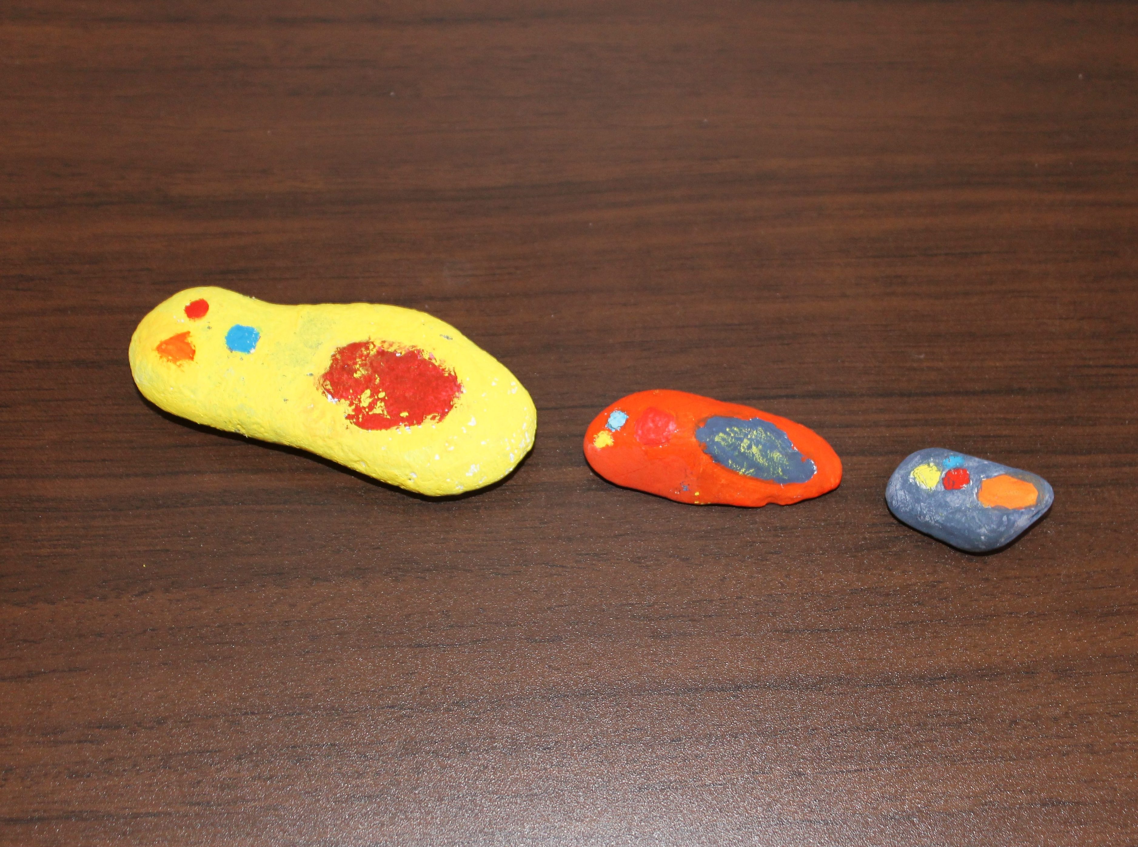 今回は、前回ドールハウスの作品と自画像が終わっていなかったお子さんはその続きを、他のお子さんは石に色を塗り世界で一つだけの石を造るストーンペインティングを行いました。日曜日の生徒さんには時間の都合上お話できなかったのですが、土曜日の生徒さんには石には[火成岩][堆積岩][変成岩]の三種類があることをお話しました。図鑑を見て火成岩のことを知っていた2年生のお子さんもいらっしゃいました。お子さん達は物知りなので、うかつなことを言わないようよく勉強しなくてはと思わされます。