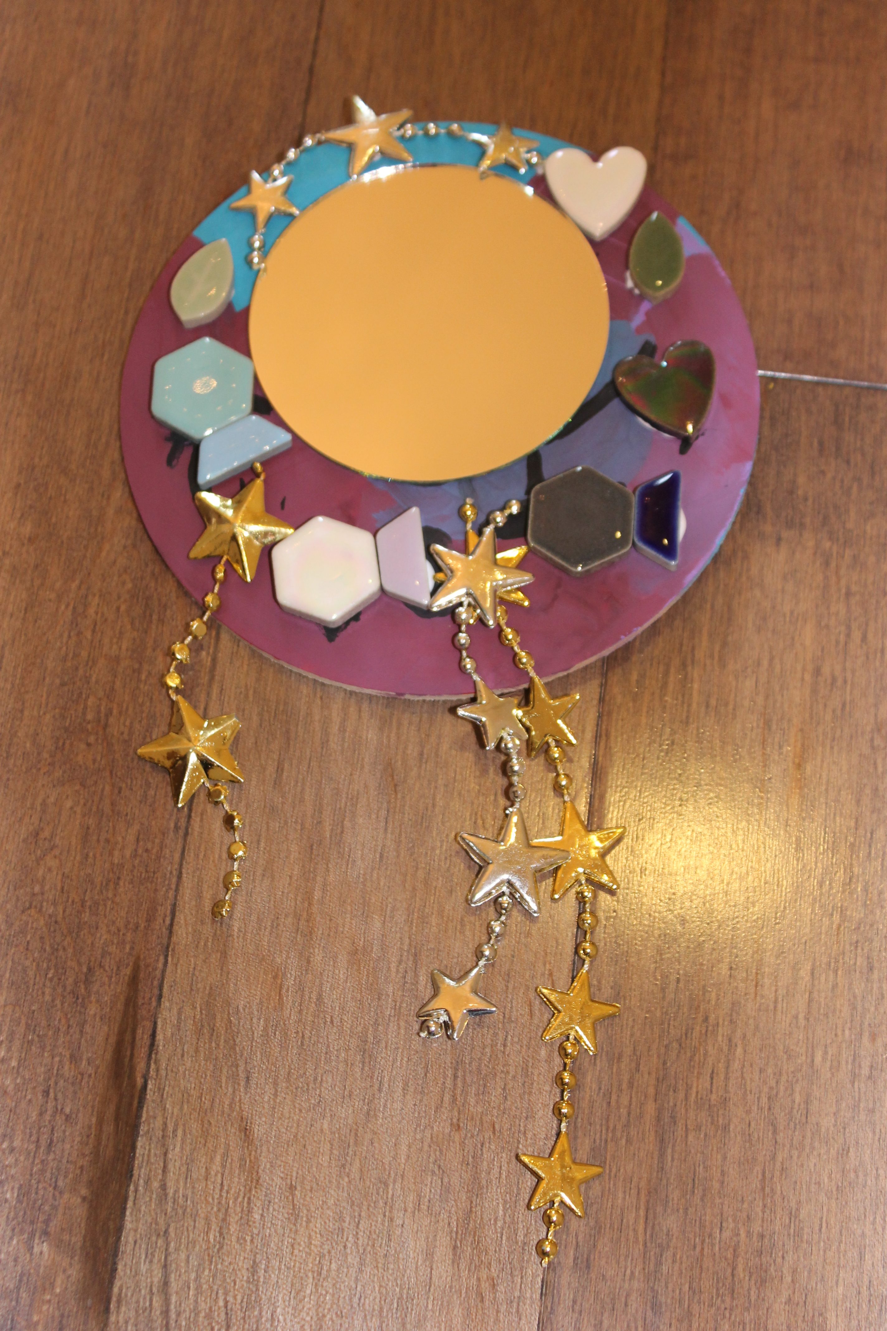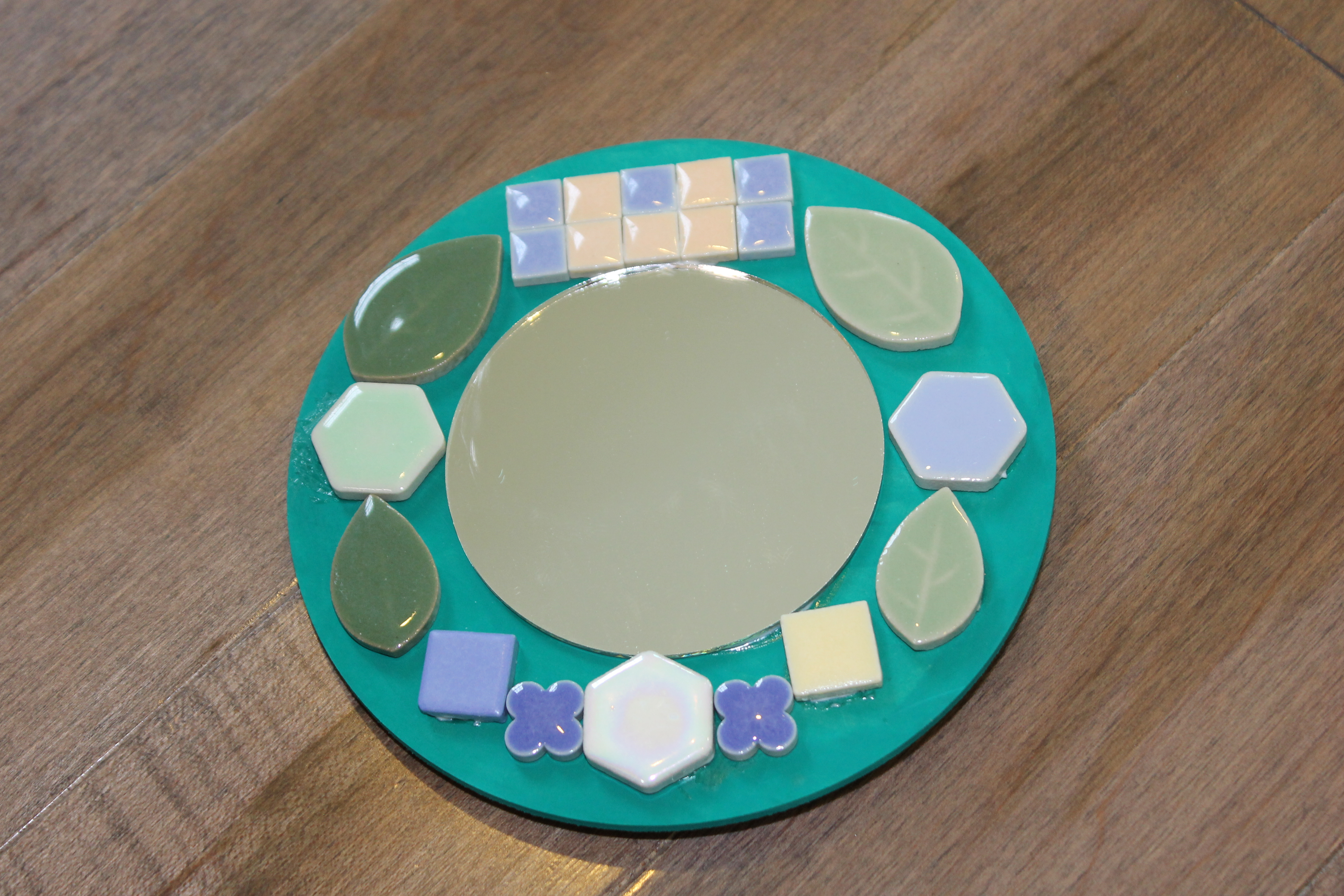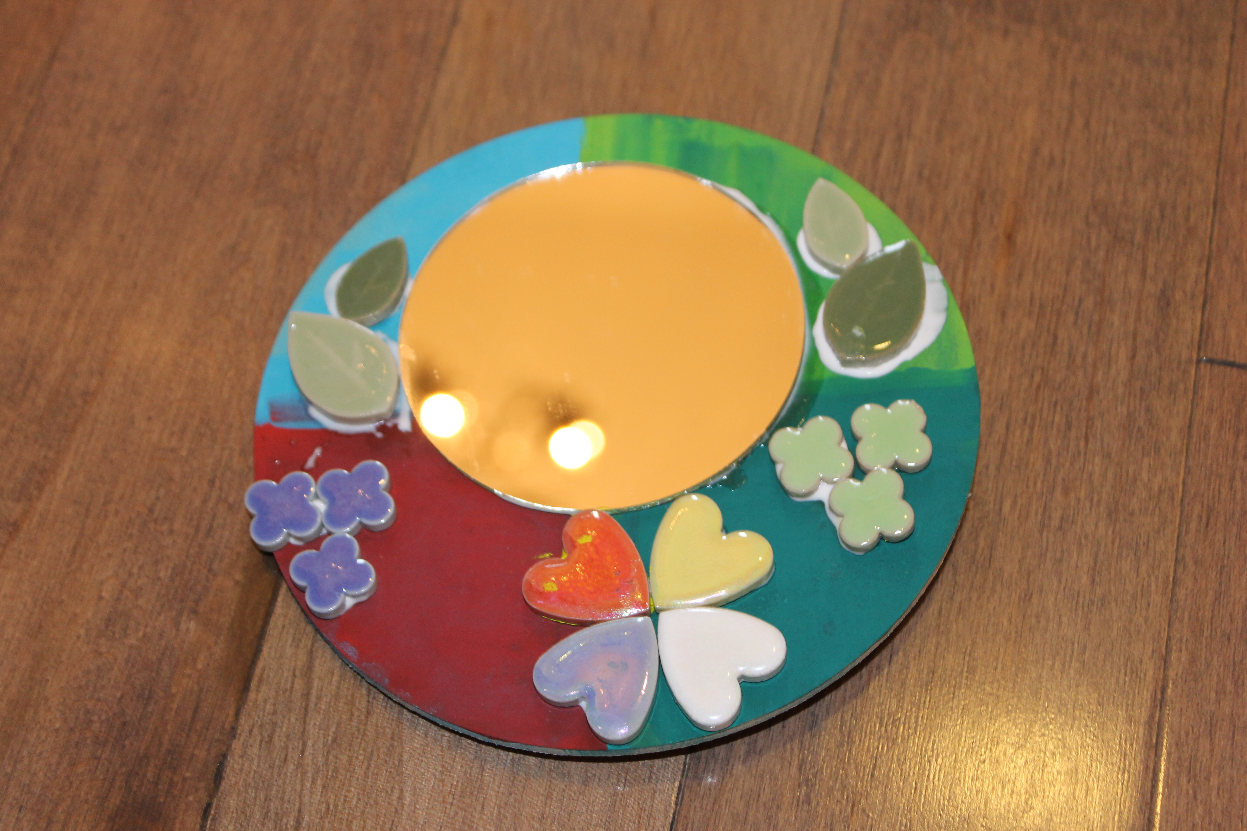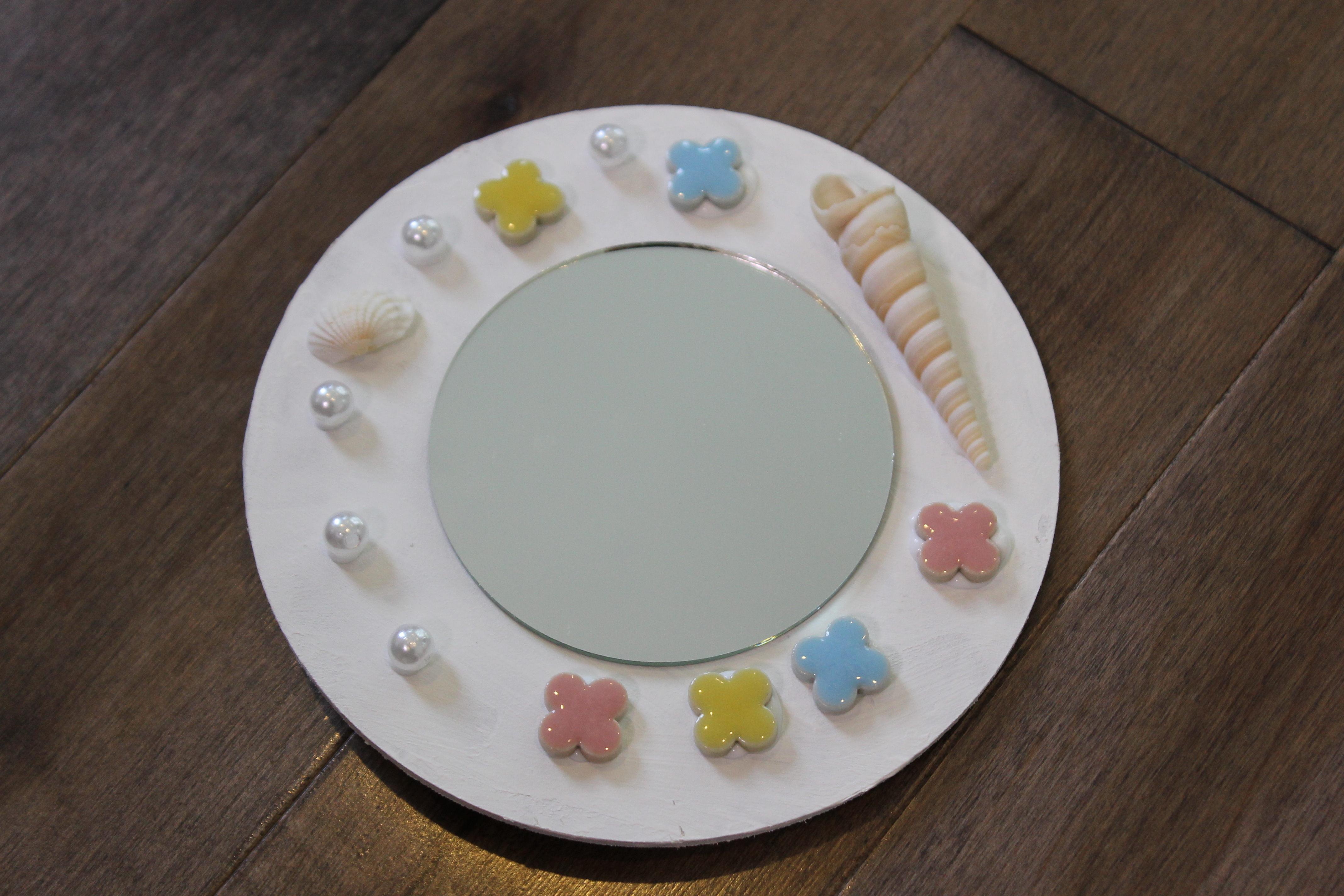 先日のこどもクラスでは、夏休みに入っていたので夏休みの工作らしい貝殻やモザイクタイルを使った、ご自宅に飾って頂けるような鏡を制作しました。お子さん達、それぞれ素敵な作品を造れたと思います。