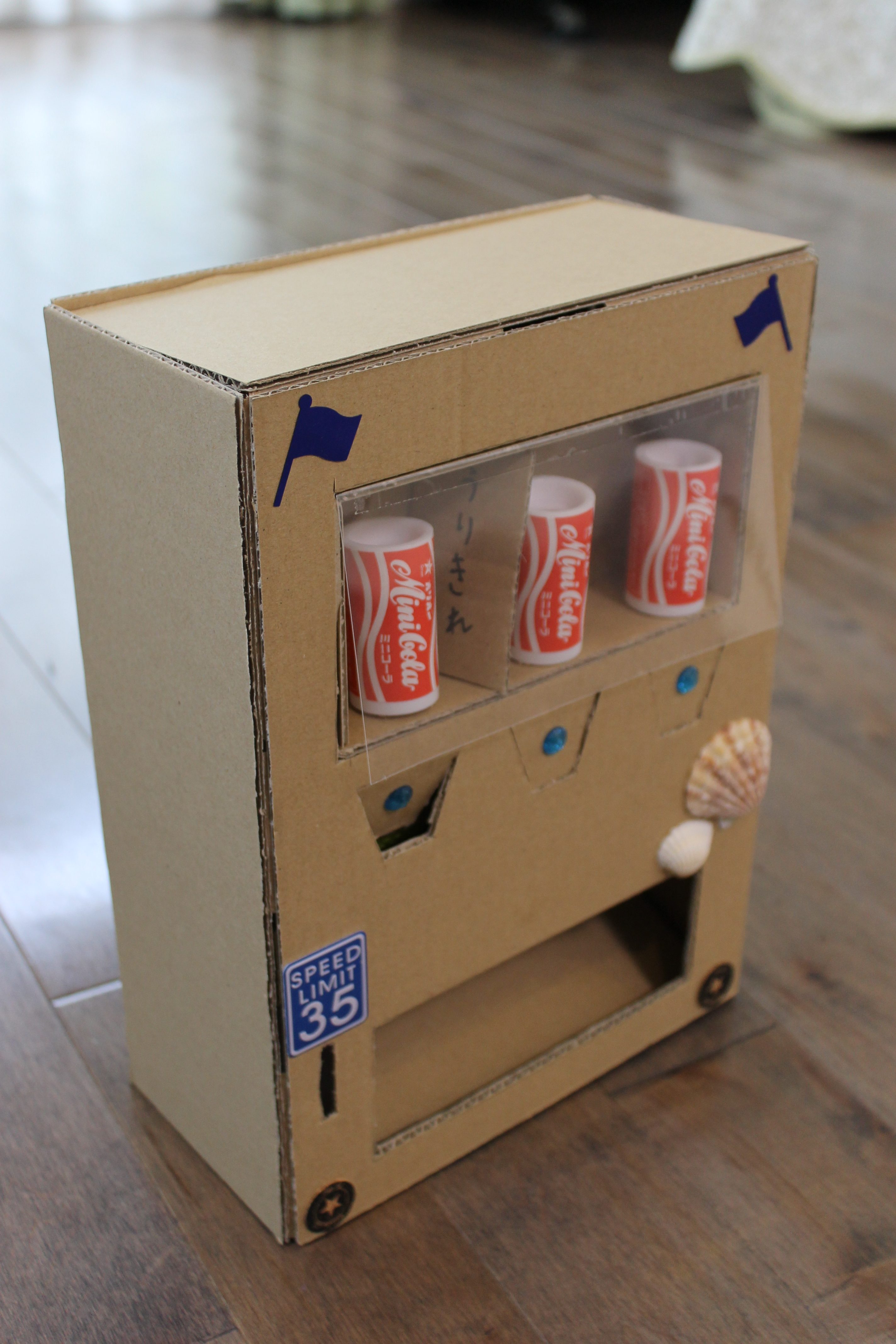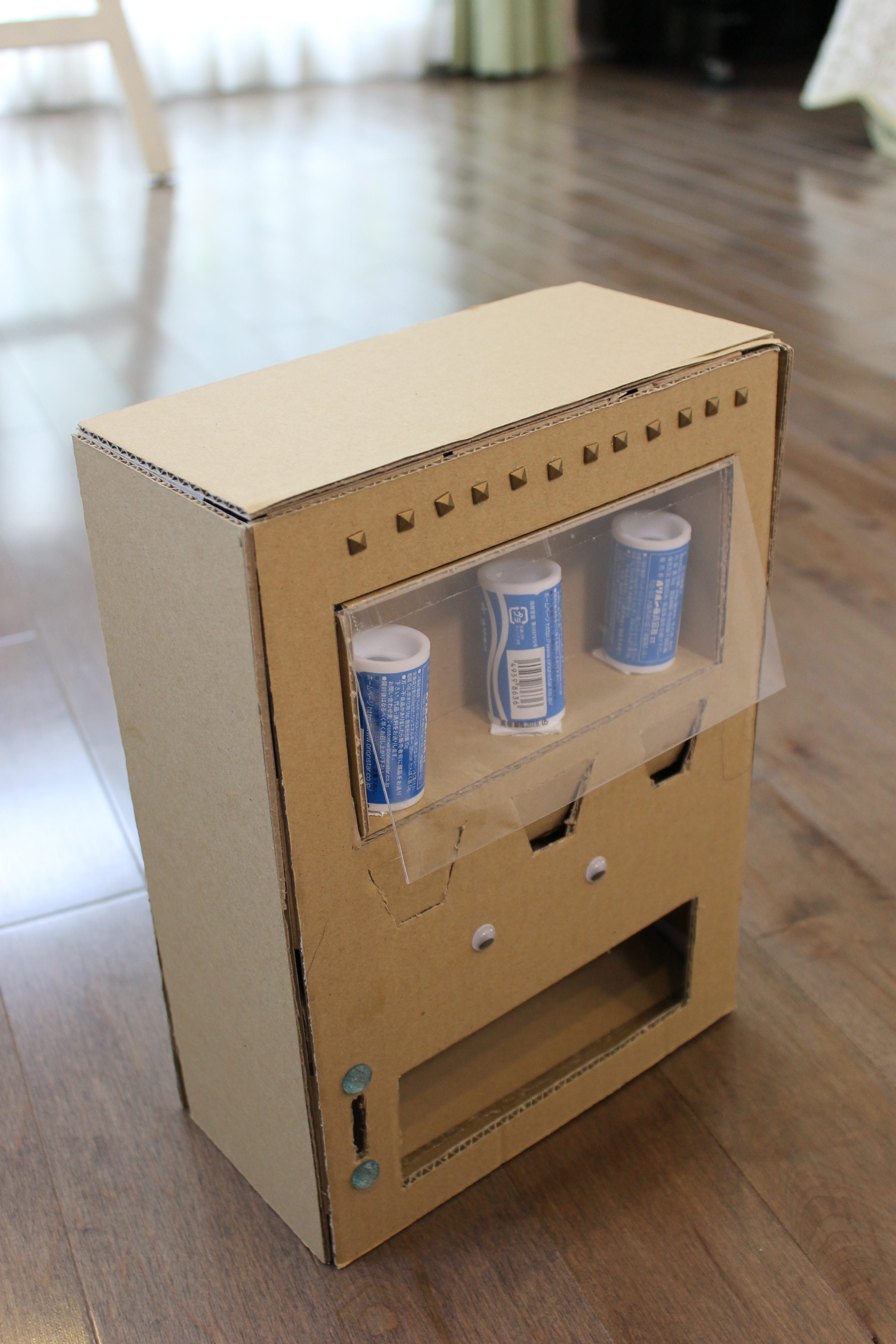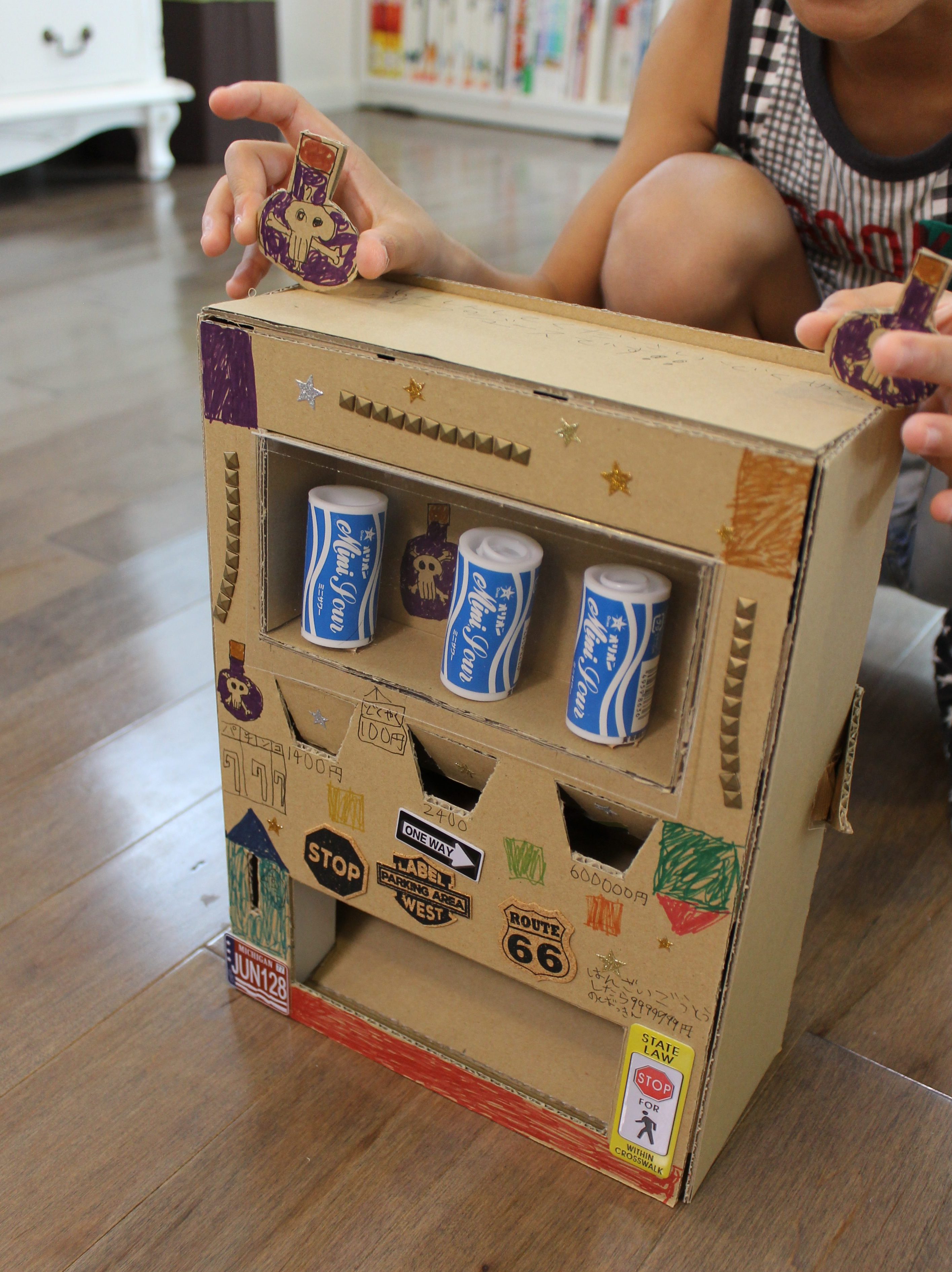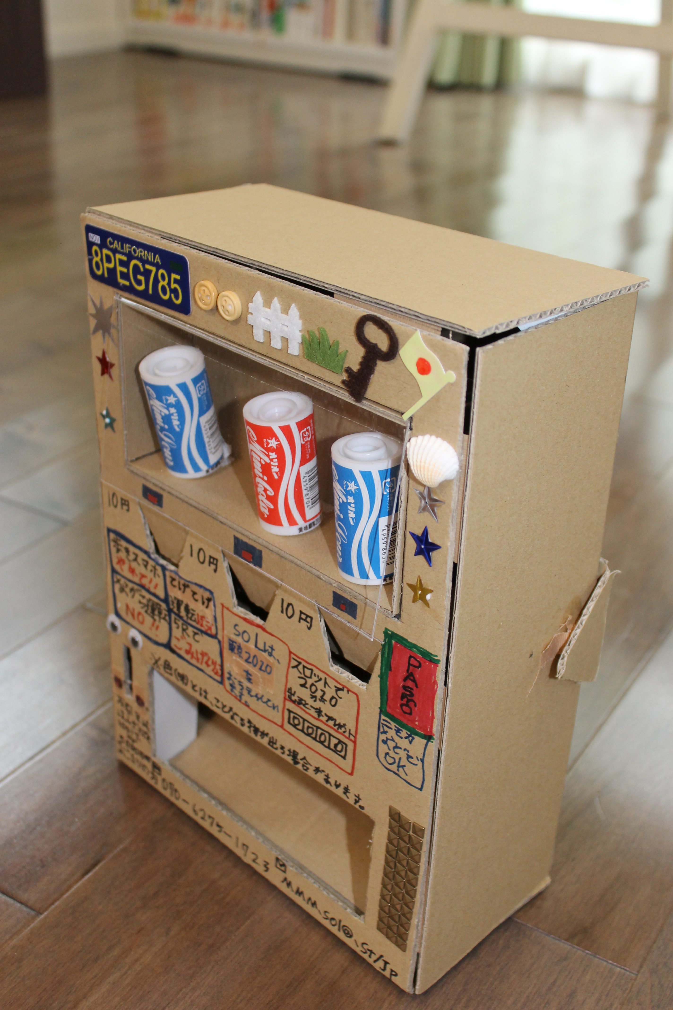 実際に押すと出てくる自動販売機を組み立てて完成してのですが、お子さん達は想像力を働かせて