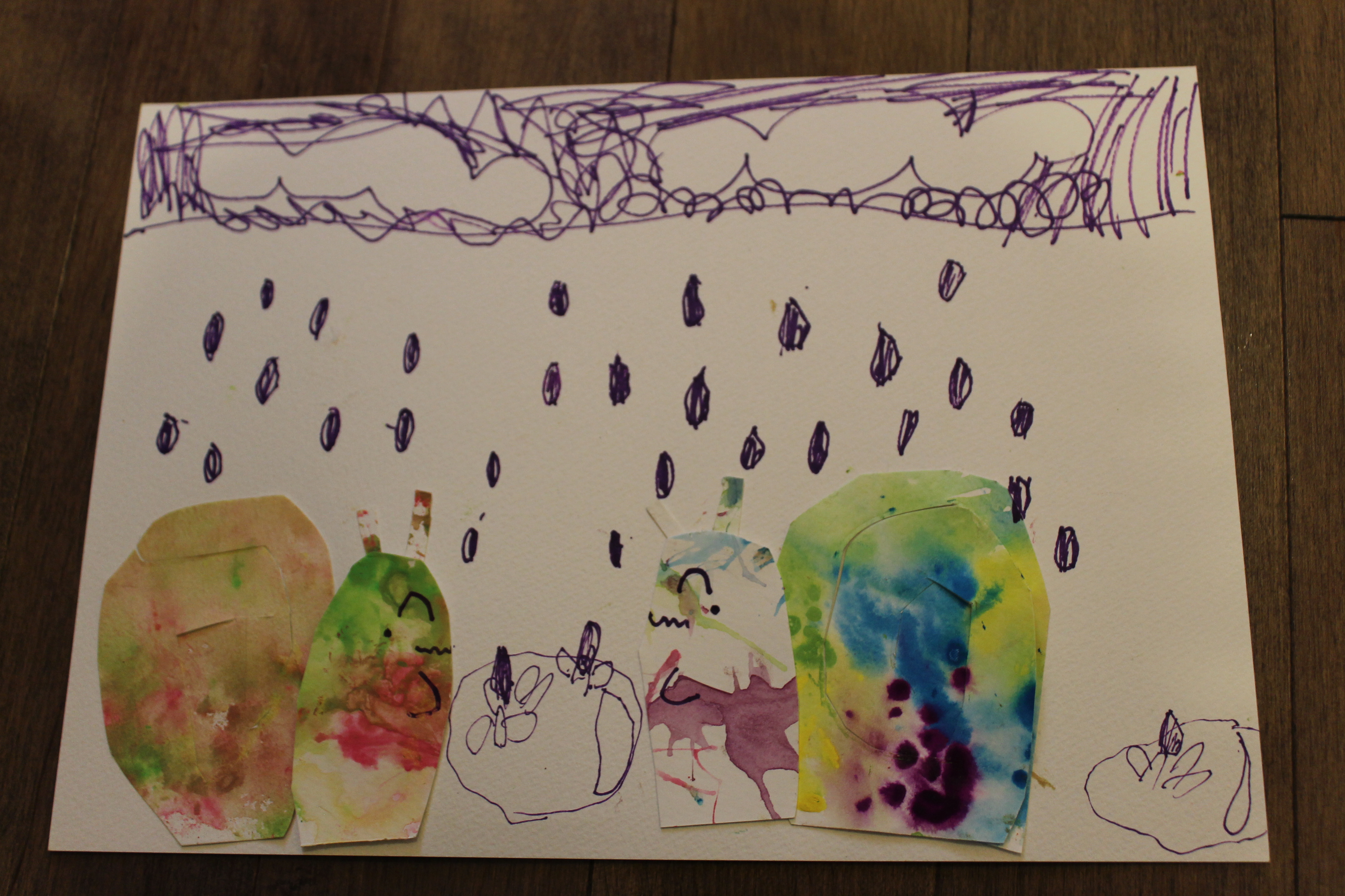 せっかくお教室に通って下さっているのですから、感性や創造性を育むだけでなく技も学んで頂きたく、この時期には「技法を学ぶ」というテーマの絵画を行っております。
