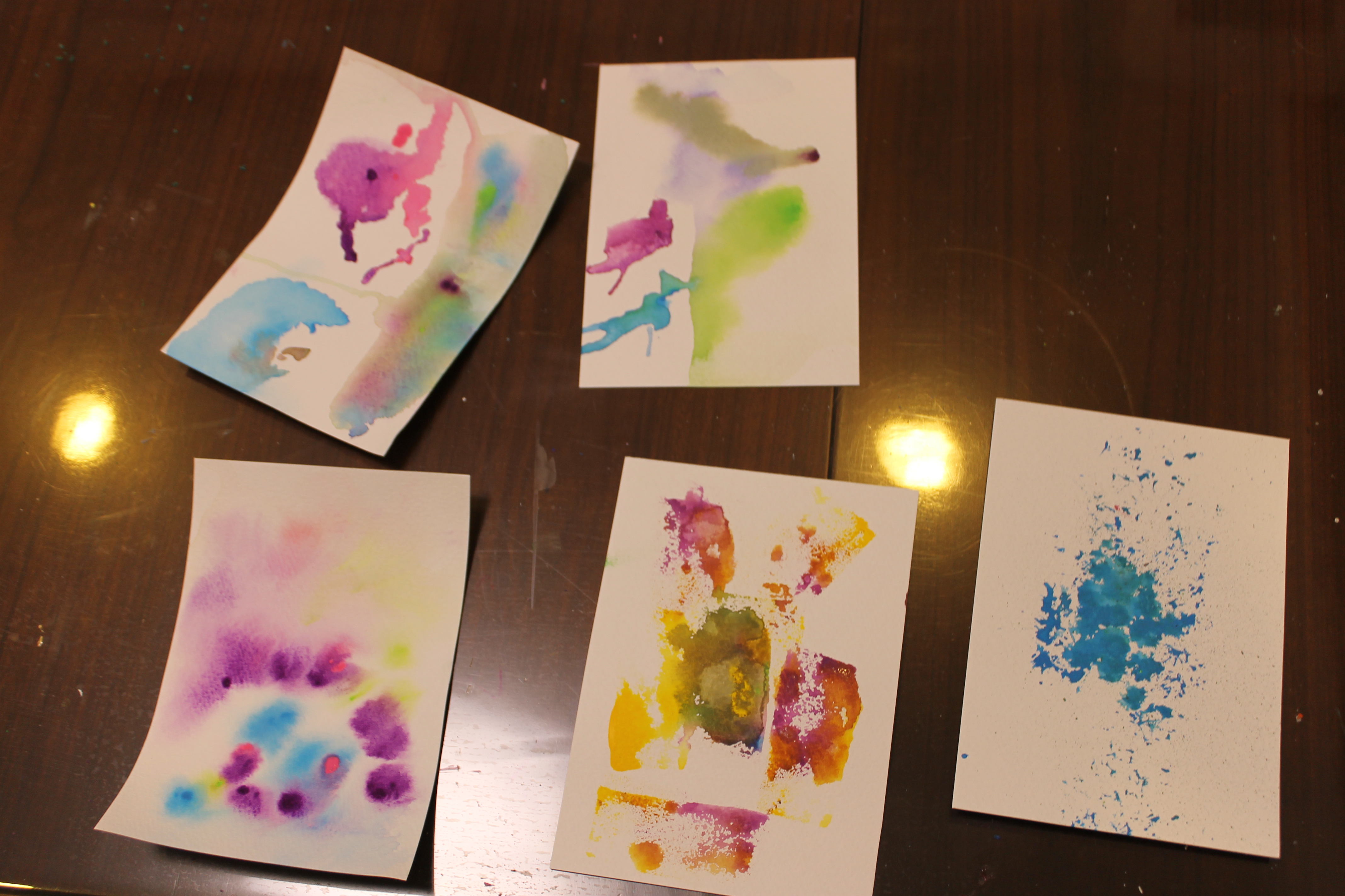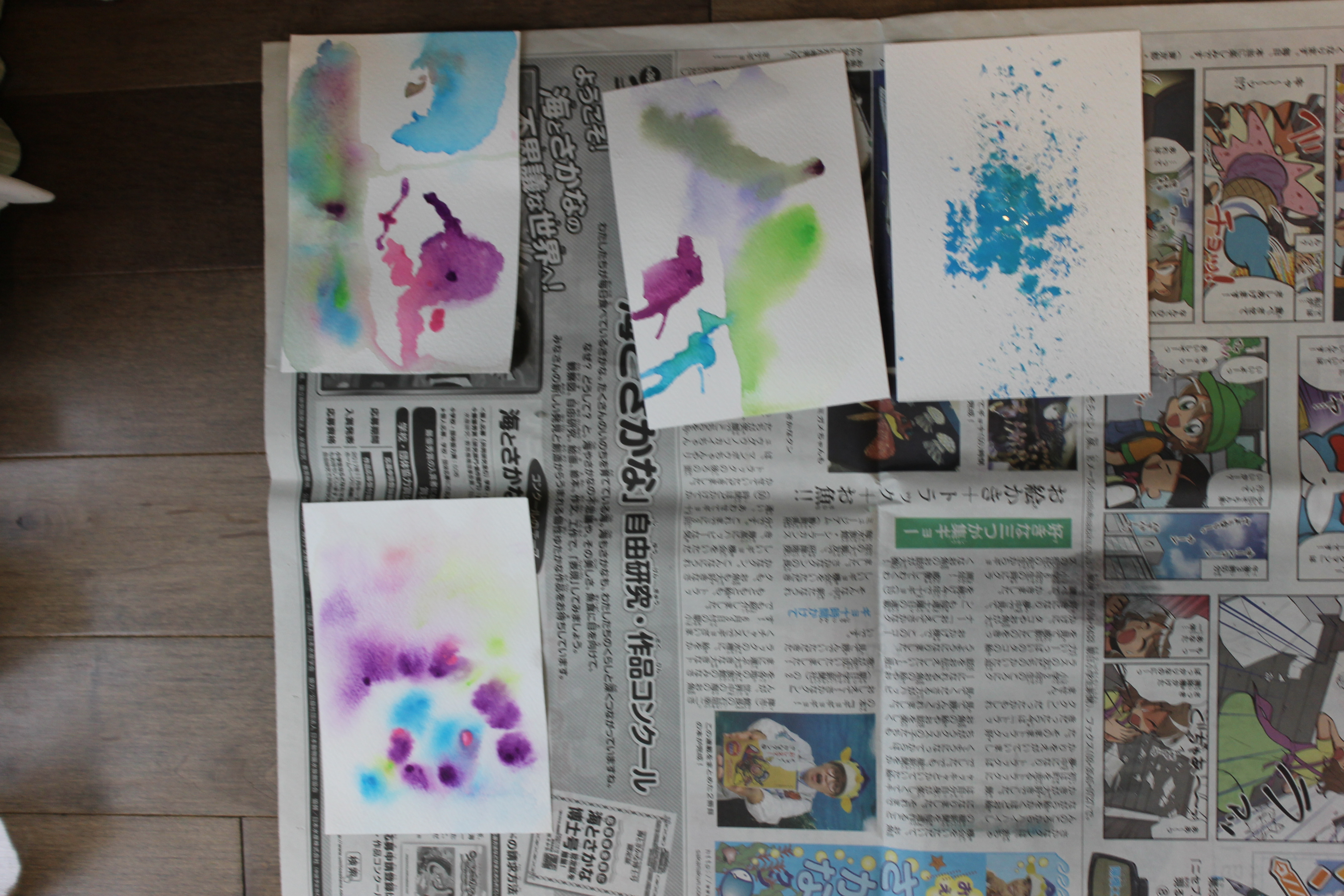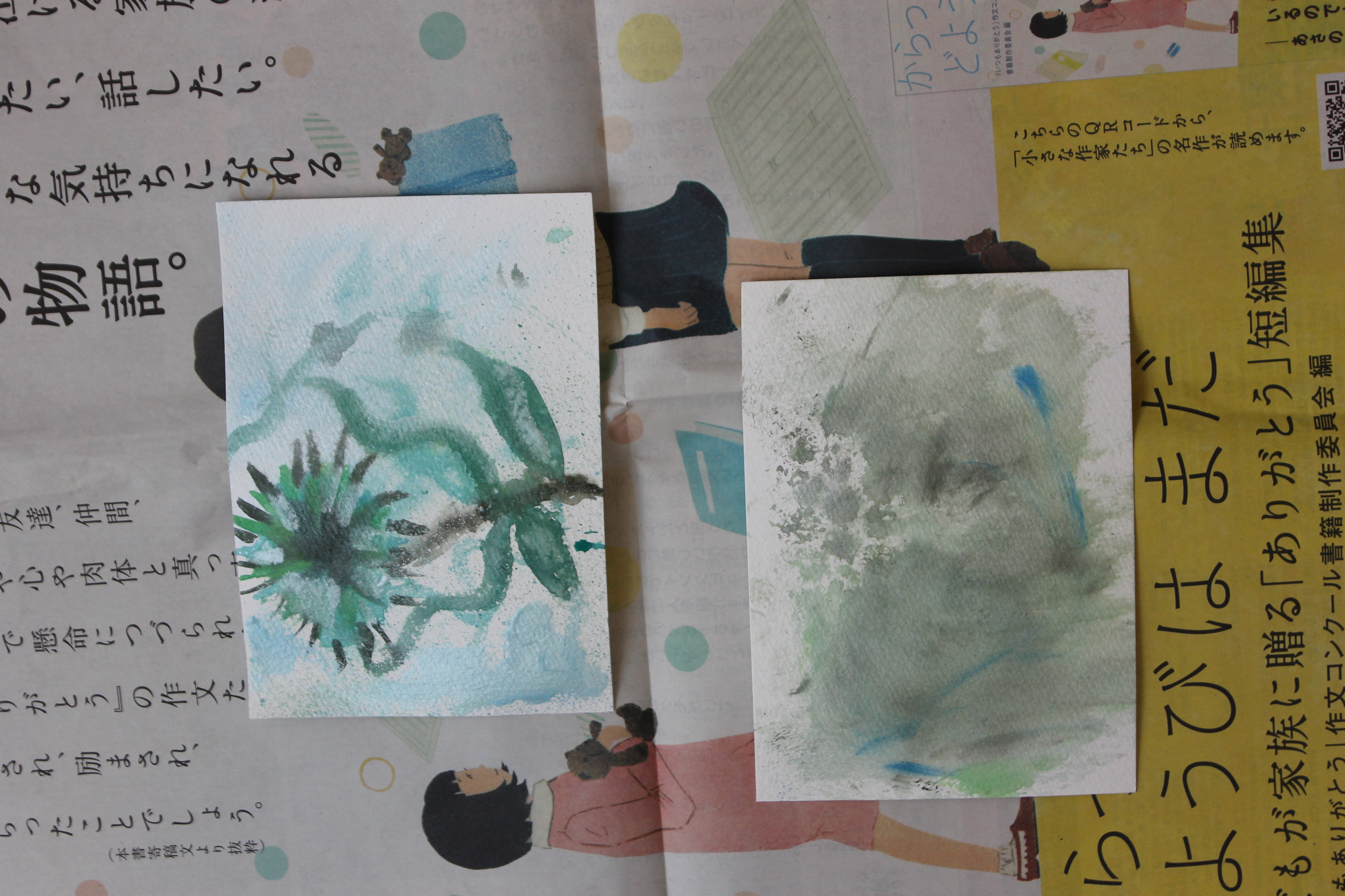 今回も、お子さん達は工作をする時と同じようにとても楽しく技法を試していらっしゃいました。今、原爆の話に興味を持っていて、原爆をイメージして作品を造ったというお子さんも。