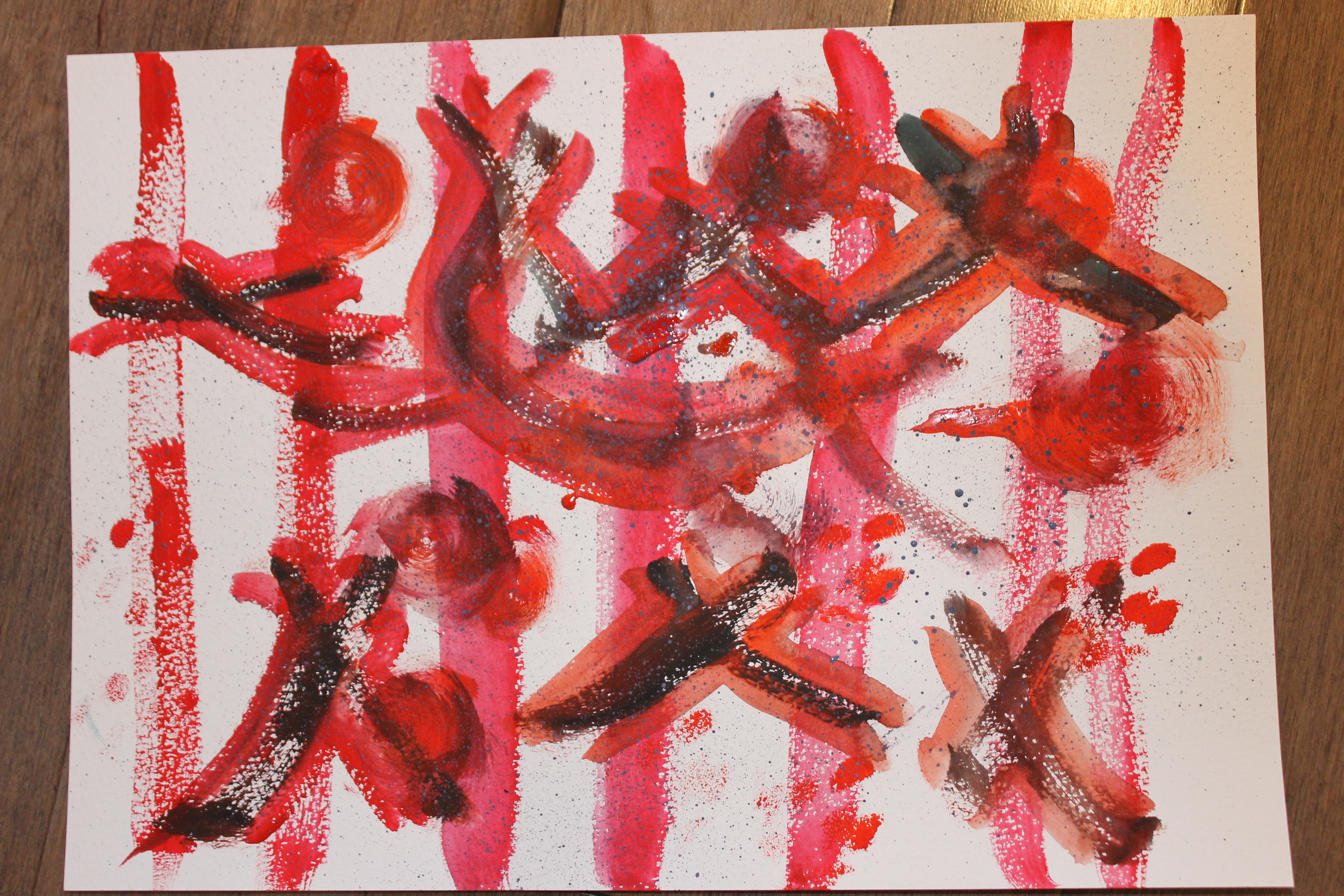 今月は絵画なので、先週の日曜日は「技法を学ぼう抽象画を描こう」を行いました。