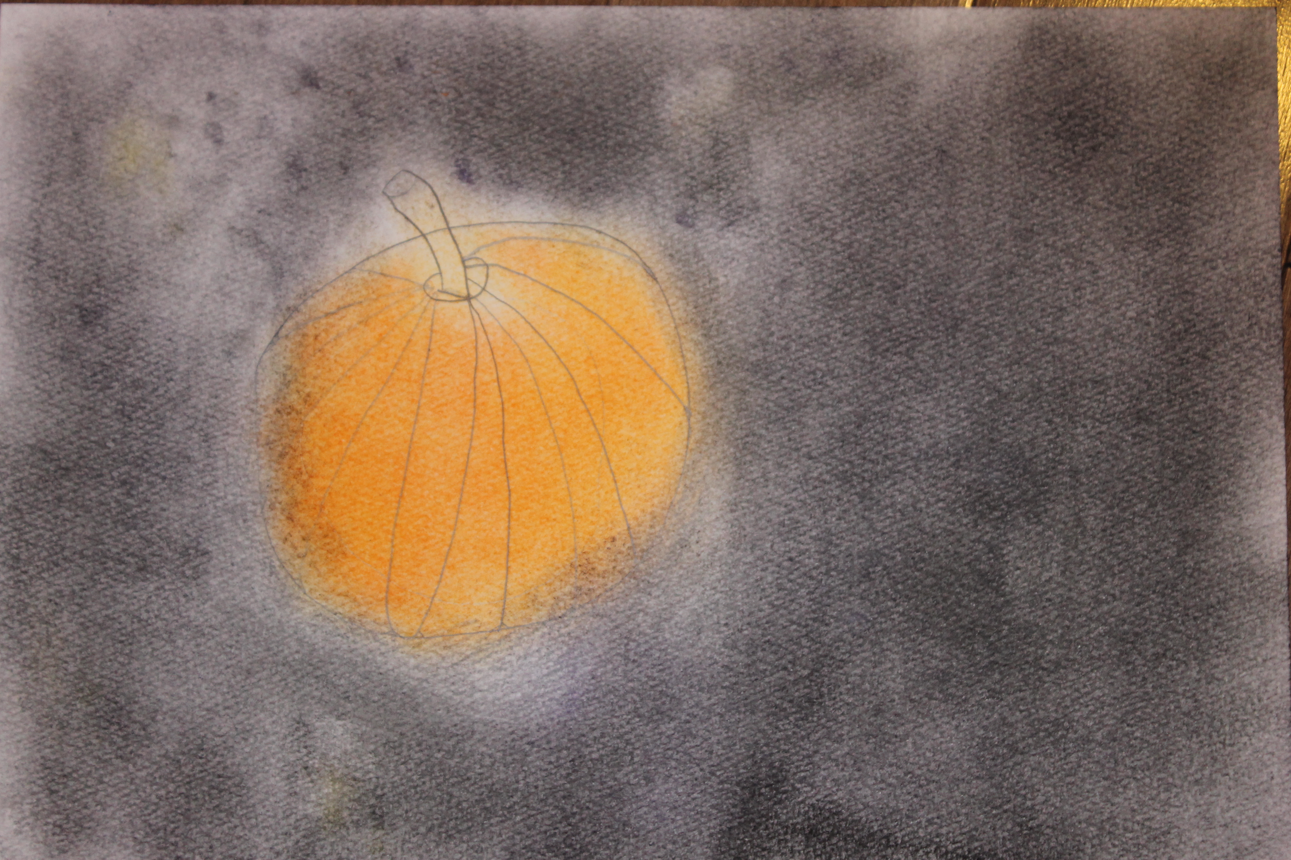 カボチャを描くのは難しいのですが、よく観察され、デッサンもパステル画もそれぞれの個性を感じさせる楽しい作品となりました。