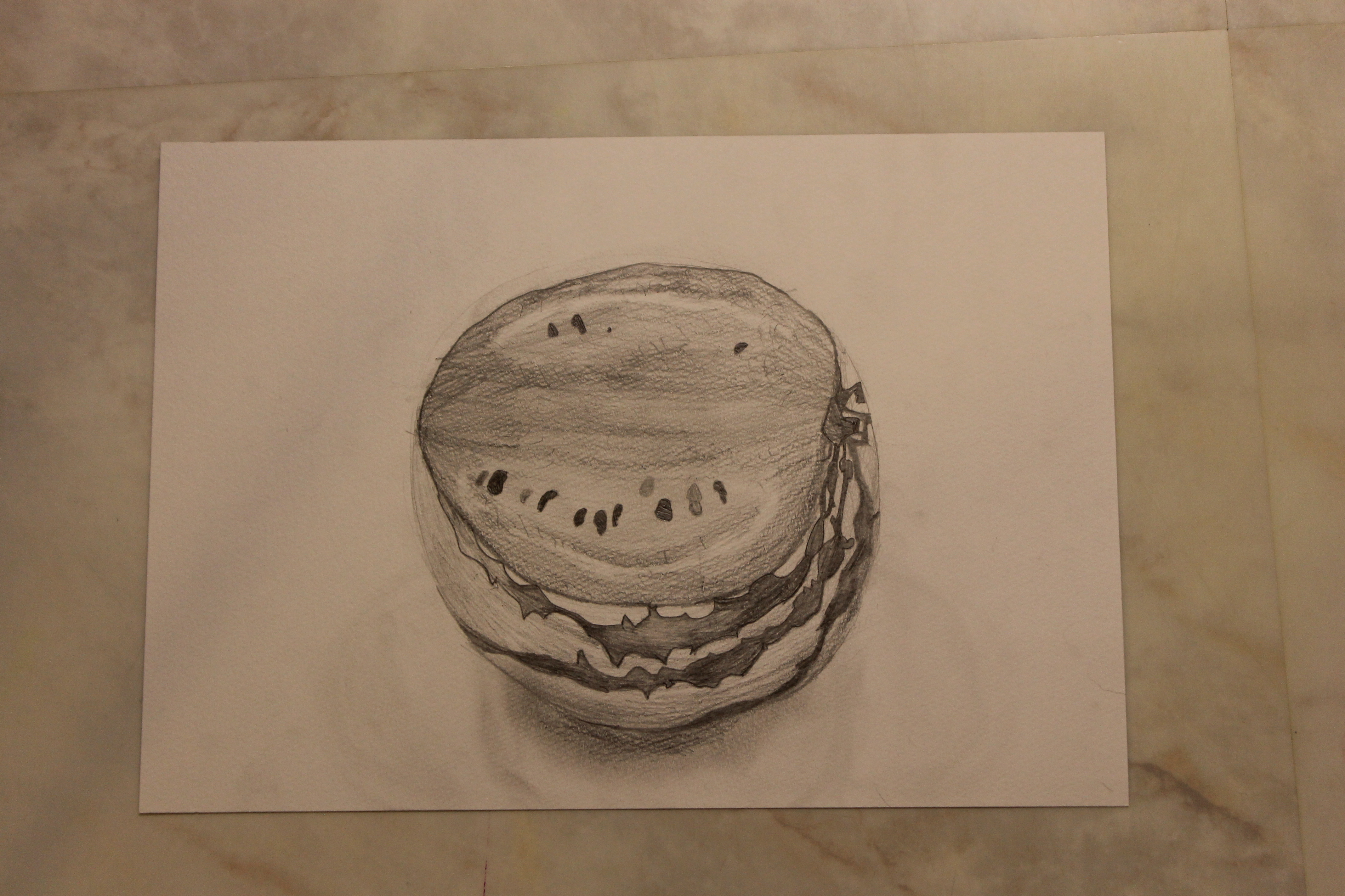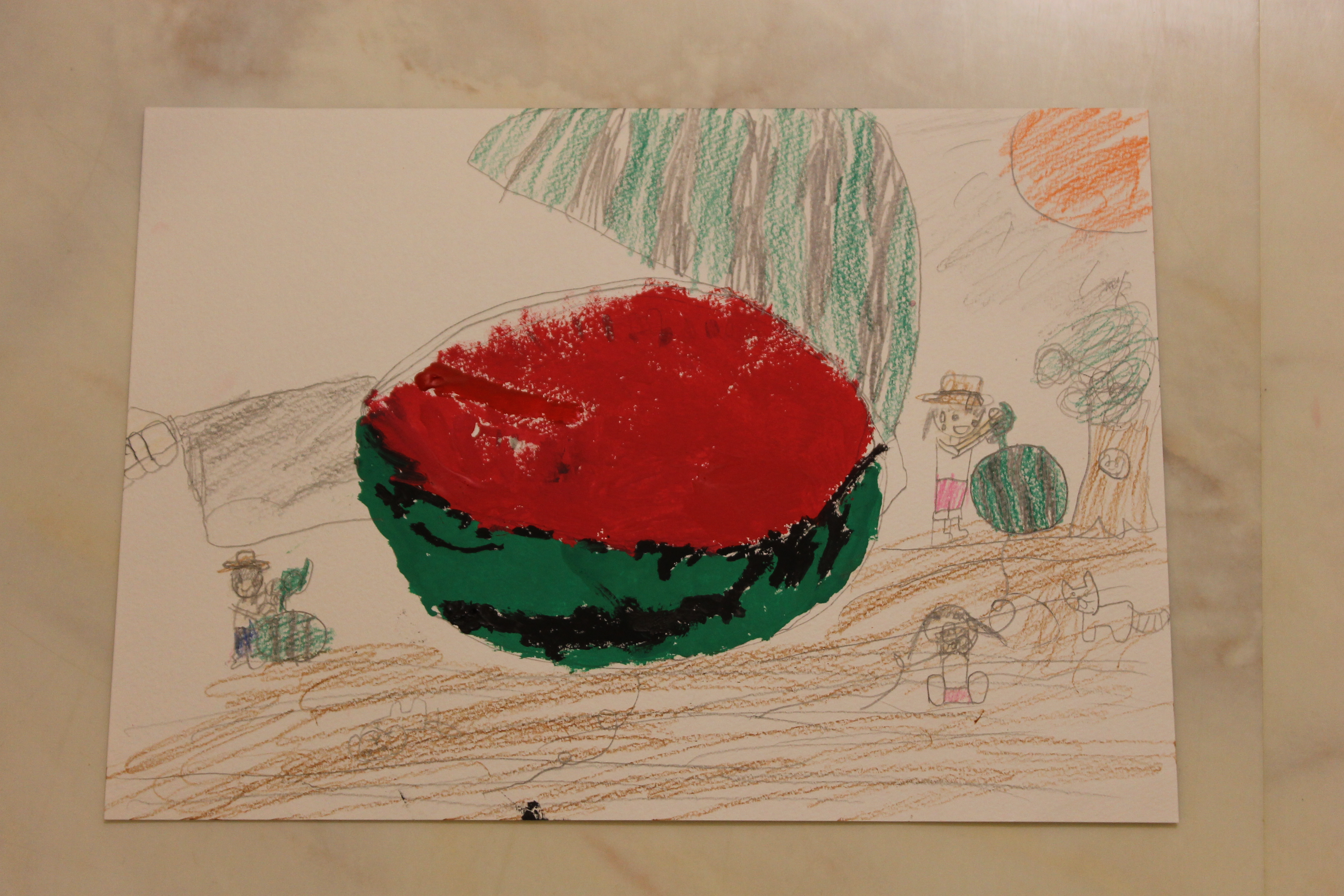 小学生にはスイカを半切りにしたものを描いて頂きました。デッサンか着彩かはご本人に選んで頂きました。
