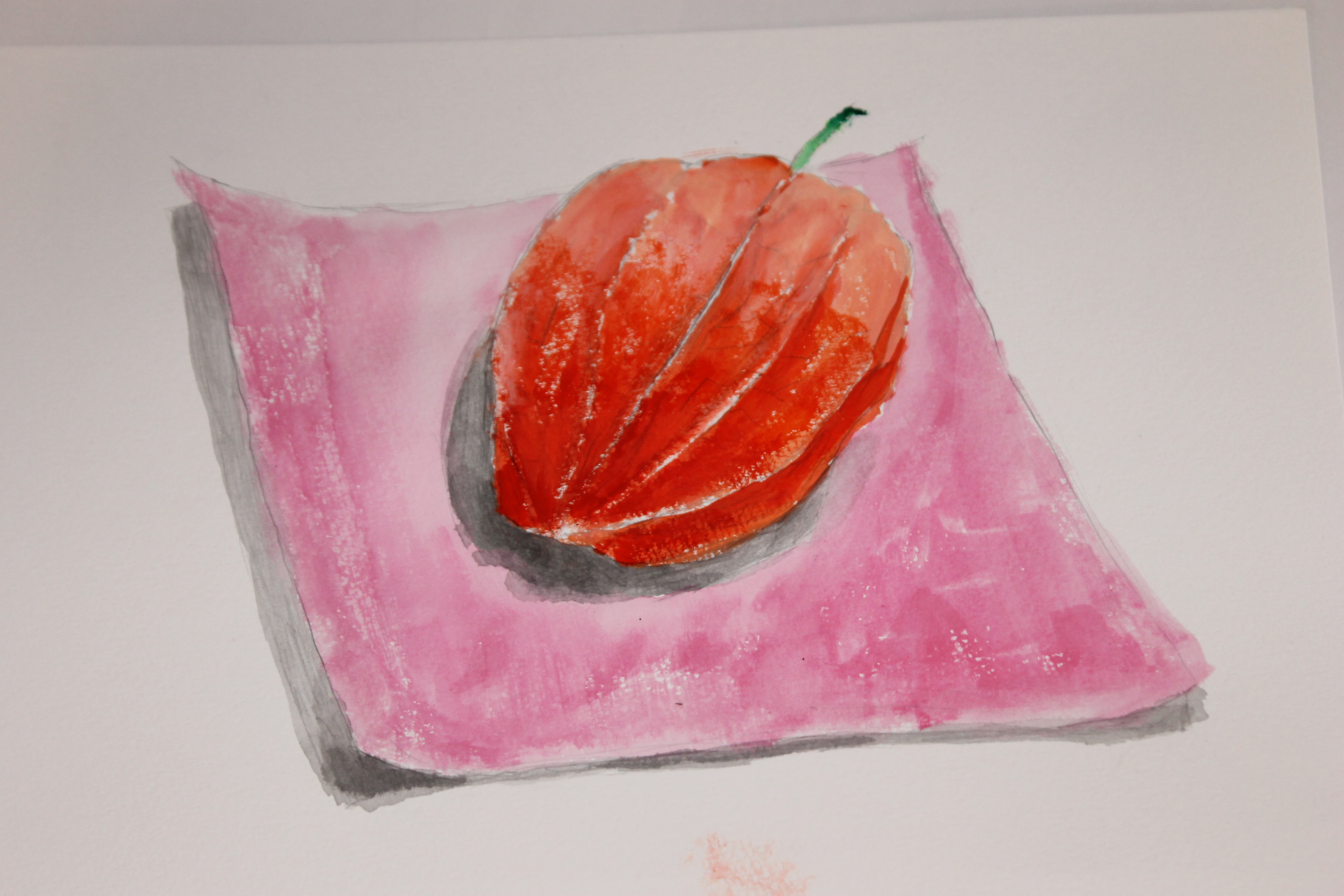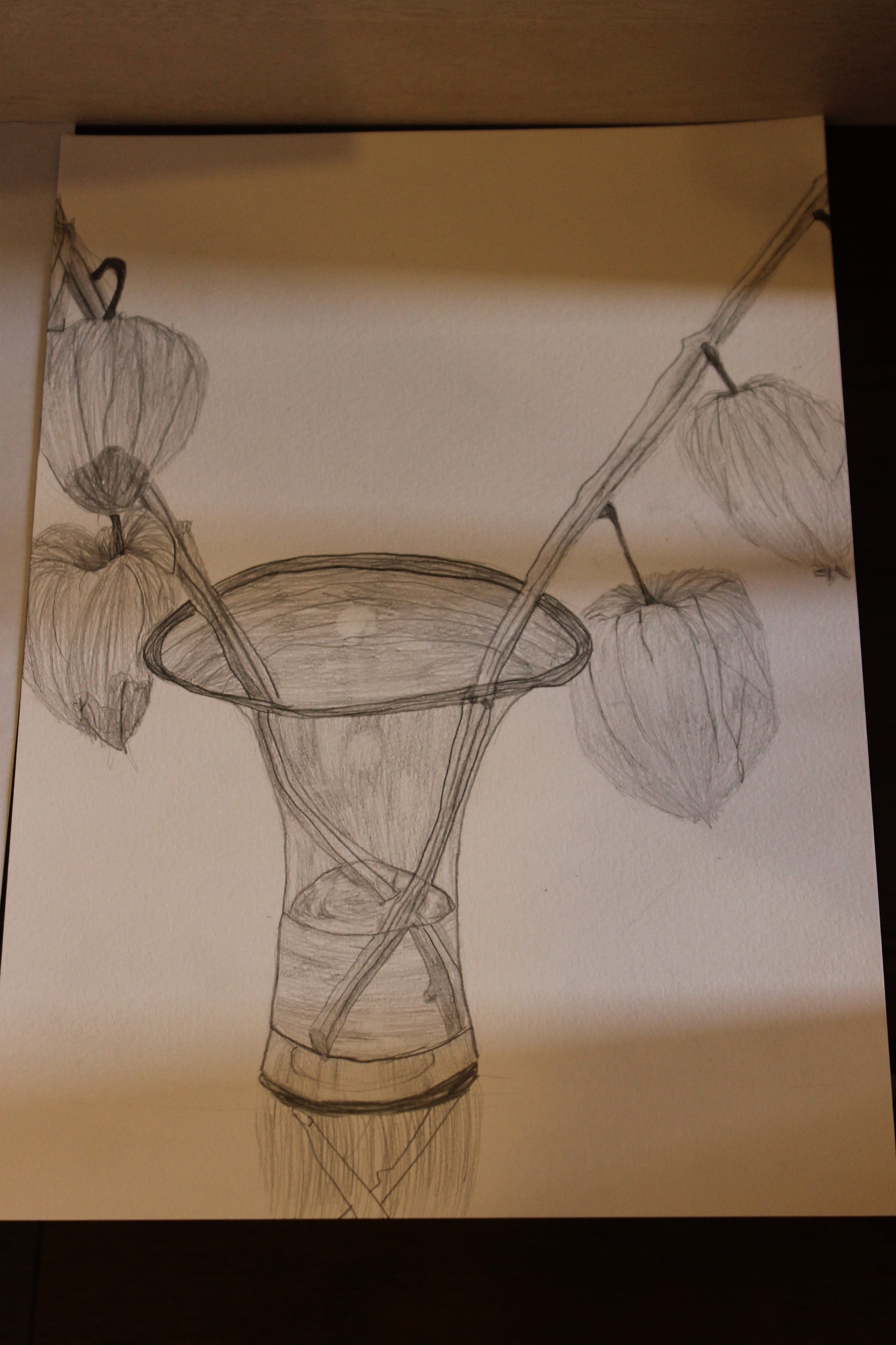 前回の作品の続きをされていて、ほおずきを描けない生徒さんもいらっしゃいました。