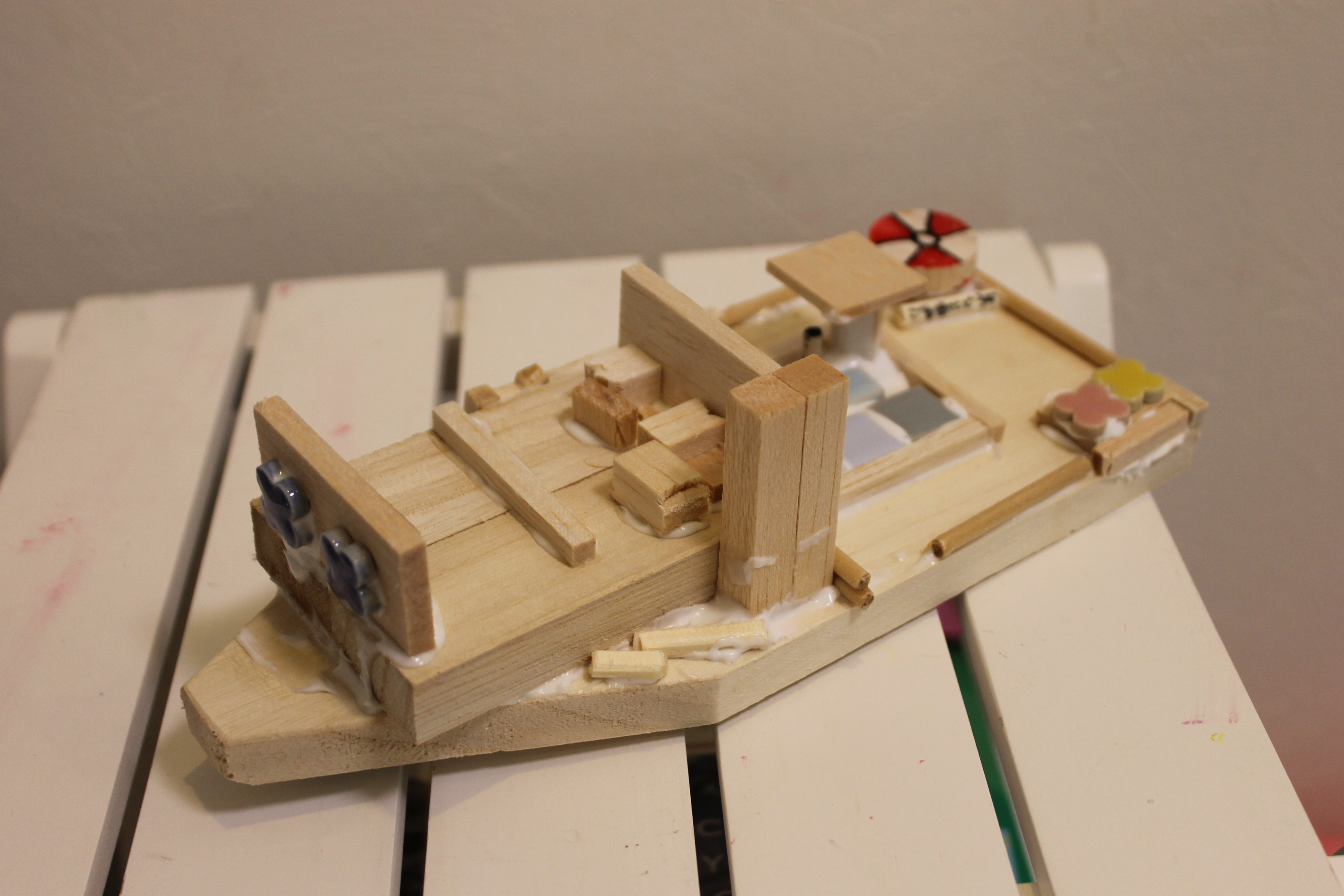 8月はお教室の通常レッスンがお休みなので、夏休みの工作にもなるような作品をと思い、今回は実際に水に浮かせて遊ぶことができる木工の船を造ることにしました。
