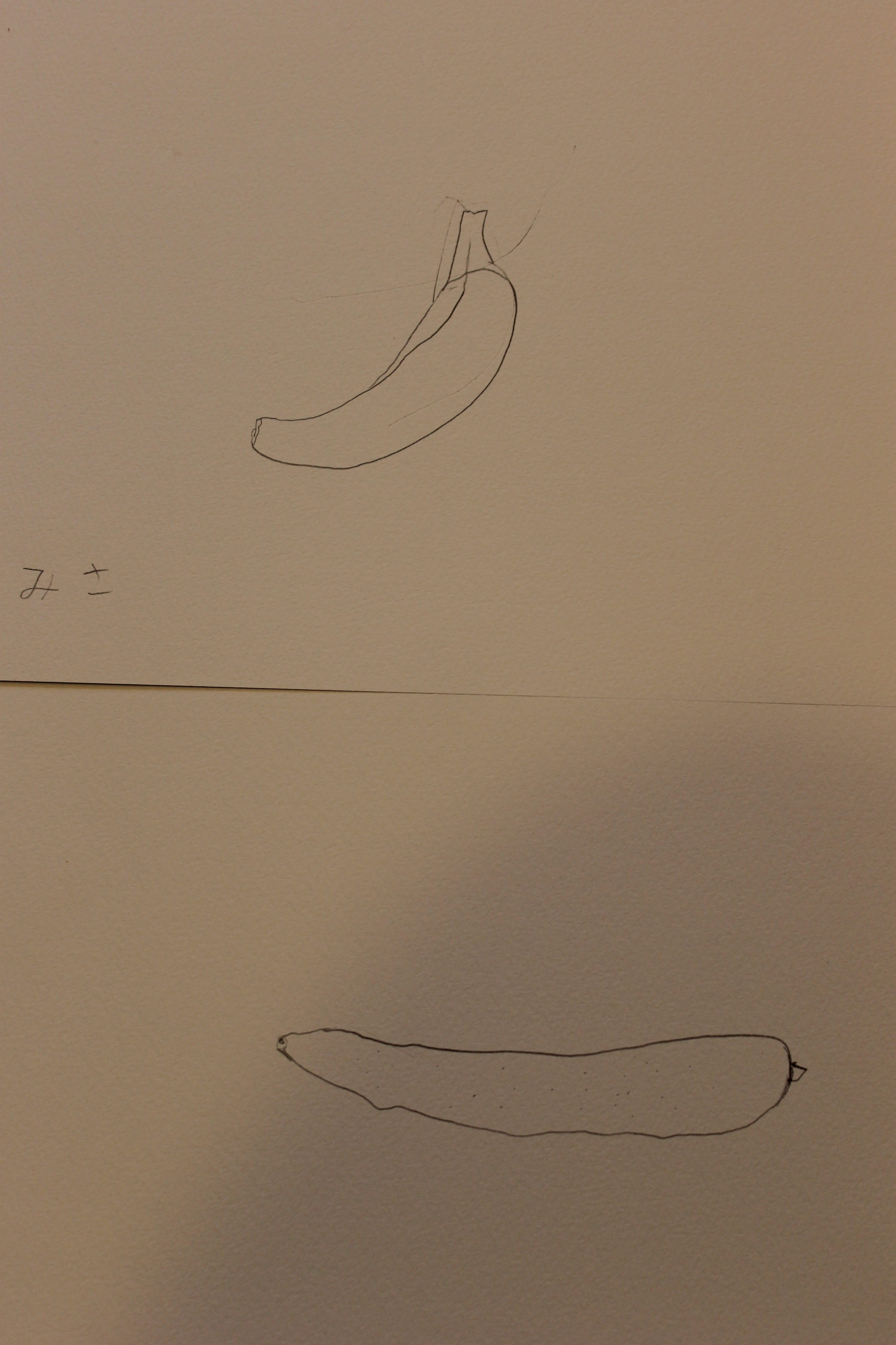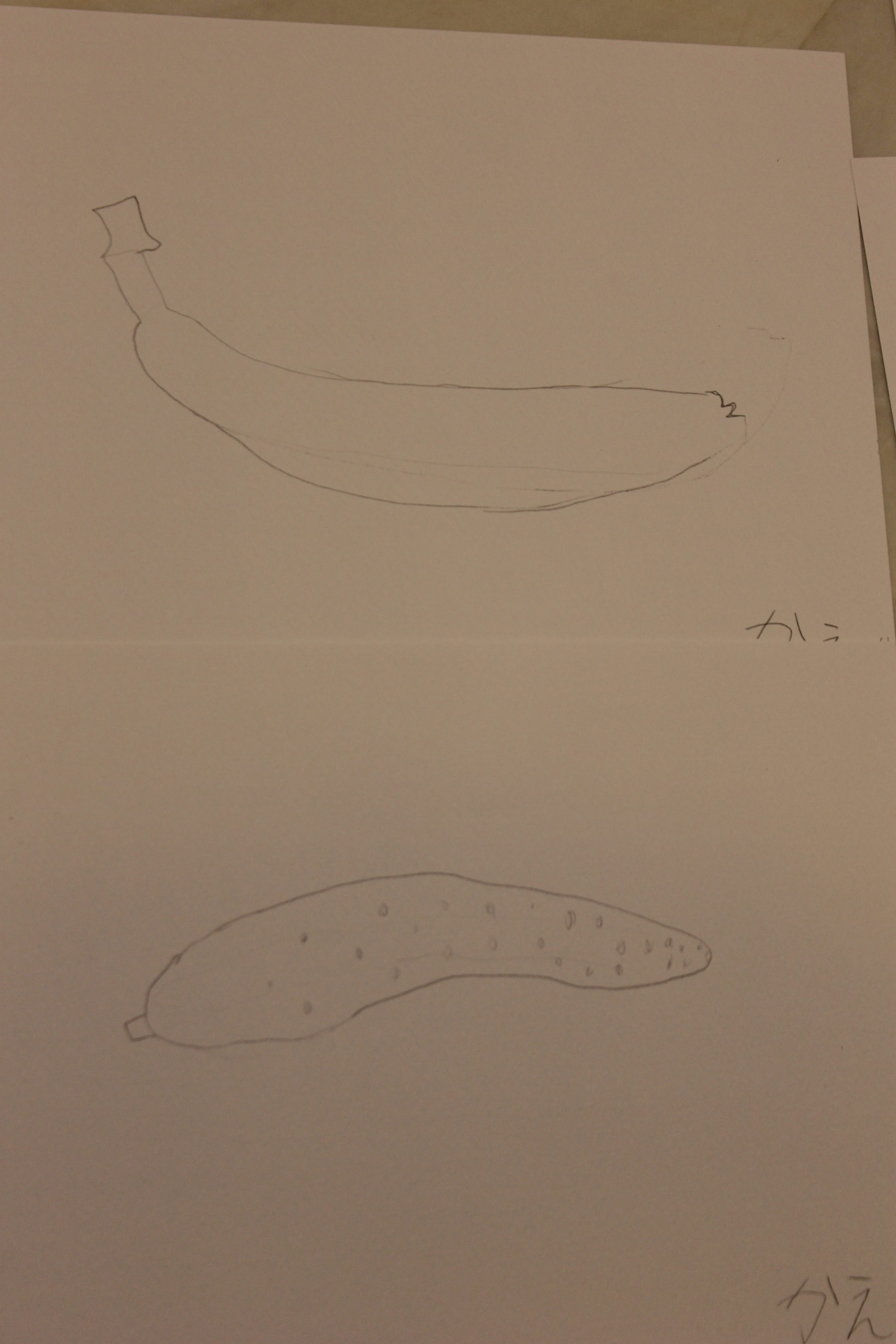 この日のレッスンの生徒さんは低学年のお子さんが多かったです。感性豊かなこの時期に無理にデッサンを教え込んで、こう描くものだという観念だけで描くようになってしまうといけないので、鉛筆ででデッサンを描くのか、「よく観察して」線で描き色鉛筆で色付けして頂くのかを選んで頂くことにしました。