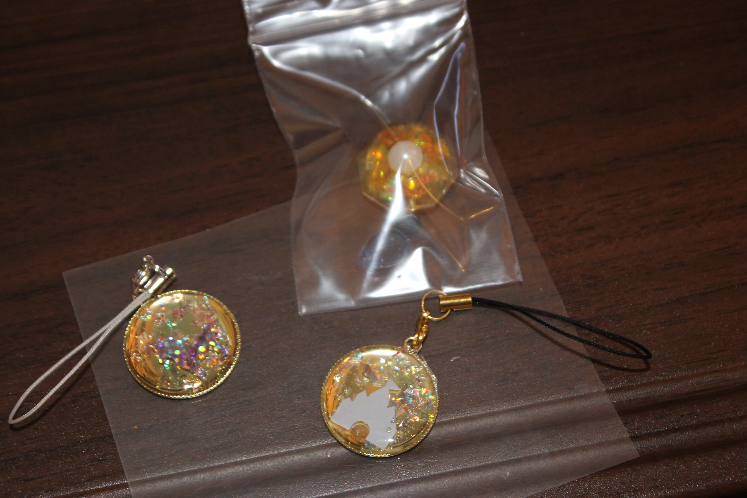 新型肺炎の影響でご自宅にいらっしゃる機会が増えたので、お教室でUVレジンの作り方の導入編を覚えて頂き、ご自宅でも更に楽しんで頂けるかとこの内容にいたしました。感染防止のための消毒でいつもより慌ただしくなり、上手に写真が撮れなかったのですが、可愛らしくできたと思います。