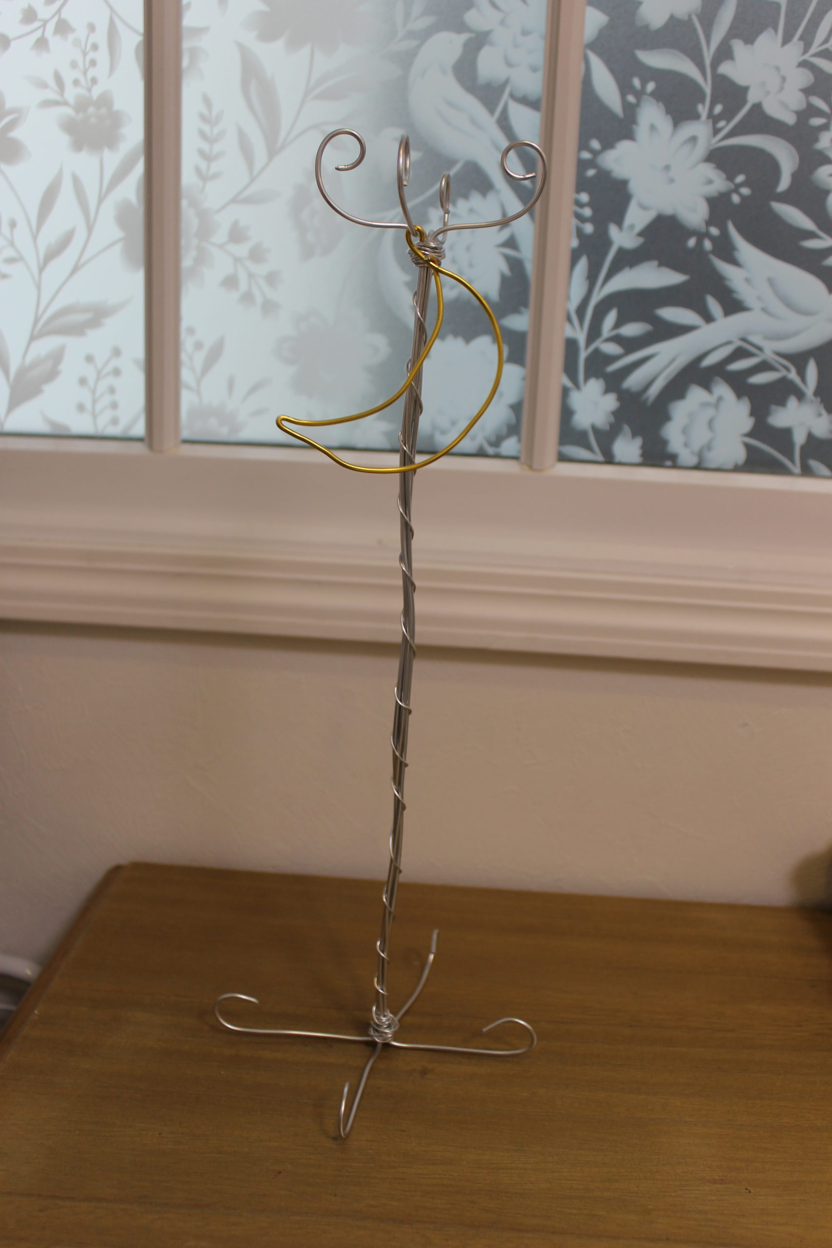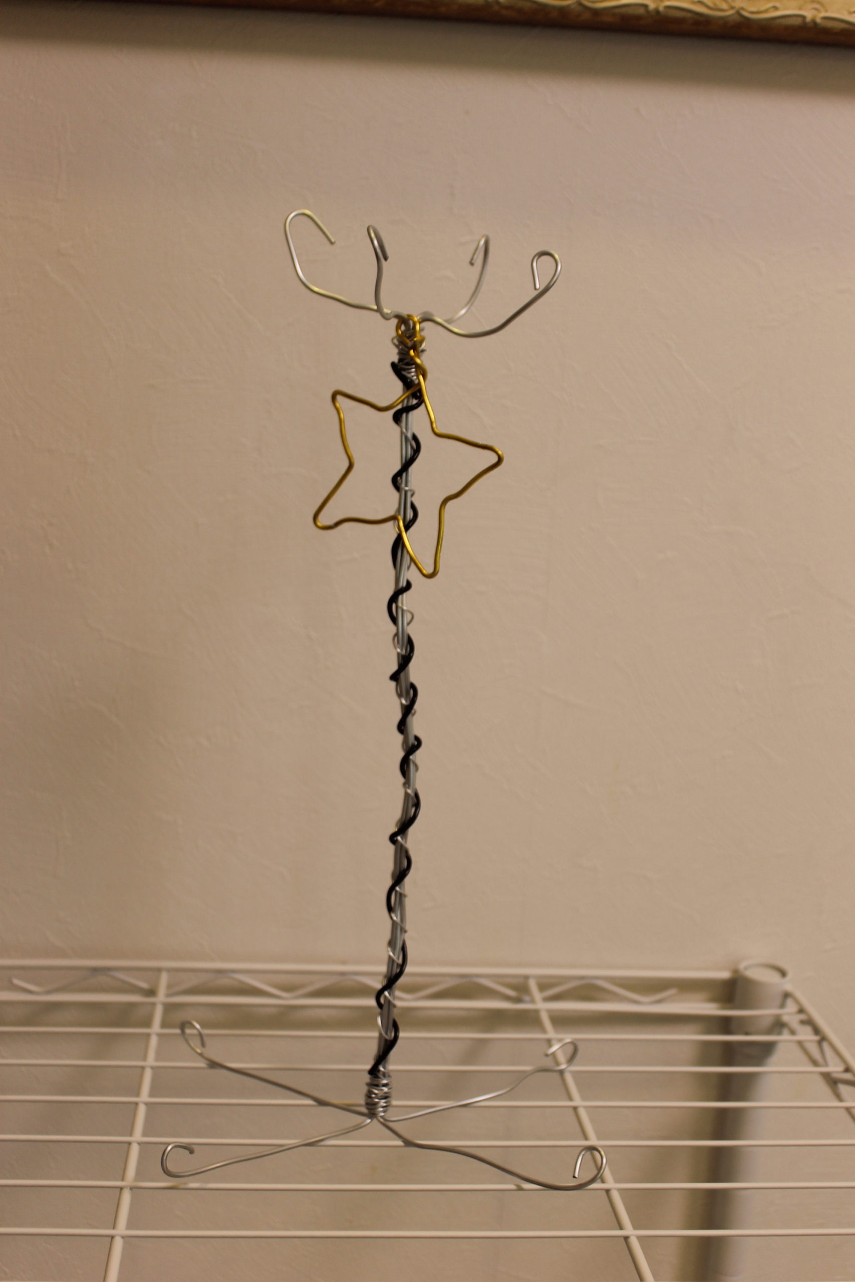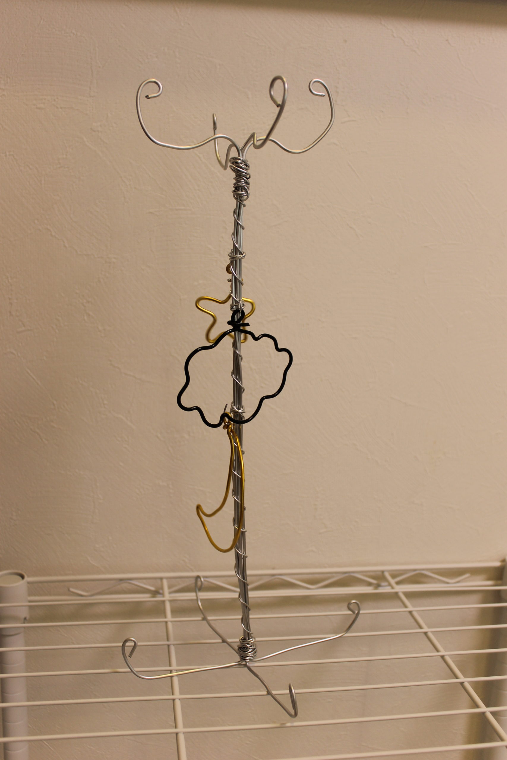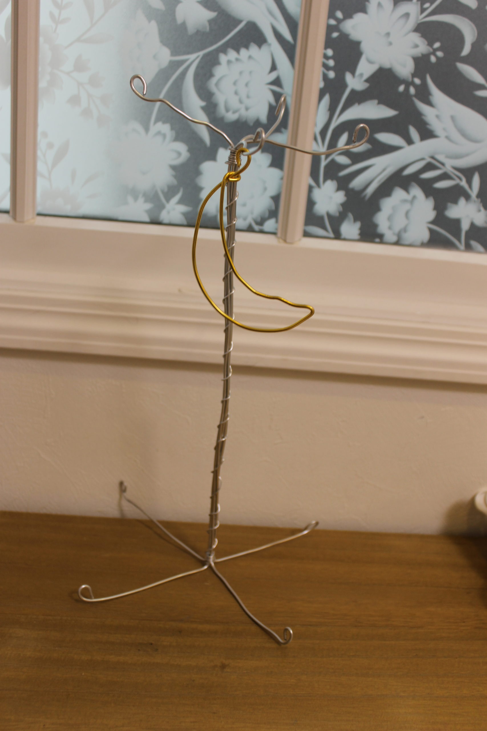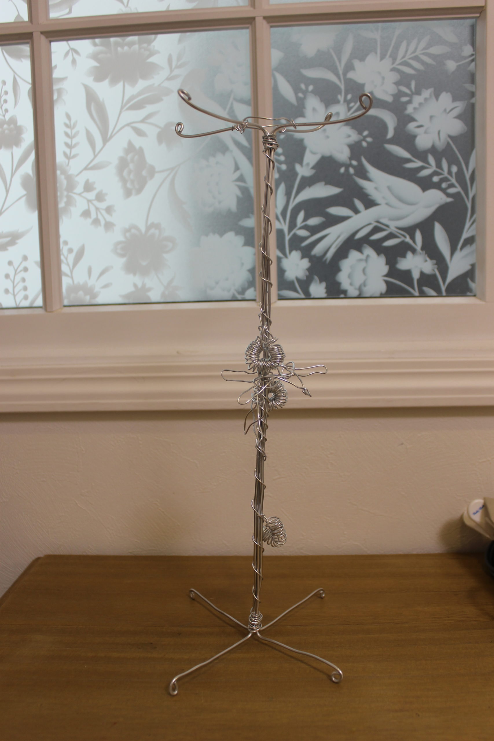 お教室では、お子さんが自ら考え創造的な活動ができるよう、なるべく作り方や手順や方法を教え込むような指導はしないように心がけておりますが、今回のワイヤークラフトに関してはお子さん達が初めて手にする道具と素材なので、まずは扱い方に慣れて頂くため、道具の使い方などをお伝えしながら同じ形のマスクスタンドを作ってみました。
