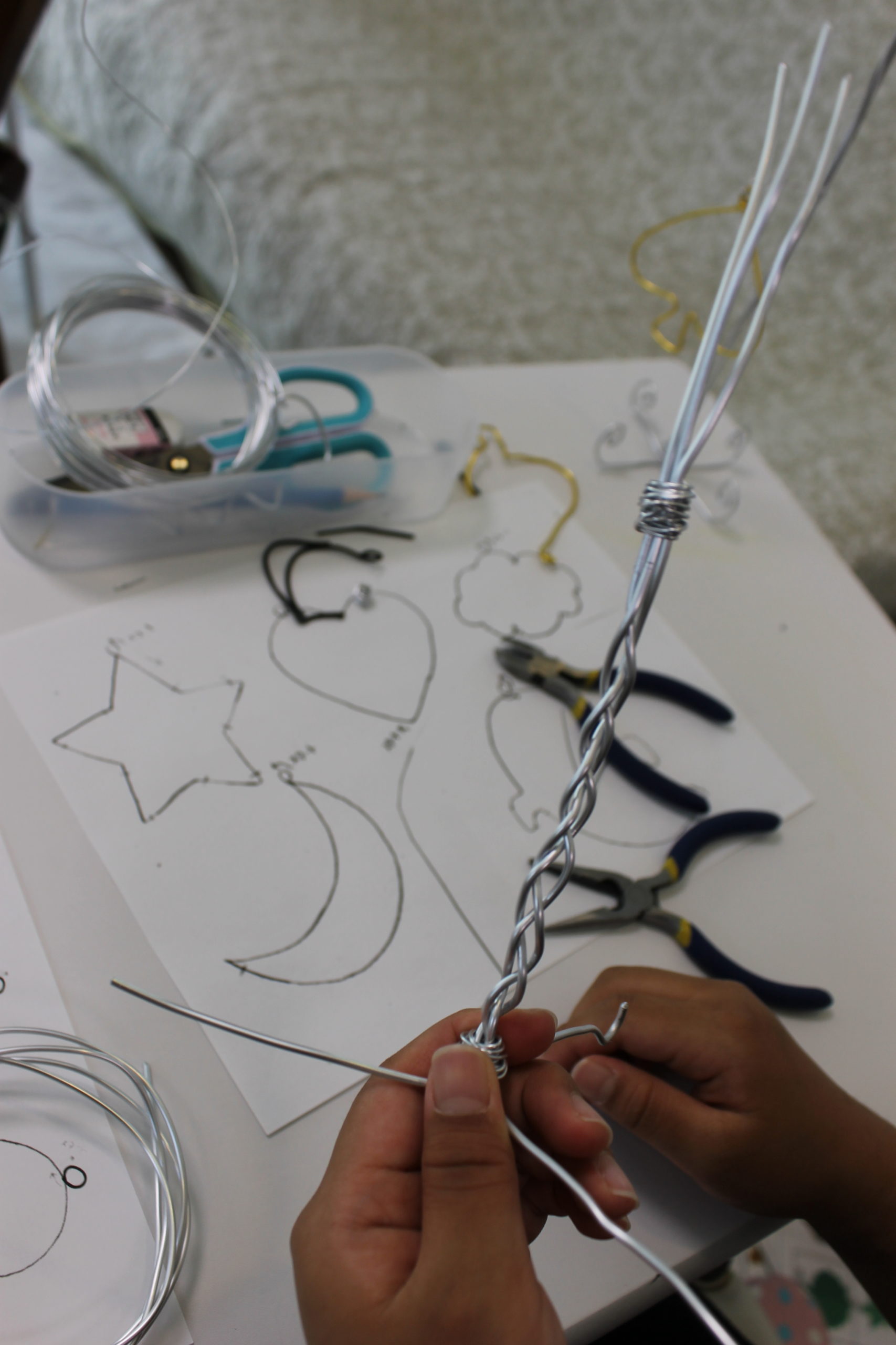 今月のこどもクラスでは、ワイヤークラフトでマスクスタンドを作っております。