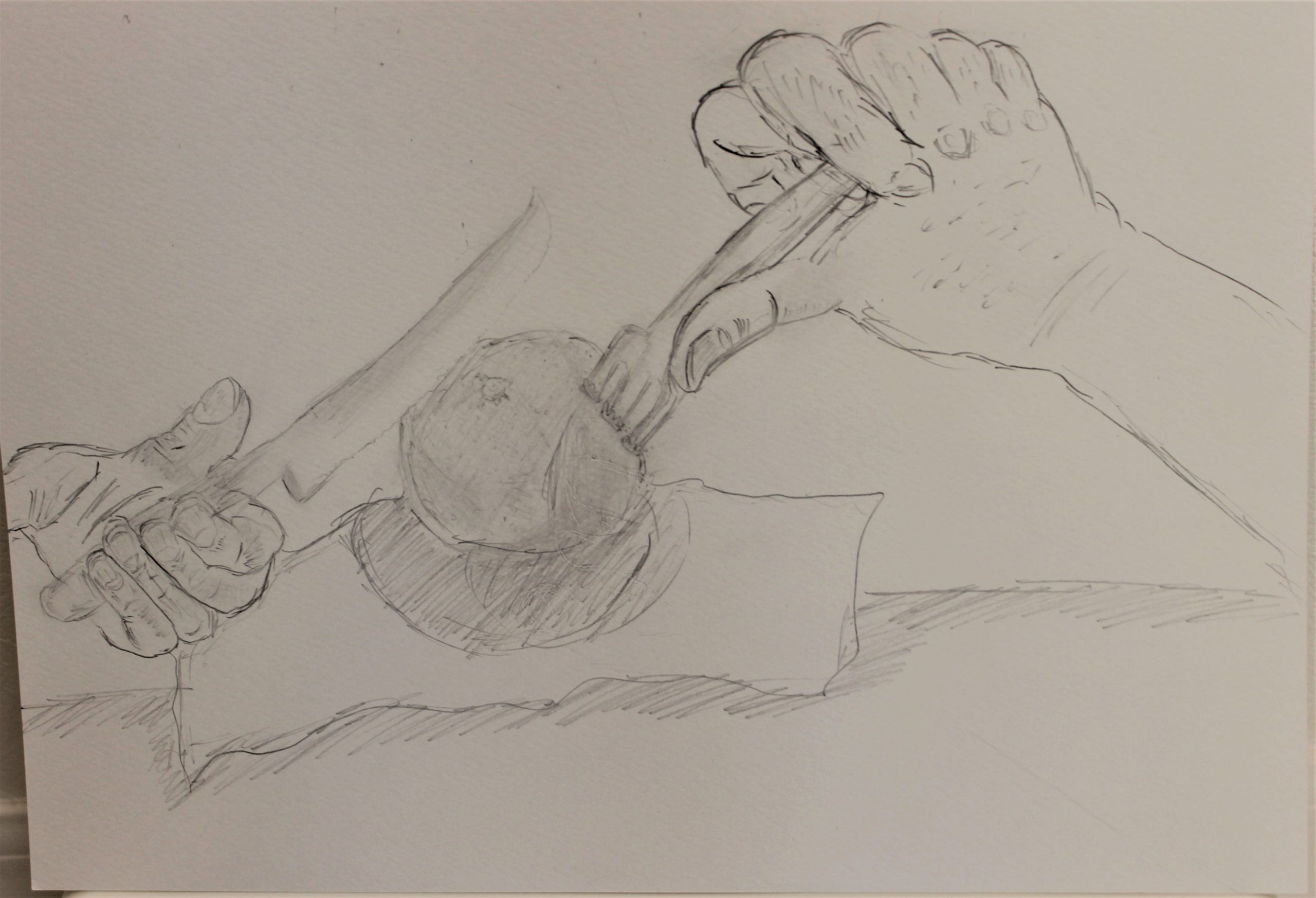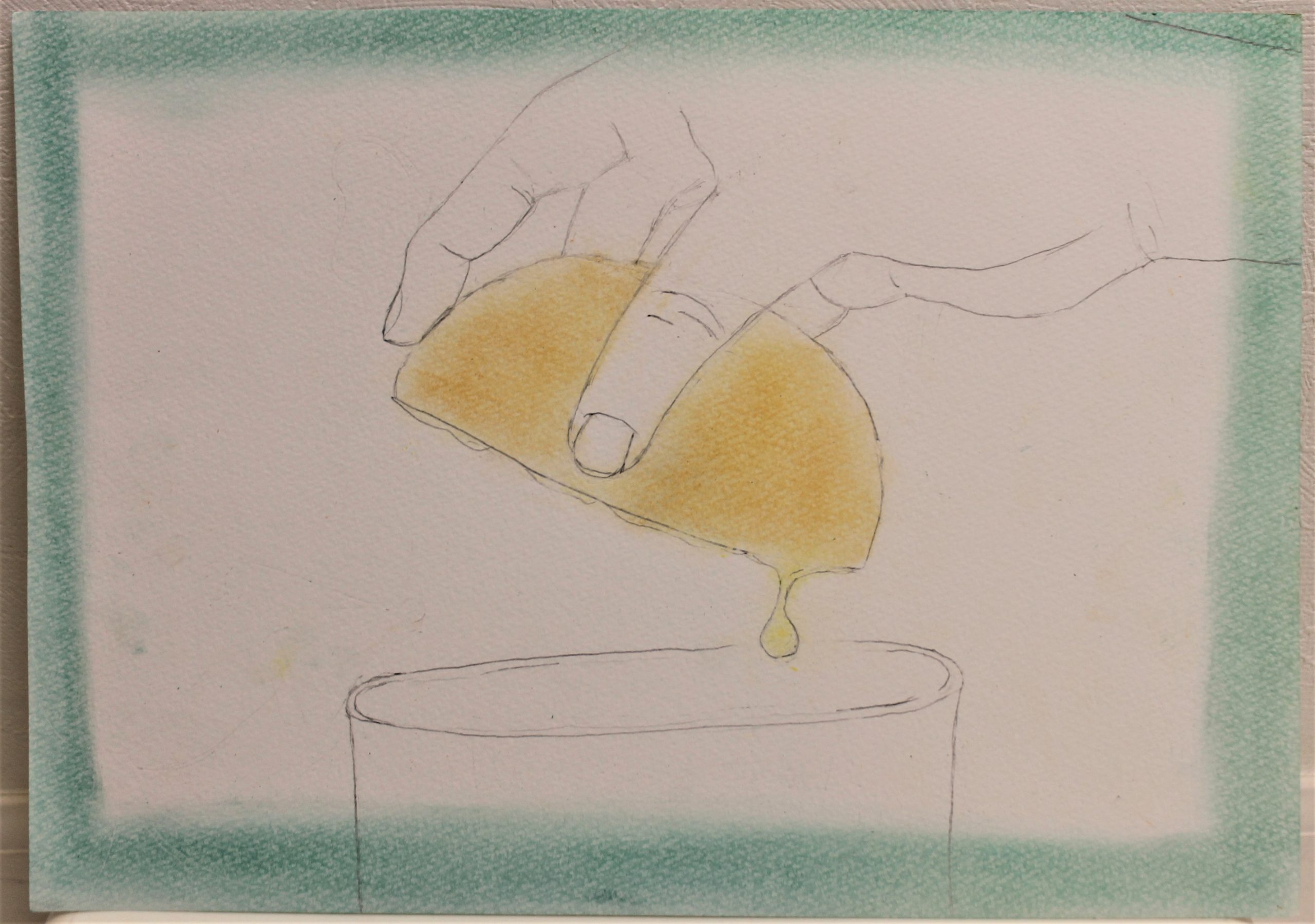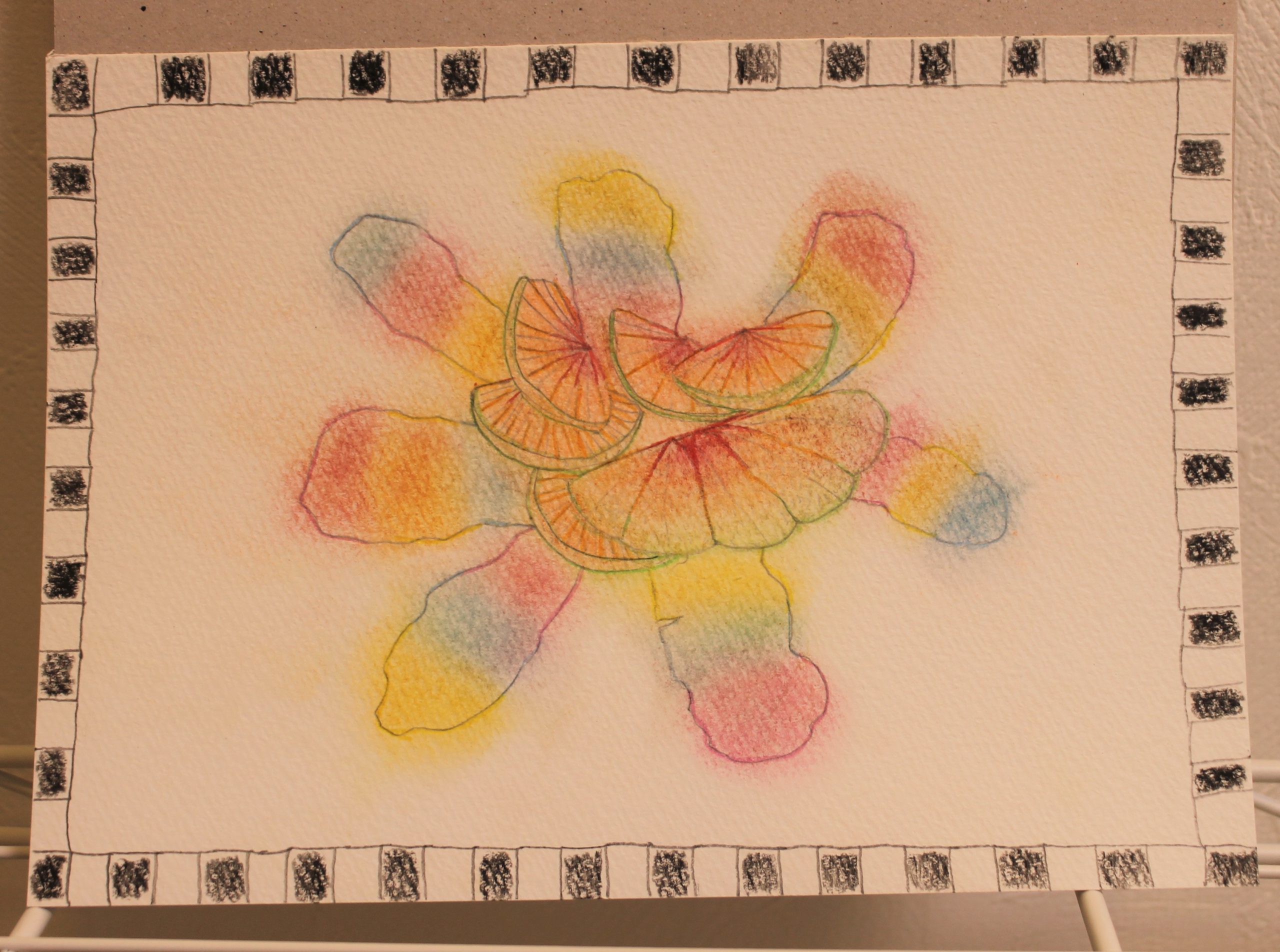 もし、「さぁ、今日はミカンを描きましょう。」とだけお伝えして制作を始めたら、上手に描こうと一生懸命取り組んで下さる生徒さんもいらっしゃるかもしれません。もしくは、見慣れたミカンを前にして、多くの生徒さん達は漫然と目の前のミカンを描き始めてしまわれるのではないでしょうか。