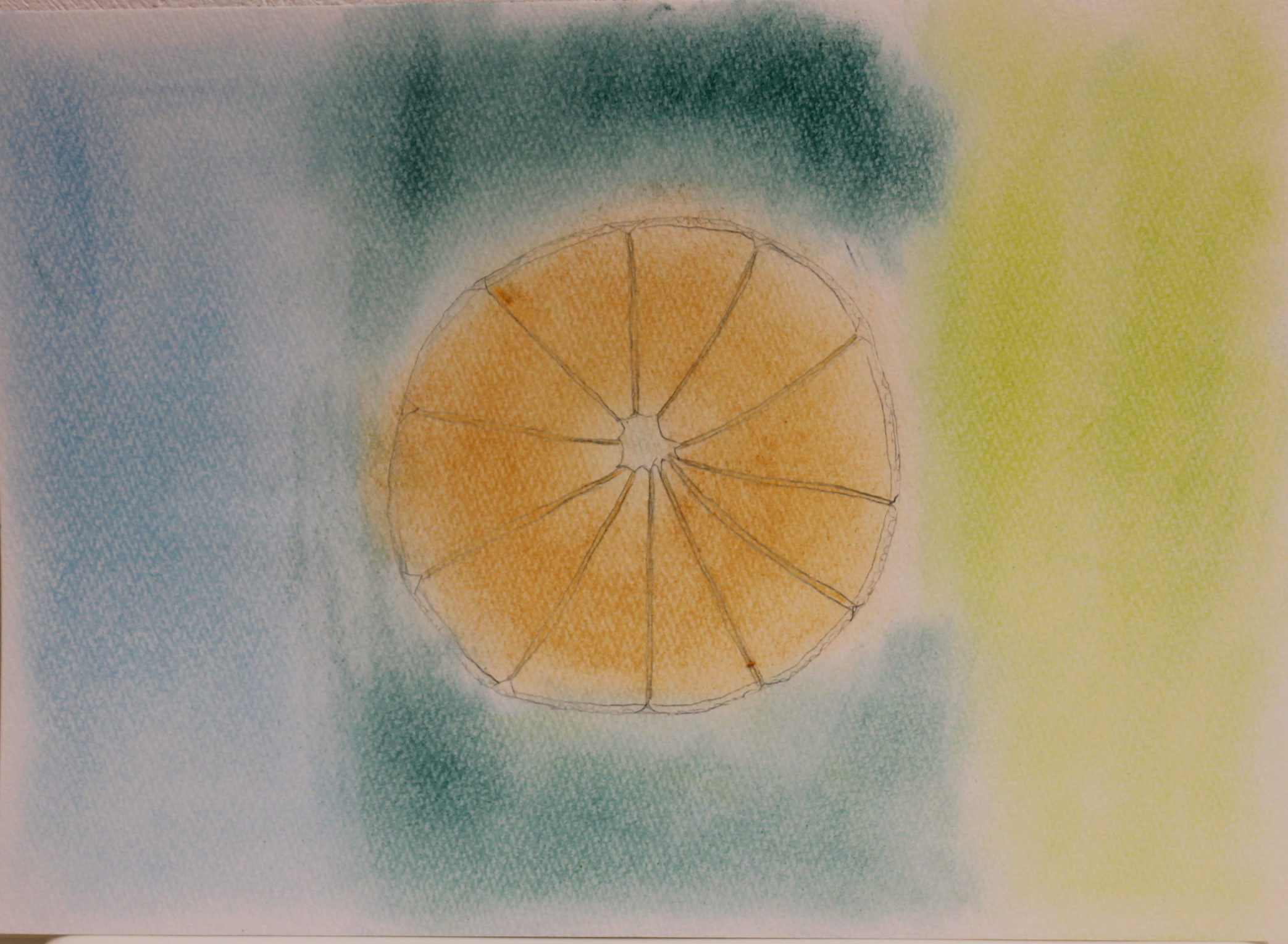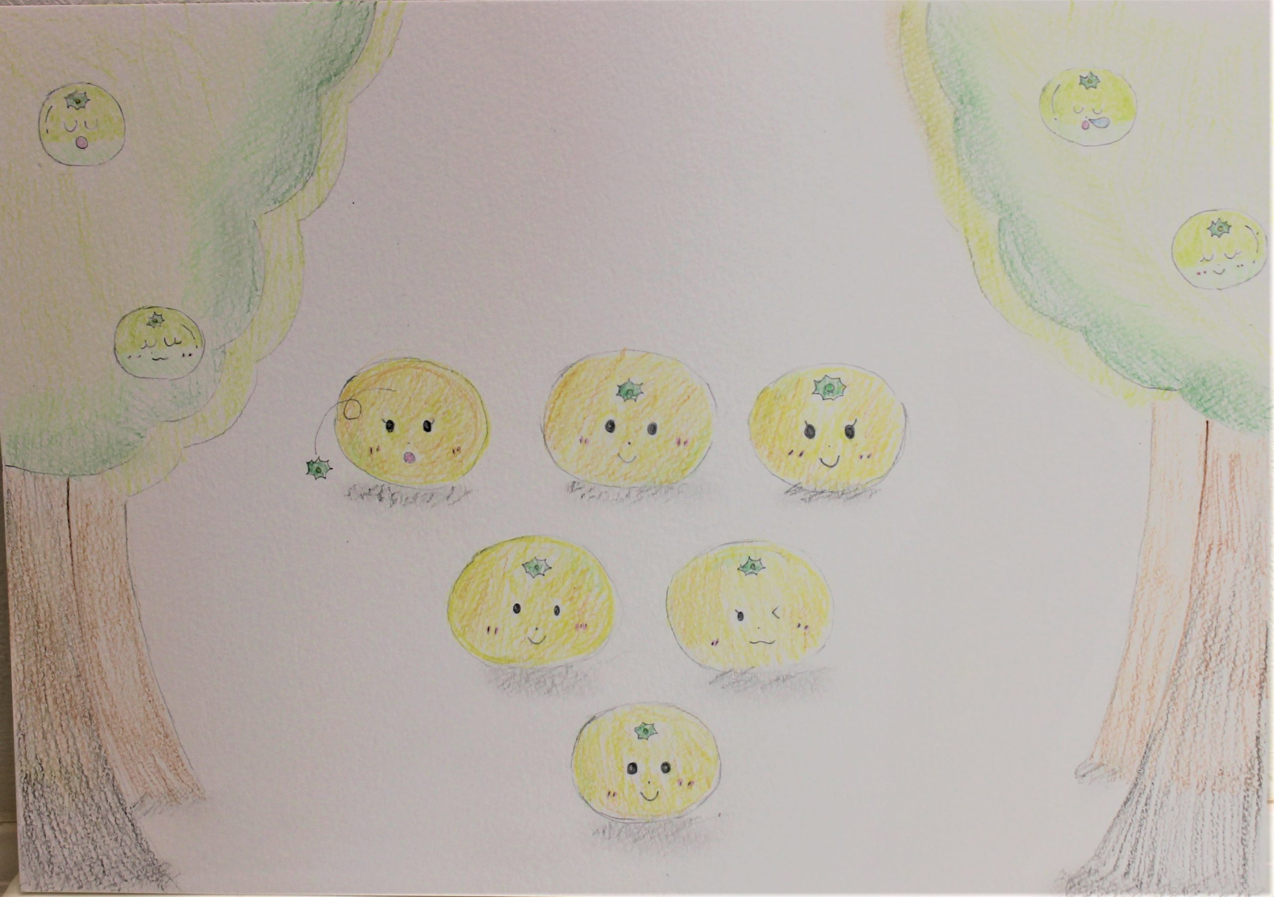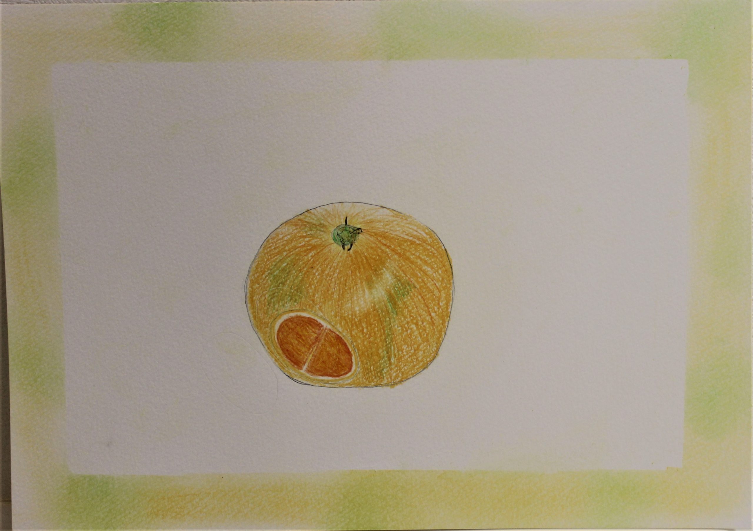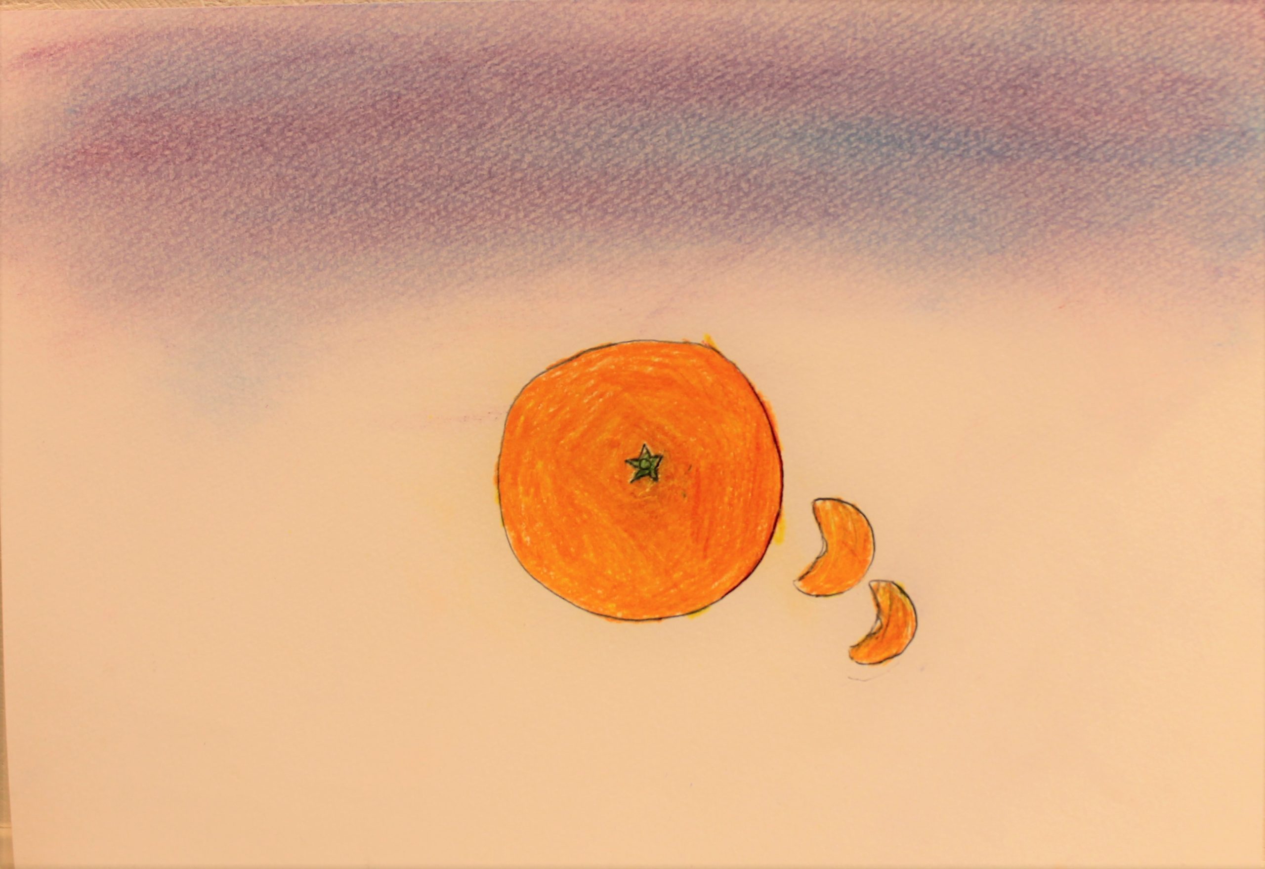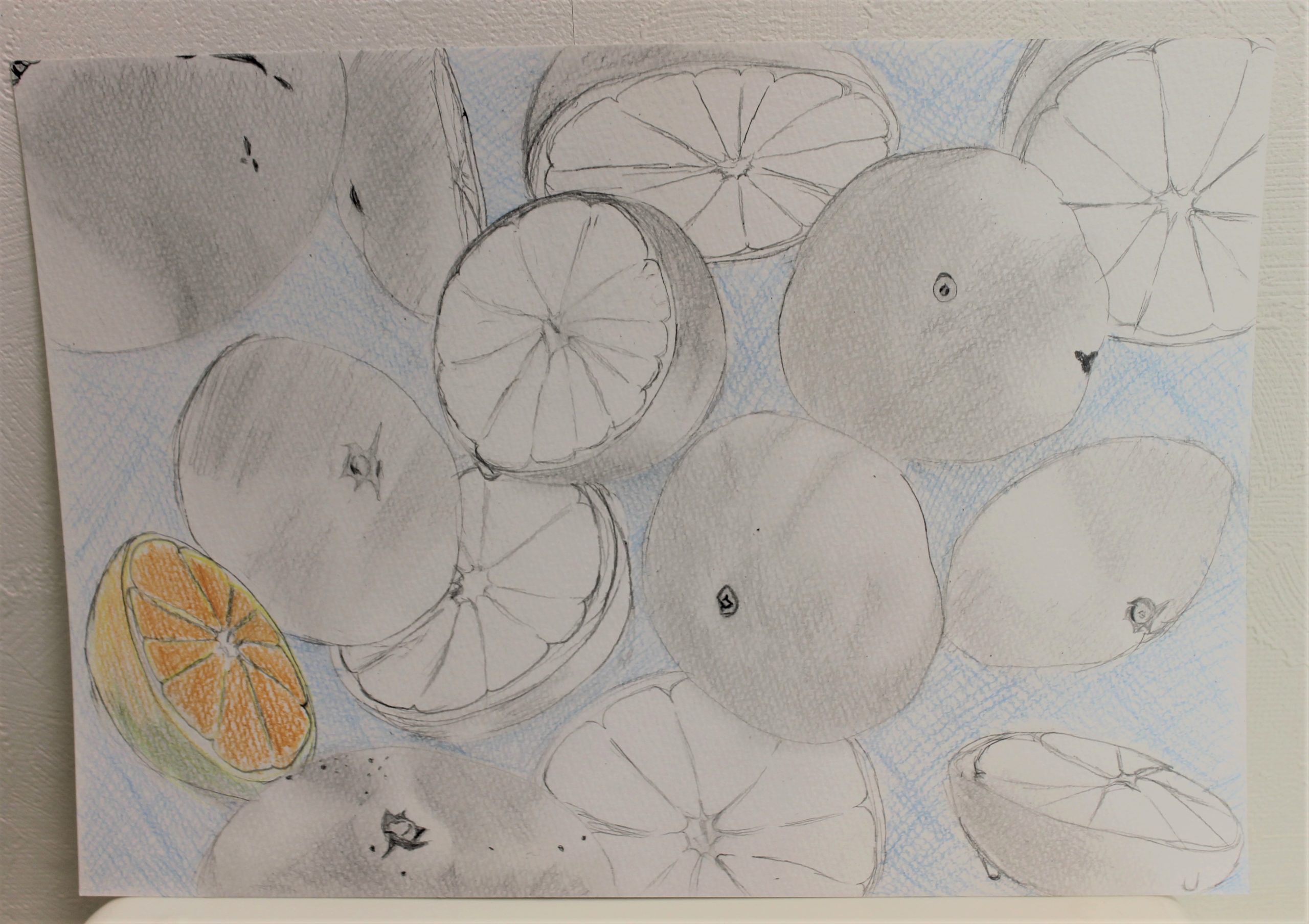 今月のこどもクラスでは絵画を行っており、モチーフはミカン一個です。