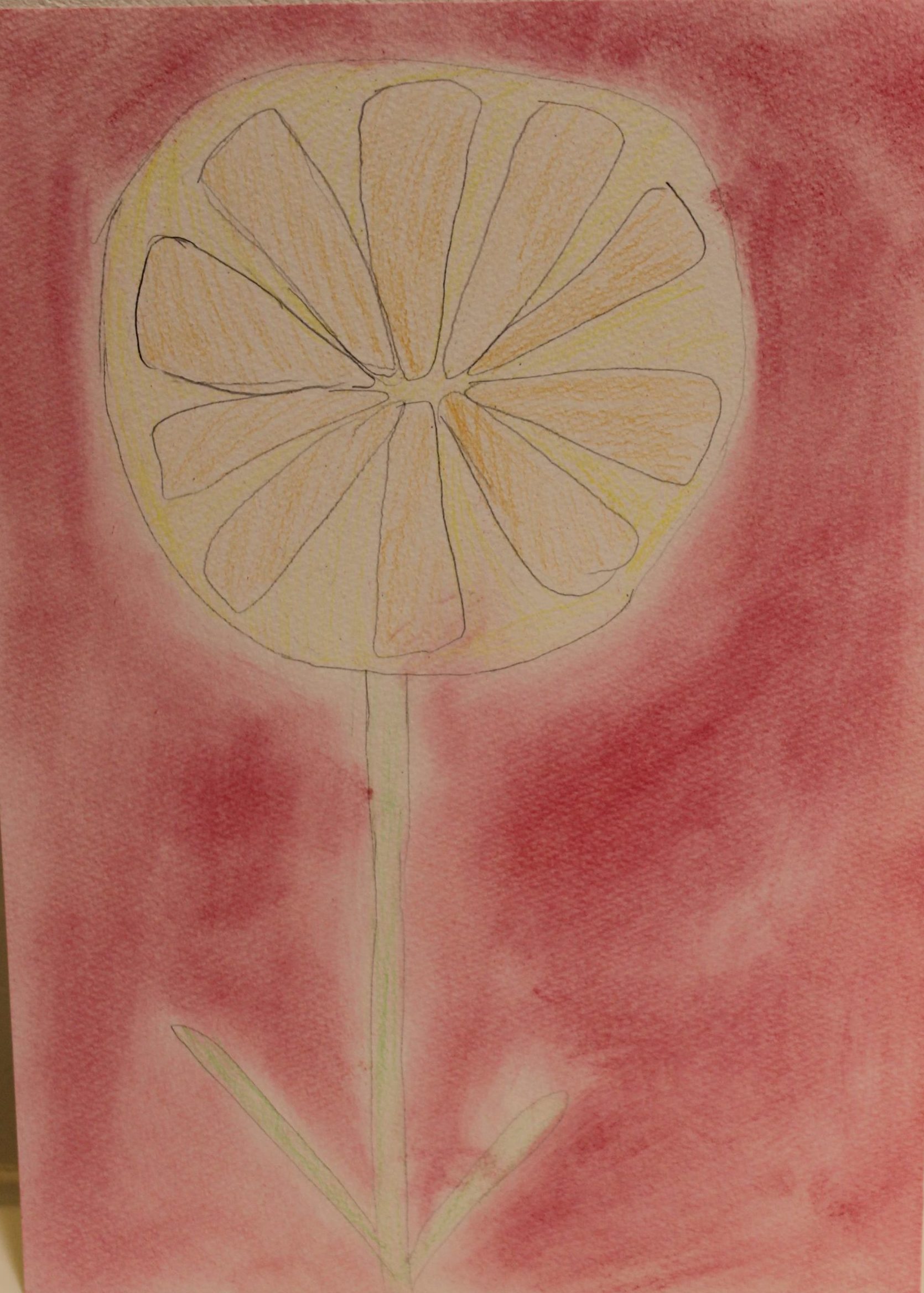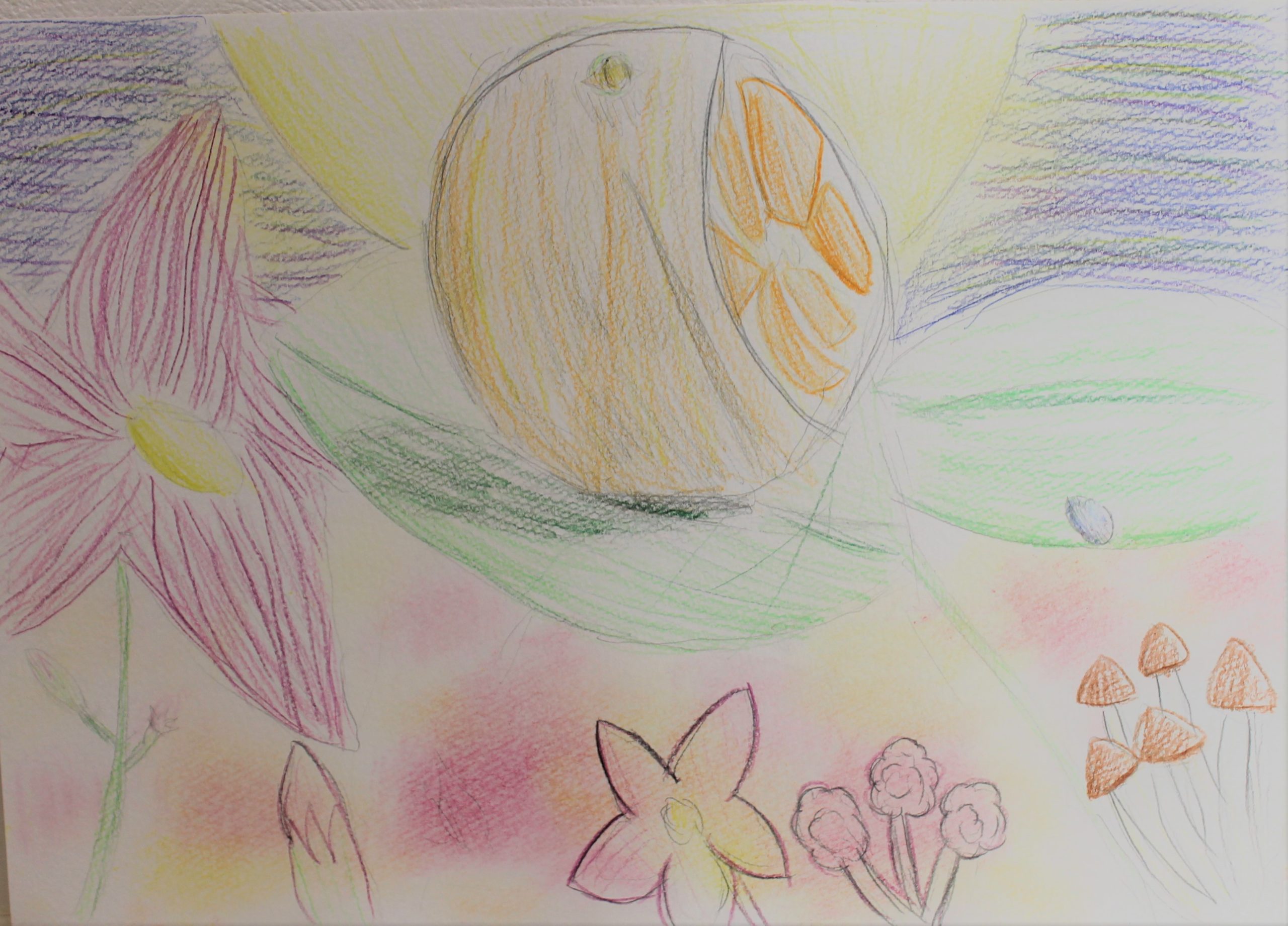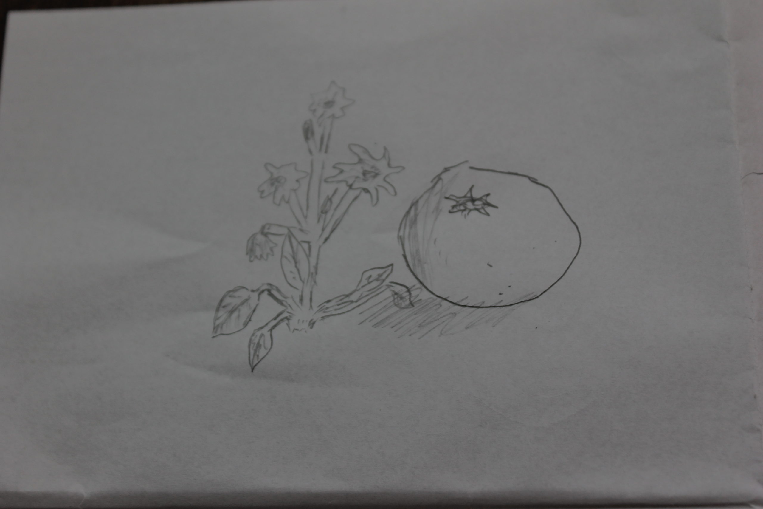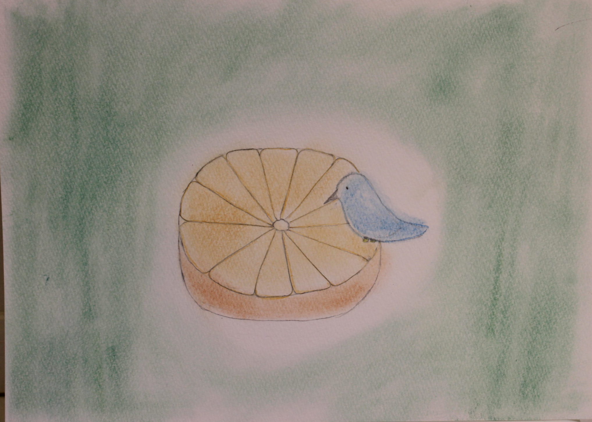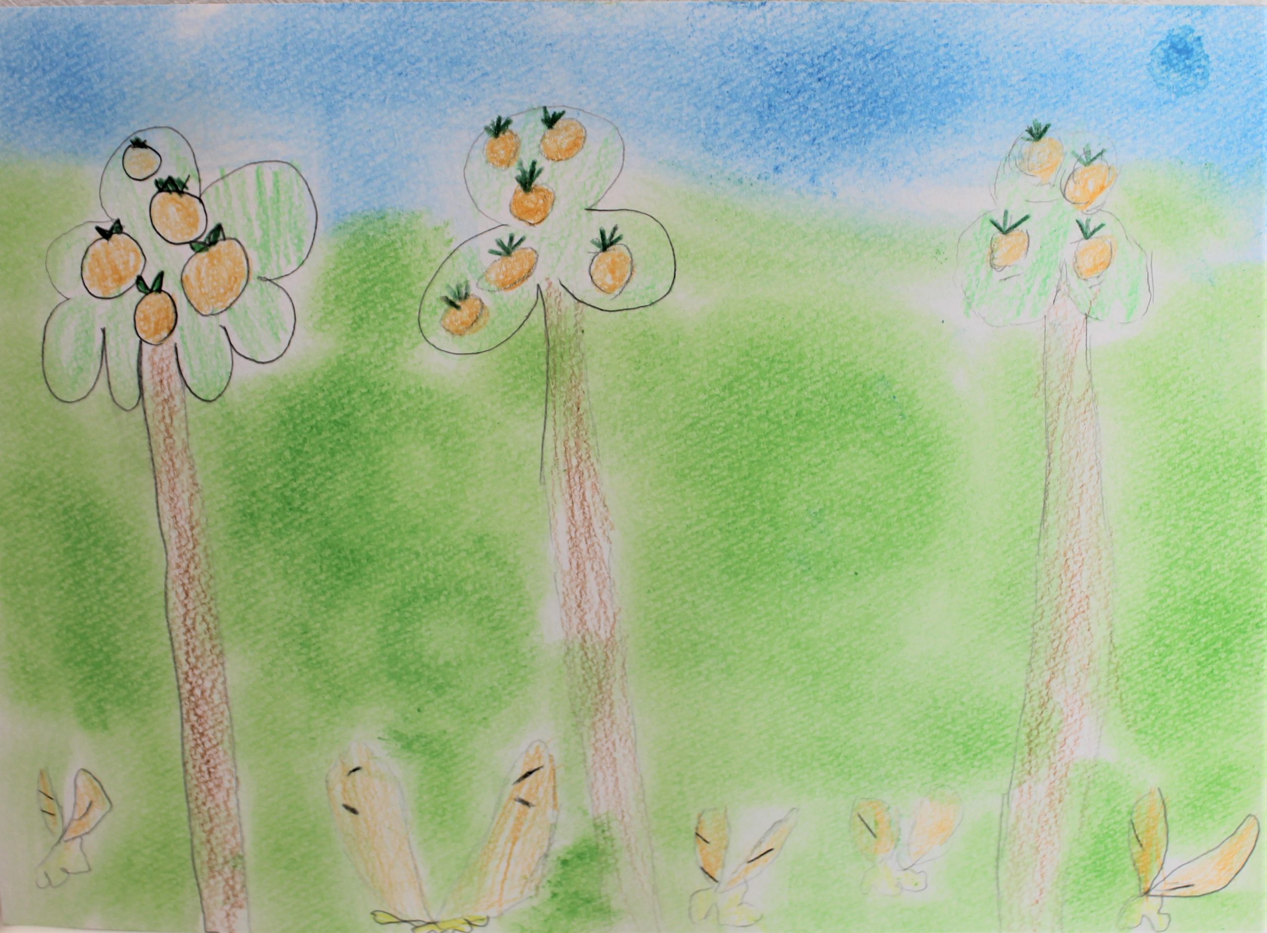今月のこどもクラスでは絵画を行っており、モチーフはミカン一個です。