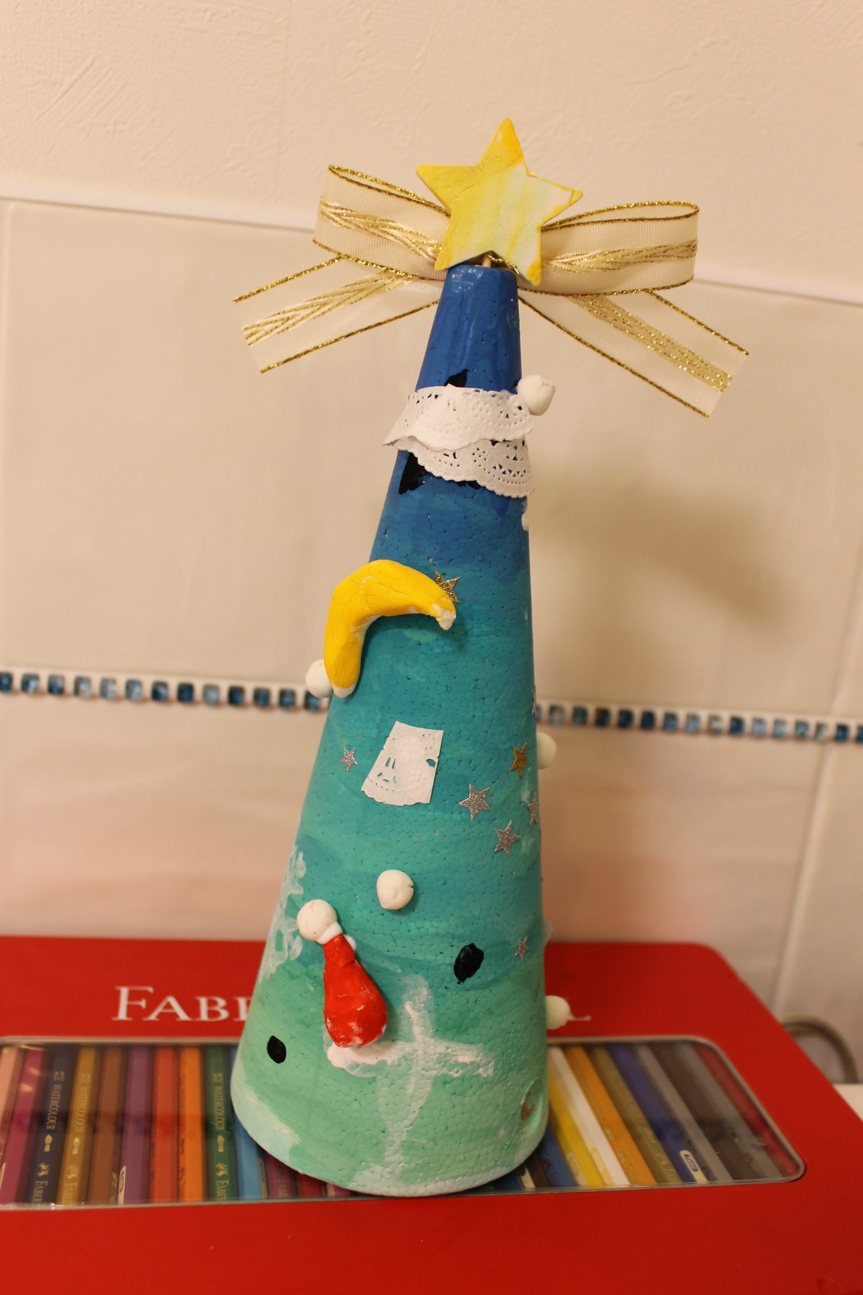 余談ですが、クリスマスツリーの一番上についている星は紫外線を当てておくと暗いところでうっすらと光る蓄光粘土を使用しております。余った粘土で最後に小物を造った生徒さんもいらっしゃるので、ご自宅の暗いところで是非粘土が光る様子をご覧頂けたらと思います。