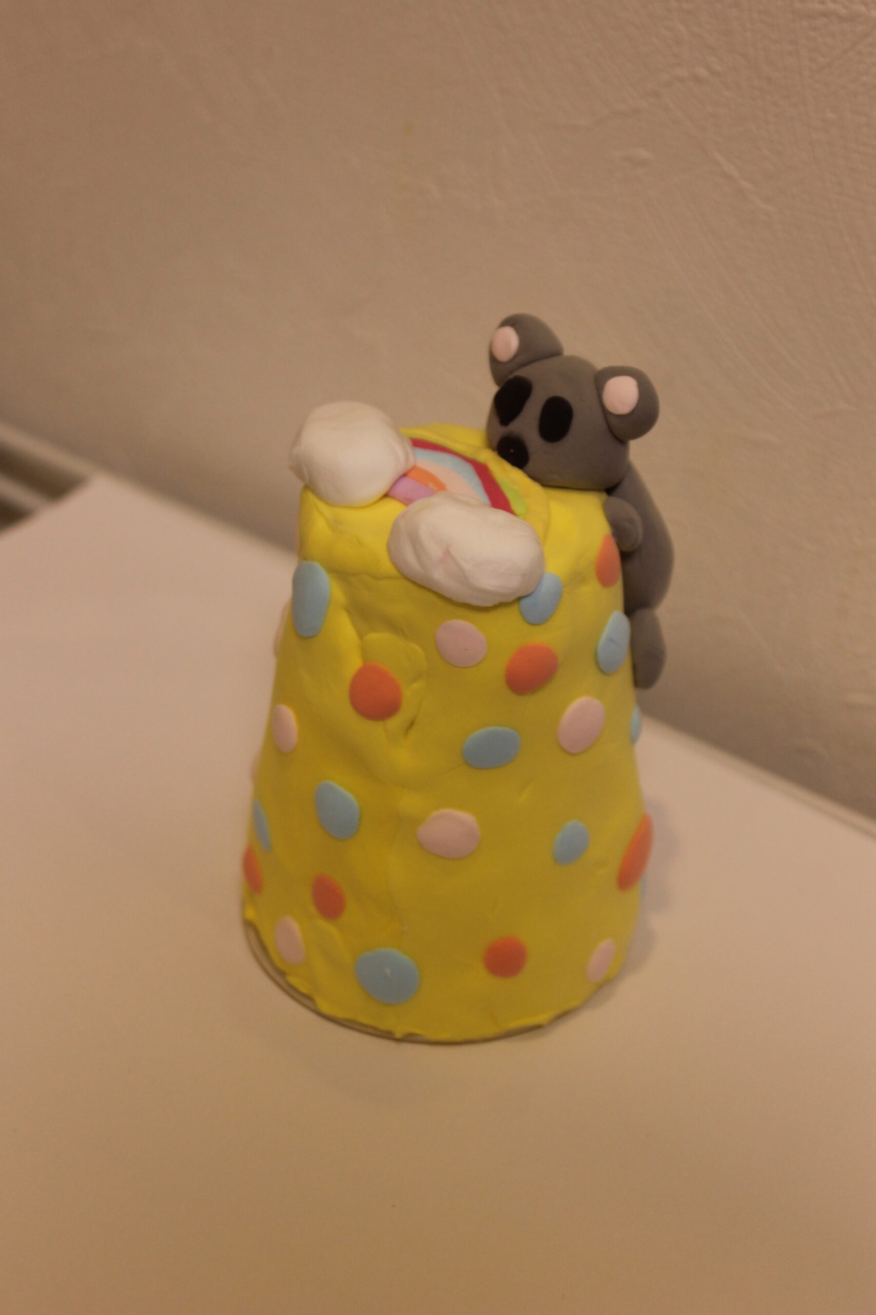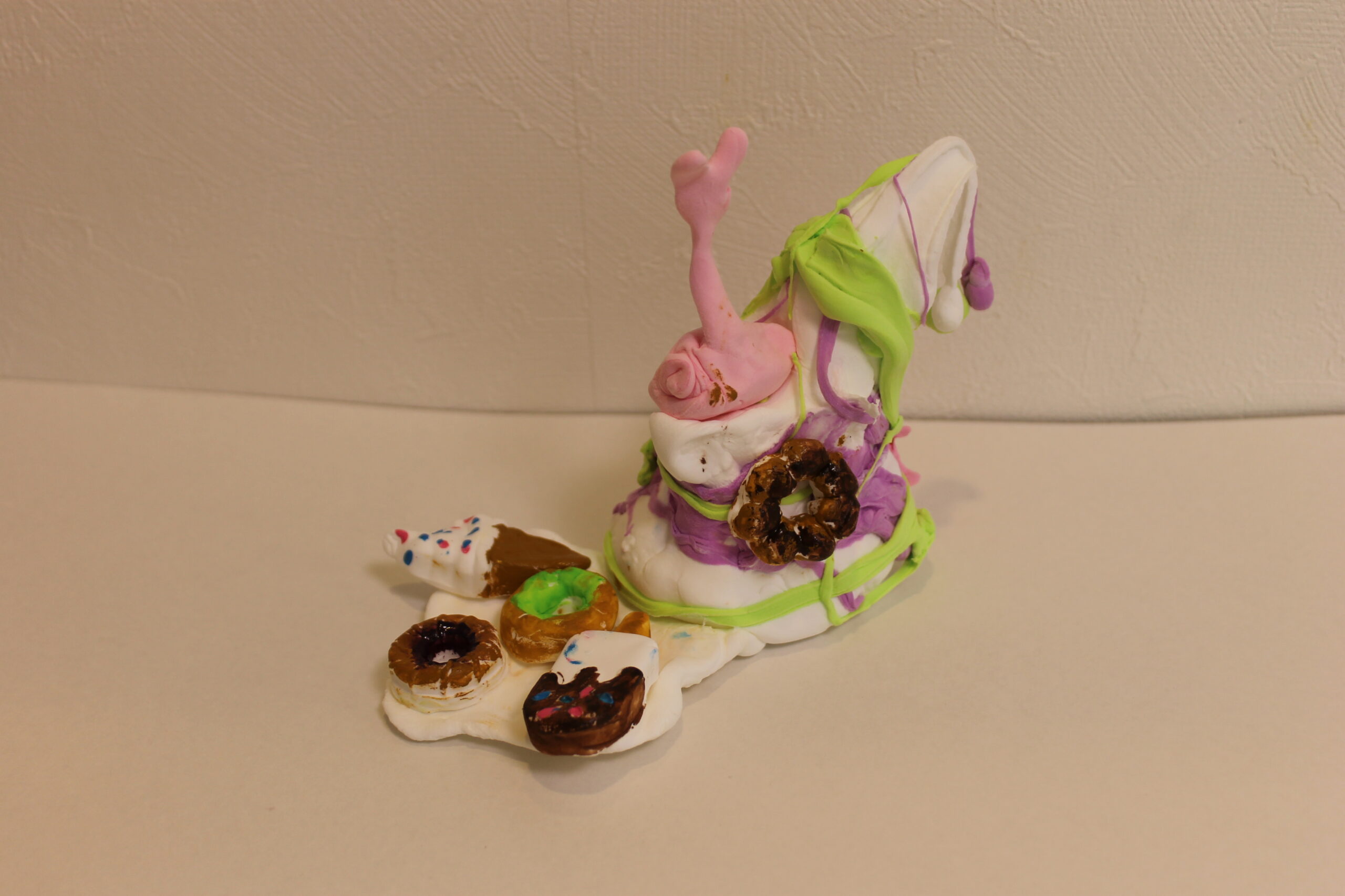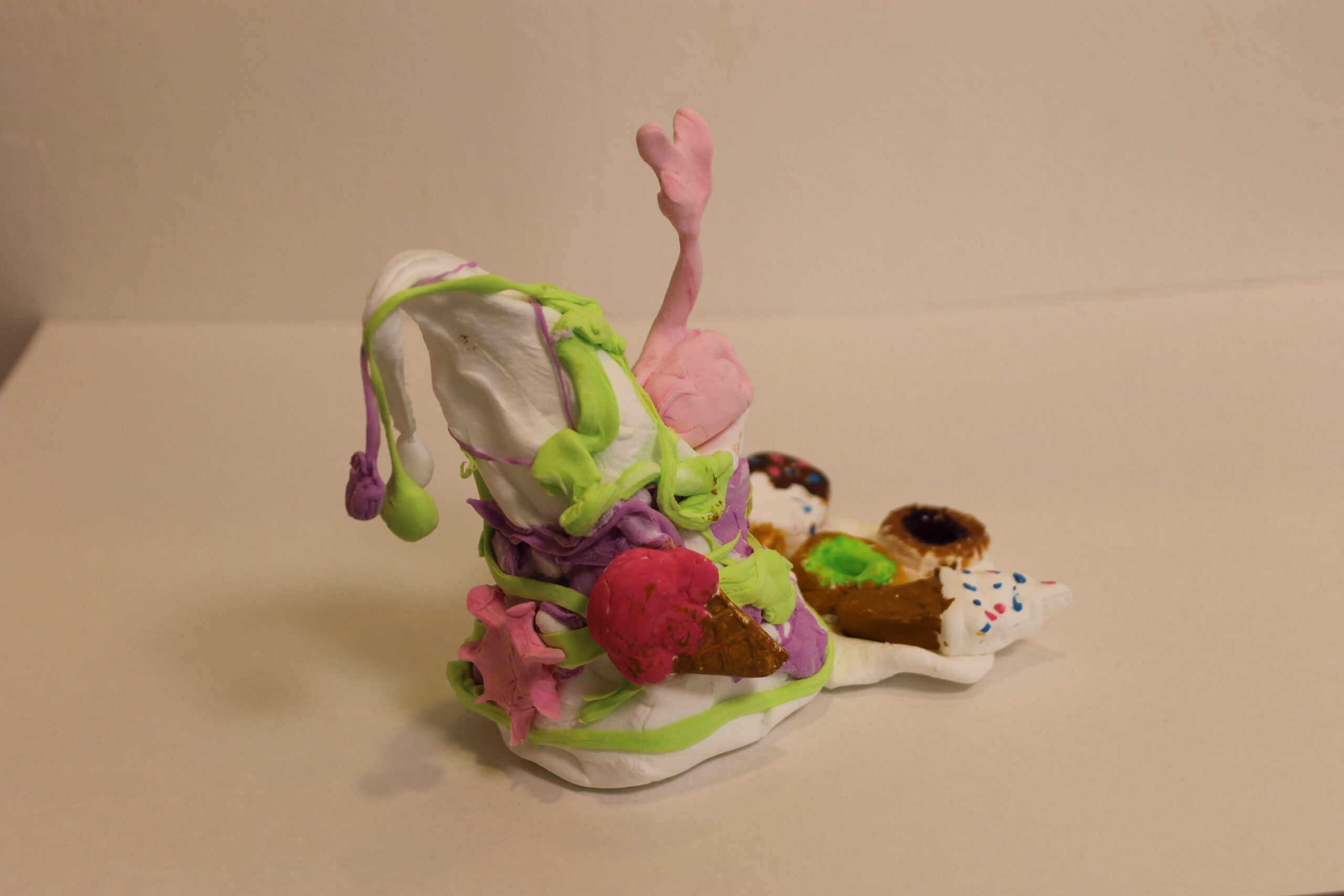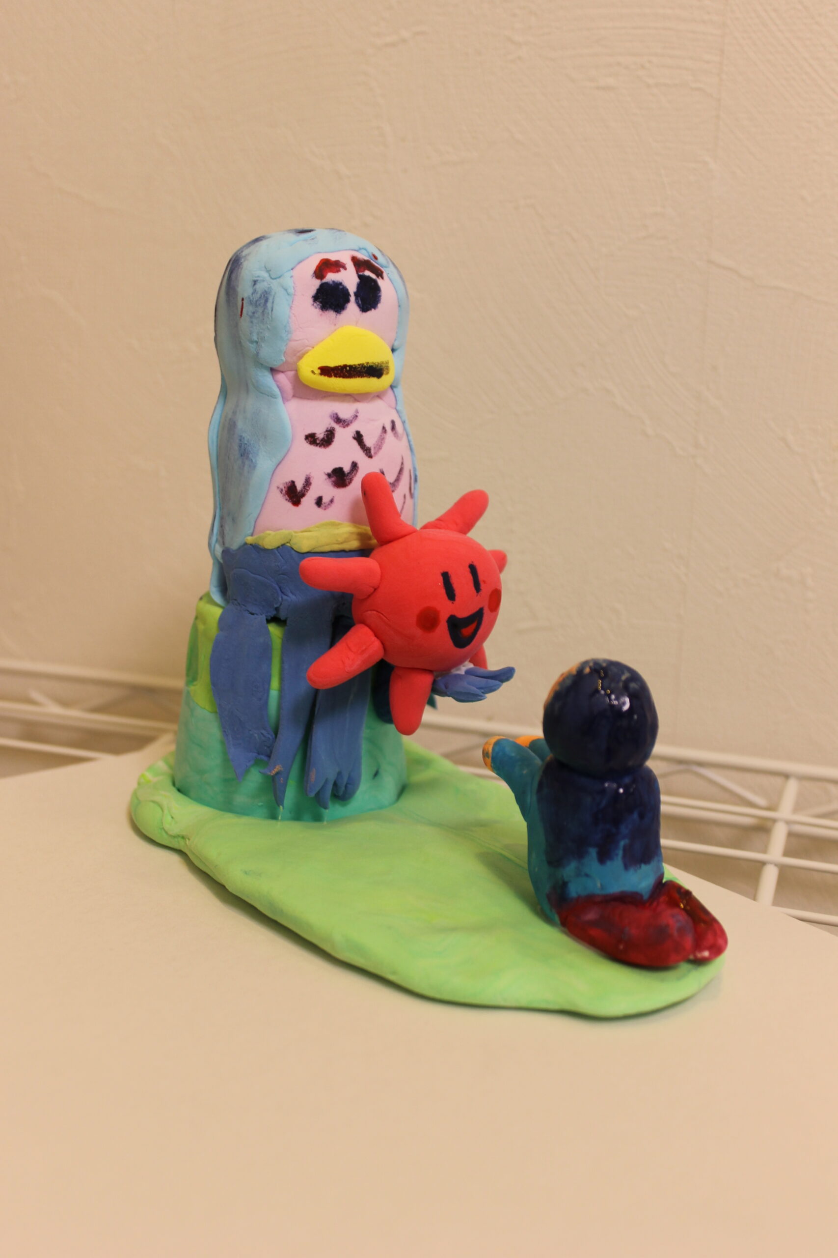 さて、生徒さん達にはコロナウィルスを吹き飛ばすような元気で明るい立体造形を、紙粘土を使って制作していただきました。色のついていない紙粘土だったので、生徒さん達は粘土に色々な絵の具を練り込み、思い思いの色粘土を黙々と造っていらっしゃいました。色粘土が机の上に沢山並んでいる時には一体何ができるのか全く想像もつきませんでしたが、創造力あふれる作品が完成したので本当に明るく元気な気持ちになりました!