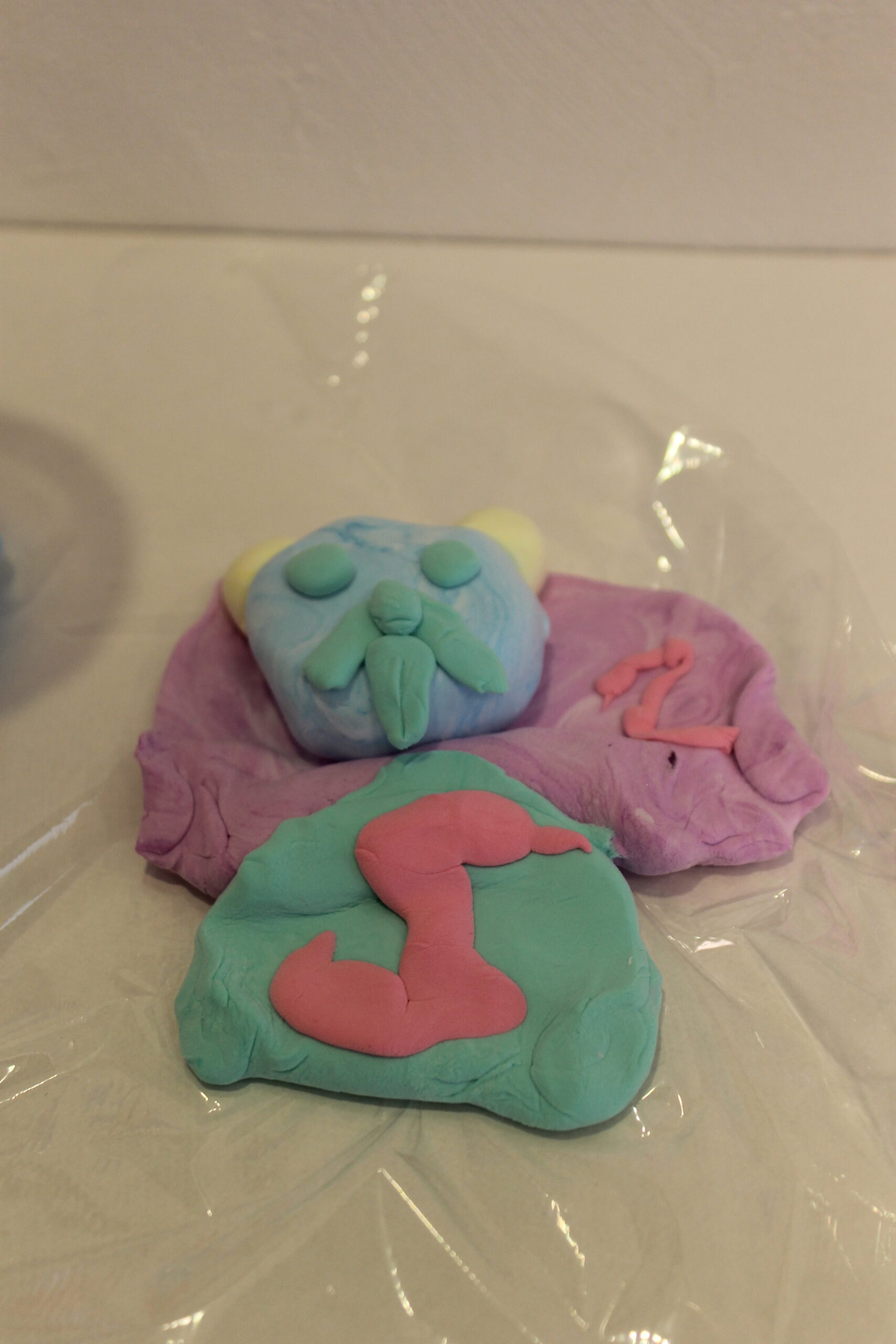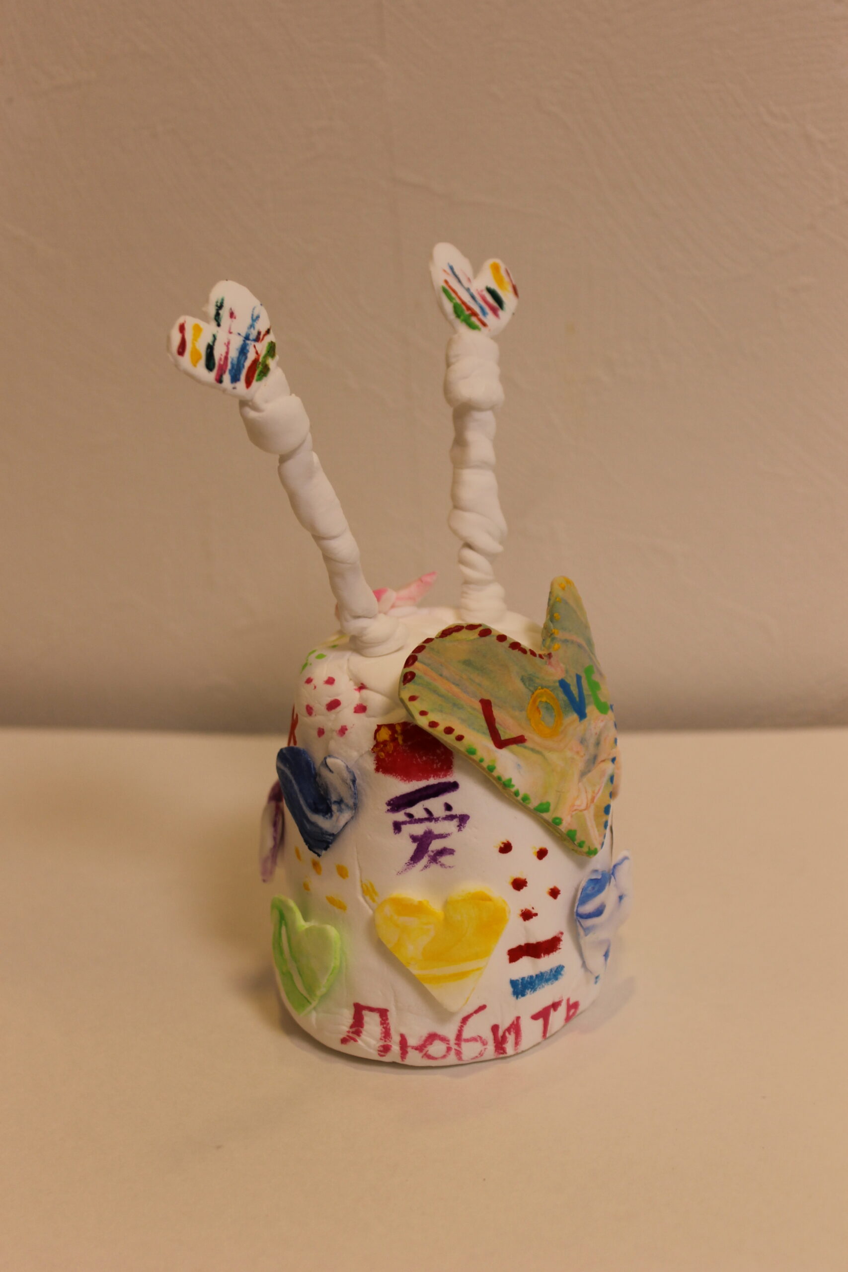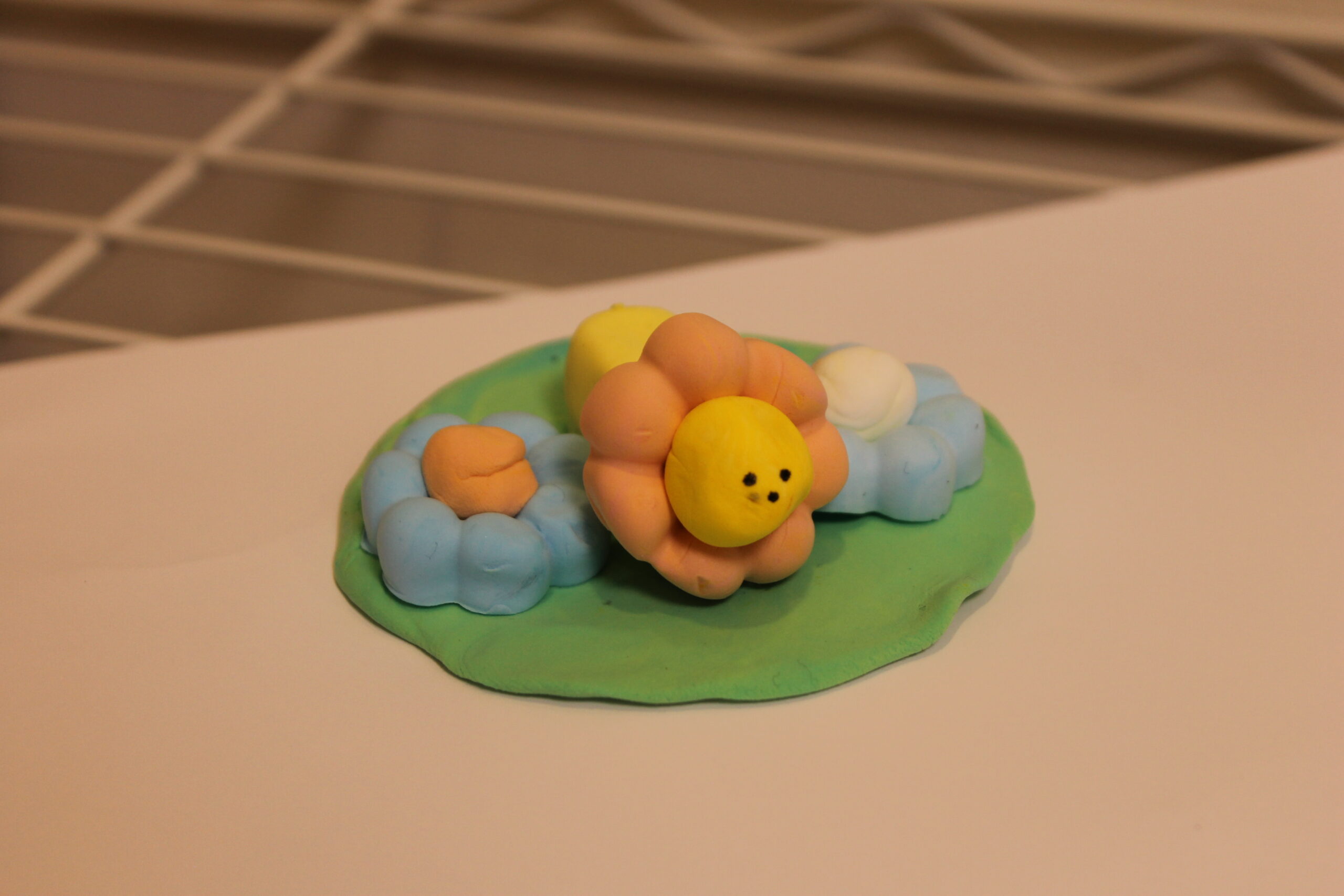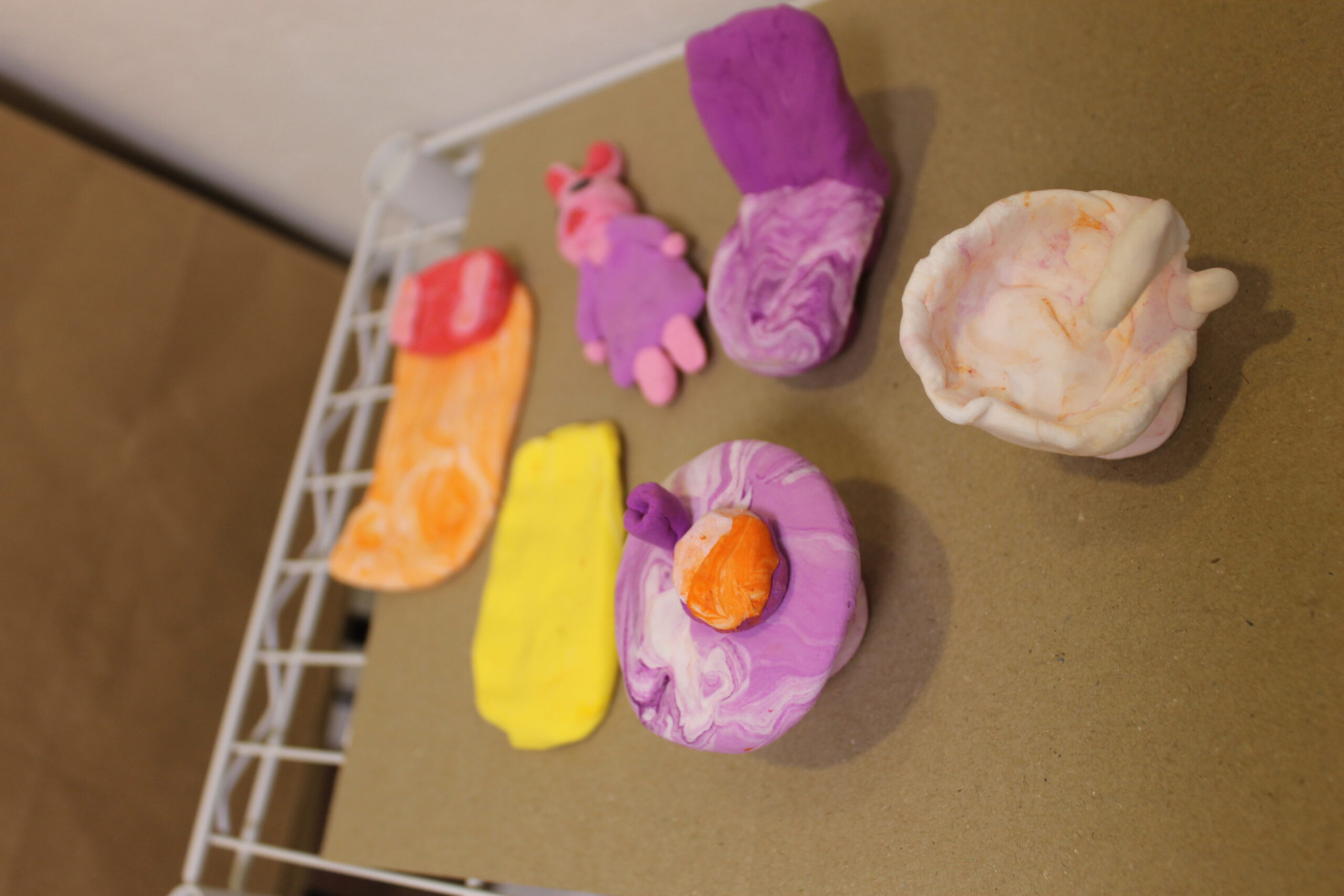 さて、生徒さん達にはコロナウィルスを吹き飛ばすような元気で明るい立体造形を、紙粘土を使って制作していただきました。色のついていない紙粘土だったので、生徒さん達は粘土に色々な絵の具を練り込み、思い思いの色粘土を黙々と造っていらっしゃいました。色粘土が机の上に沢山並んでいる時には一体何ができるのか全く想像もつきませんでしたが、創造力あふれる作品が完成したので本当に明るく元気な気持ちになりました!