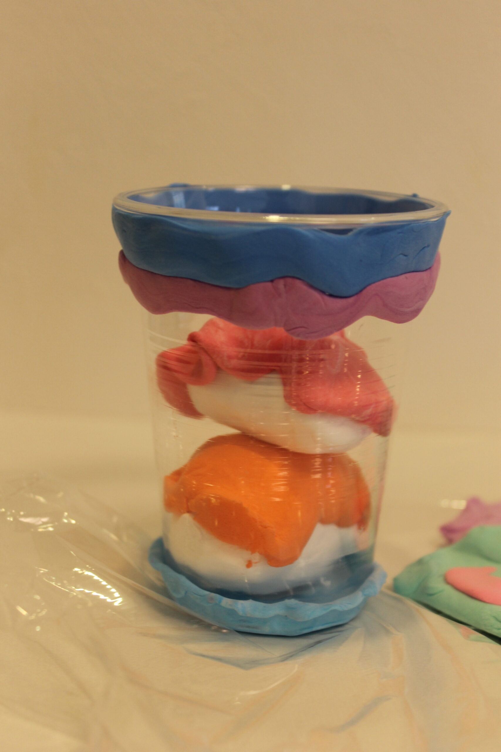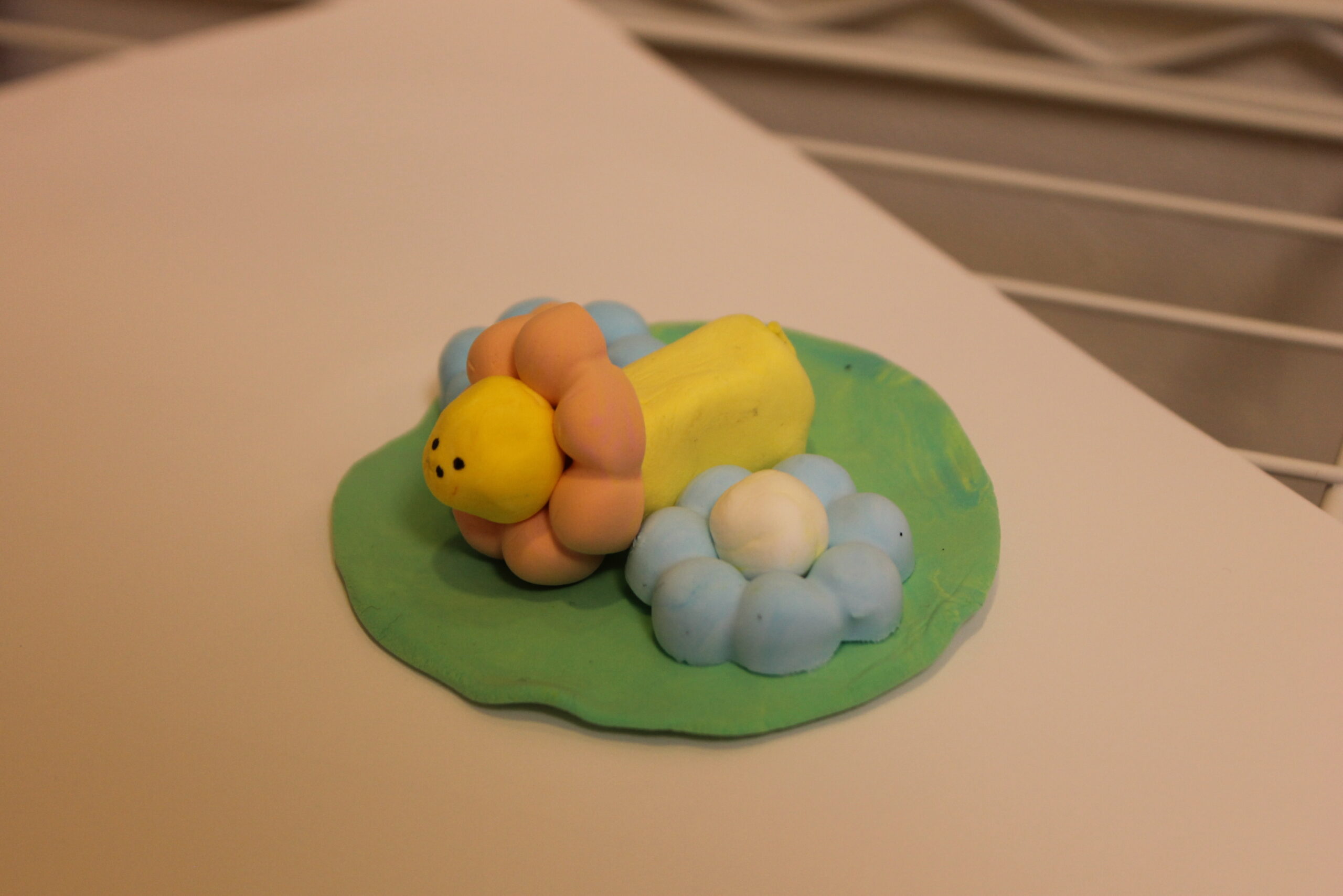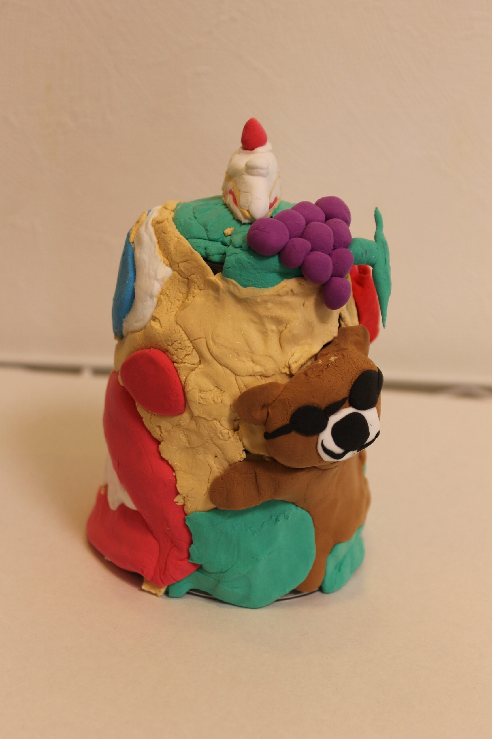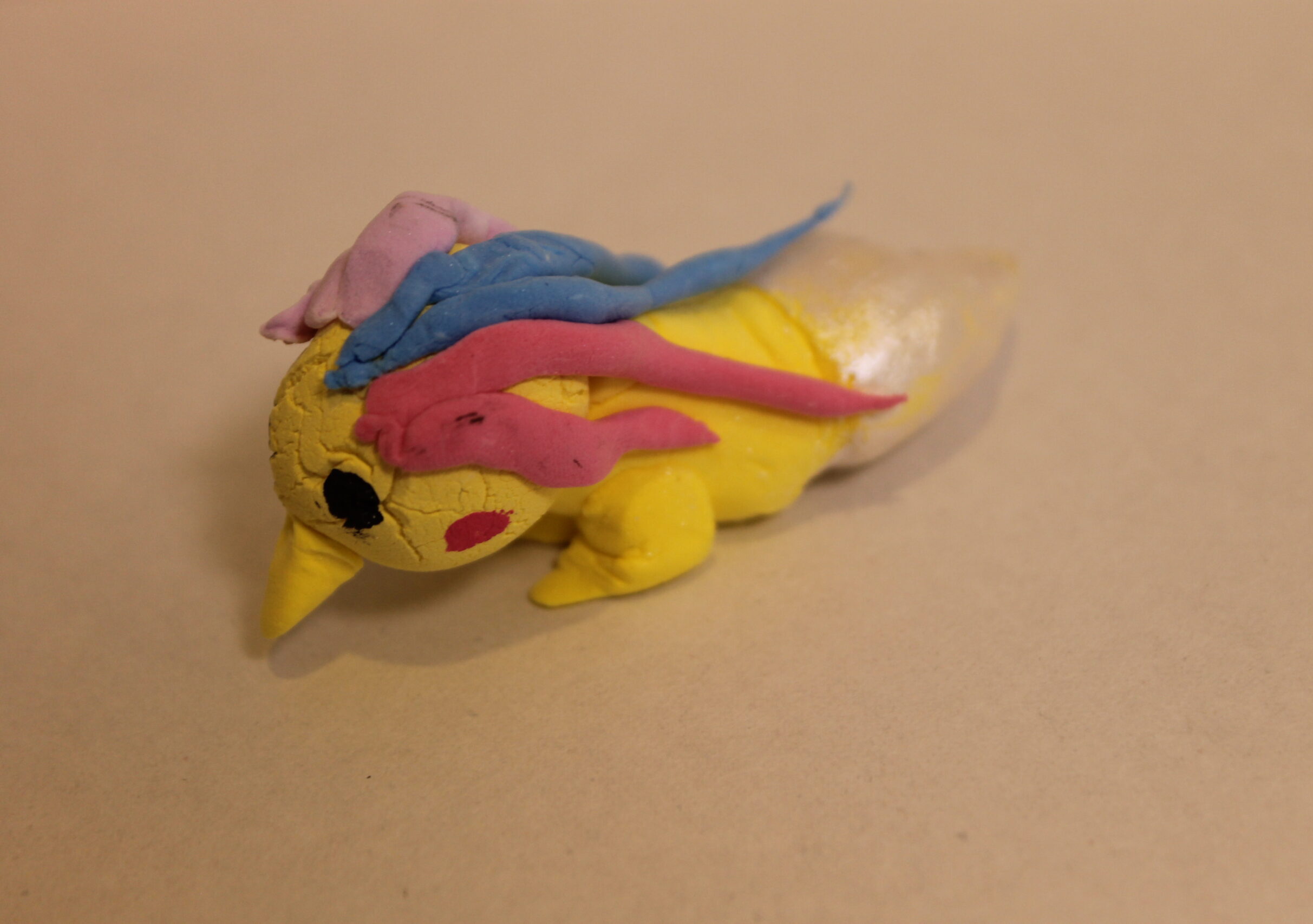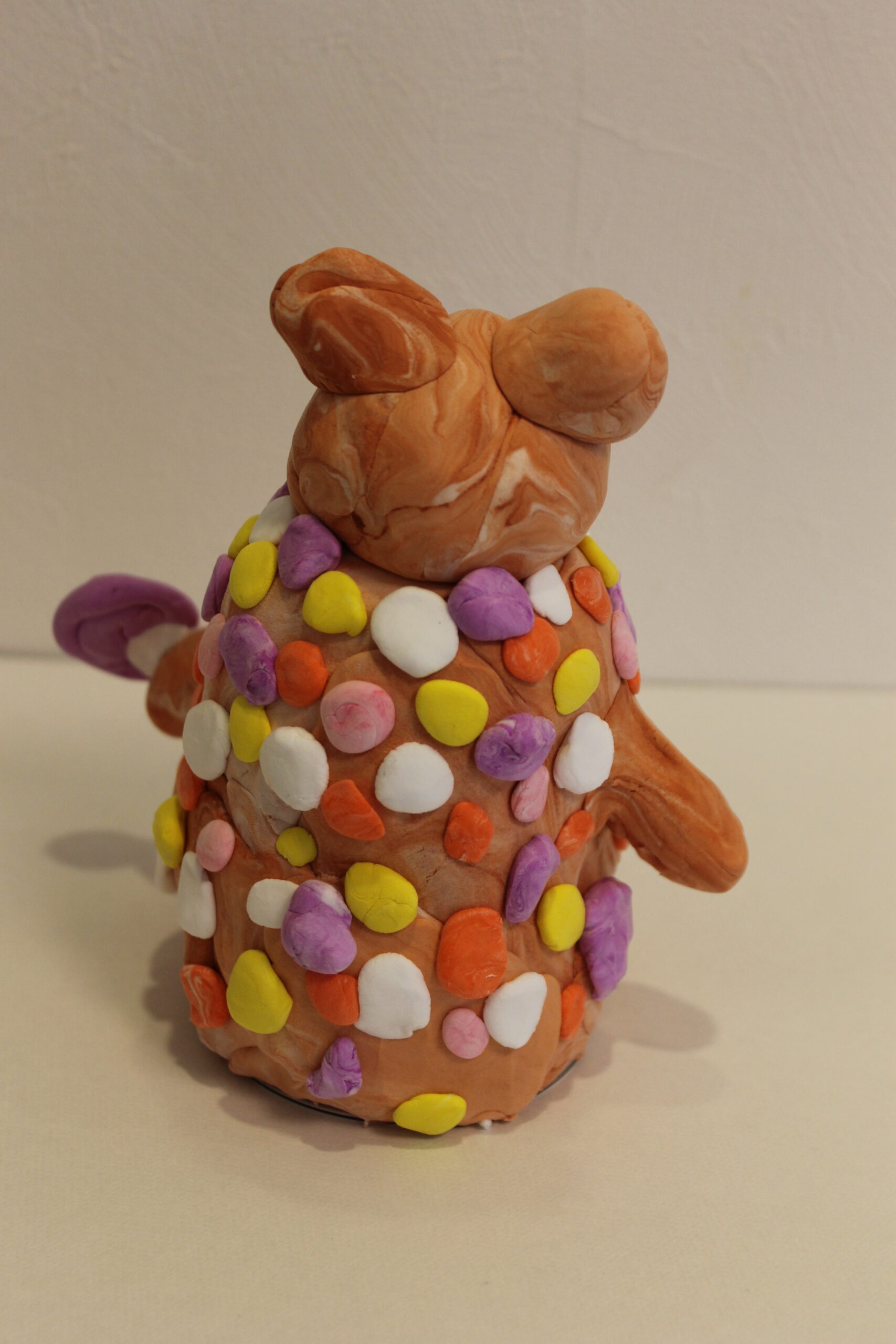 さて、生徒さん達にはコロナウィルスを吹き飛ばすような元気で明るい立体造形を、紙粘土を使って制作していただきました。色のついていない紙粘土だったので、生徒さん達は粘土に色々な絵の具を練り込み、思い思いの色粘土を黙々と造っていらっしゃいました。色粘土が机の上に沢山並んでいる時には一体何ができるのか全く想像もつきませんでしたが、創造力あふれる作品が完成したので本当に明るく元気な気持ちになりました!