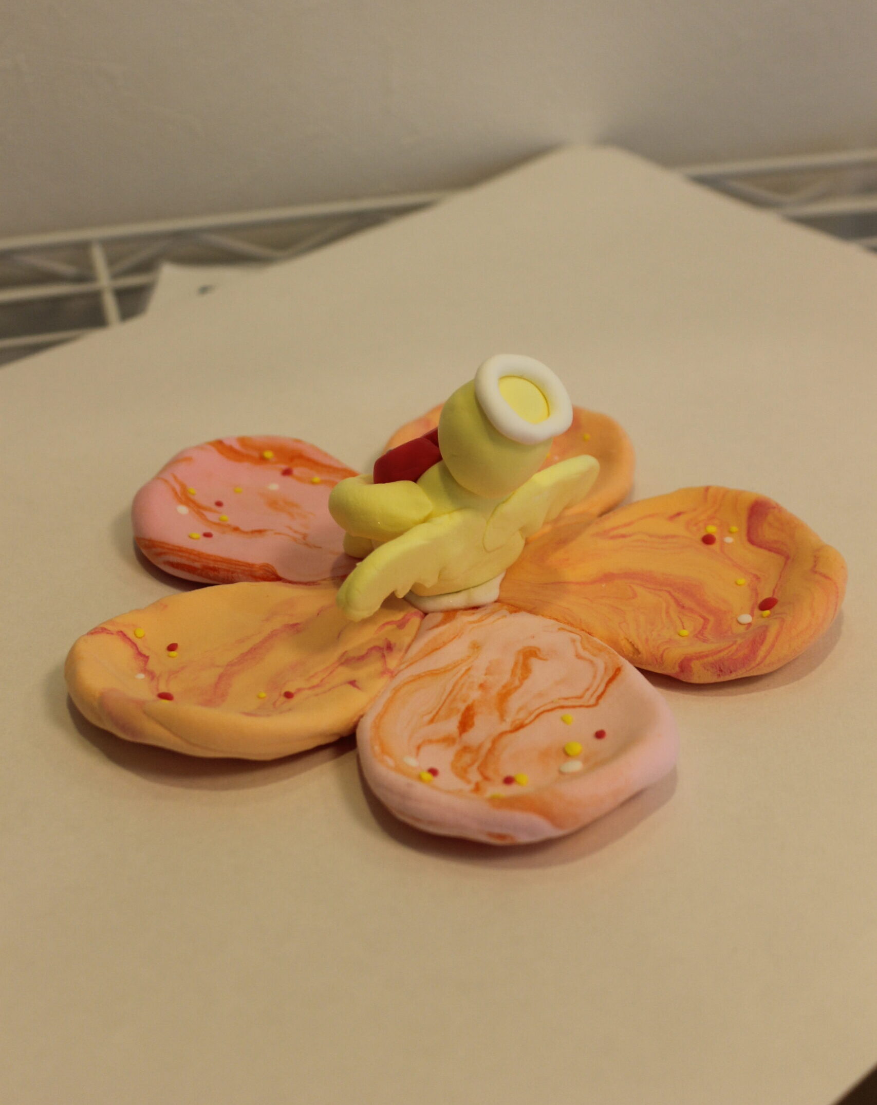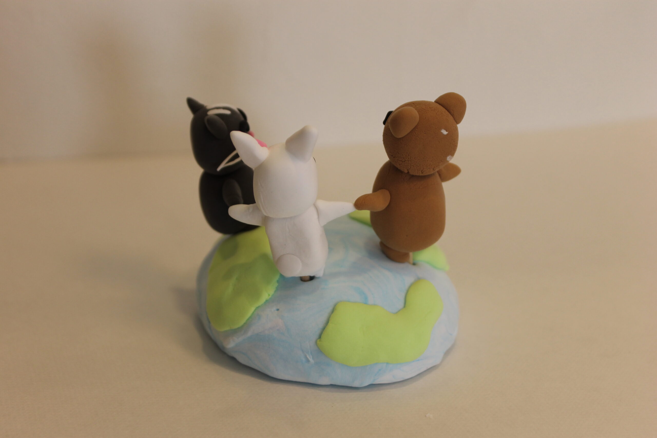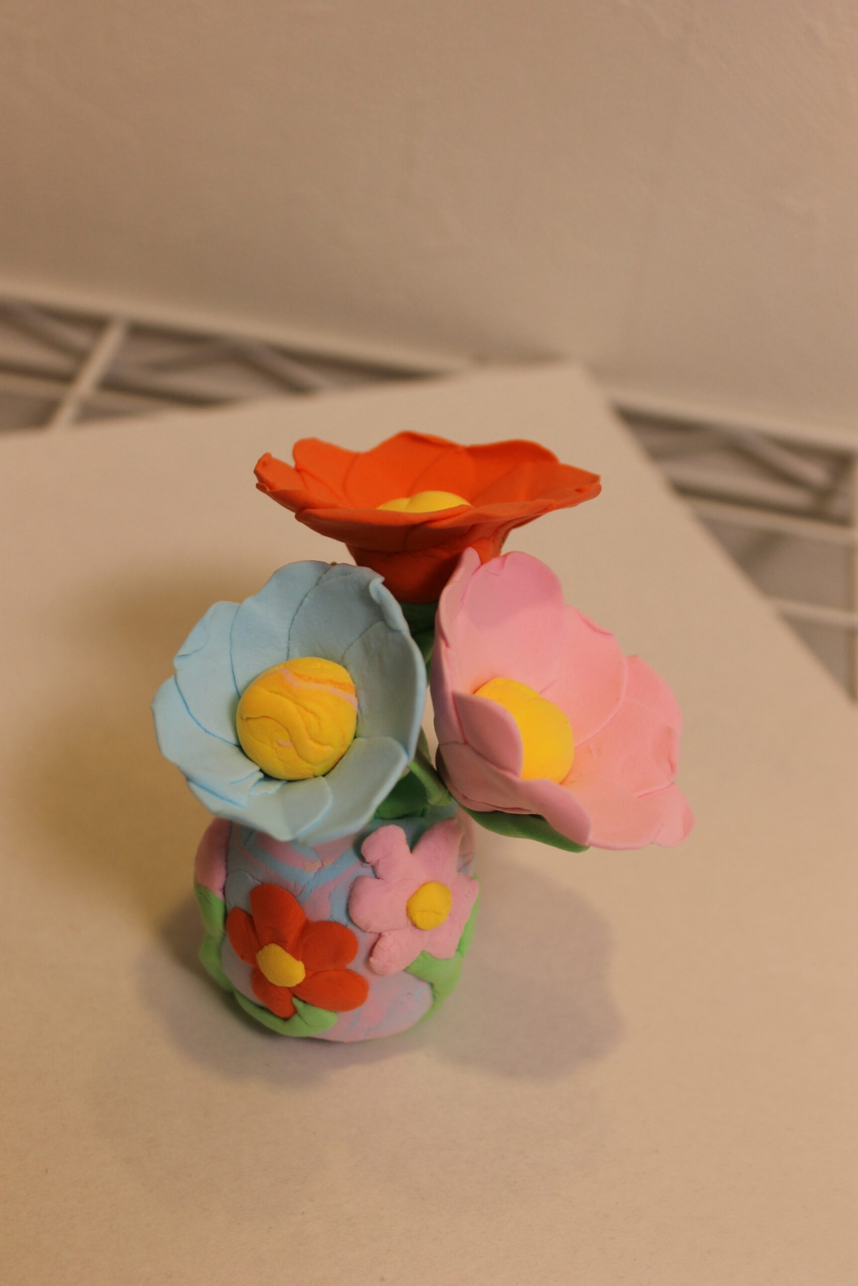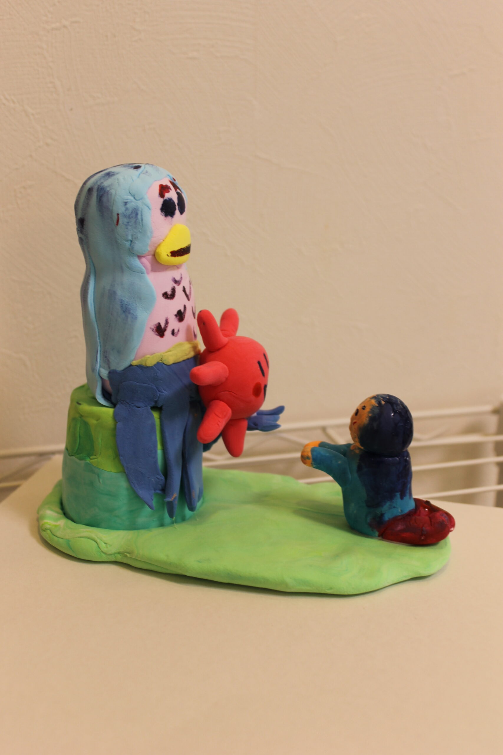 さて、生徒さん達にはコロナウィルスを吹き飛ばすような元気で明るい立体造形を、紙粘土を使って制作していただきました。色のついていない紙粘土だったので、生徒さん達は粘土に色々な絵の具を練り込み、思い思いの色粘土を黙々と造っていらっしゃいました。色粘土が机の上に沢山並んでいる時には一体何ができるのか全く想像もつきませんでしたが、創造力あふれる作品が完成したので本当に明るく元気な気持ちになりました!