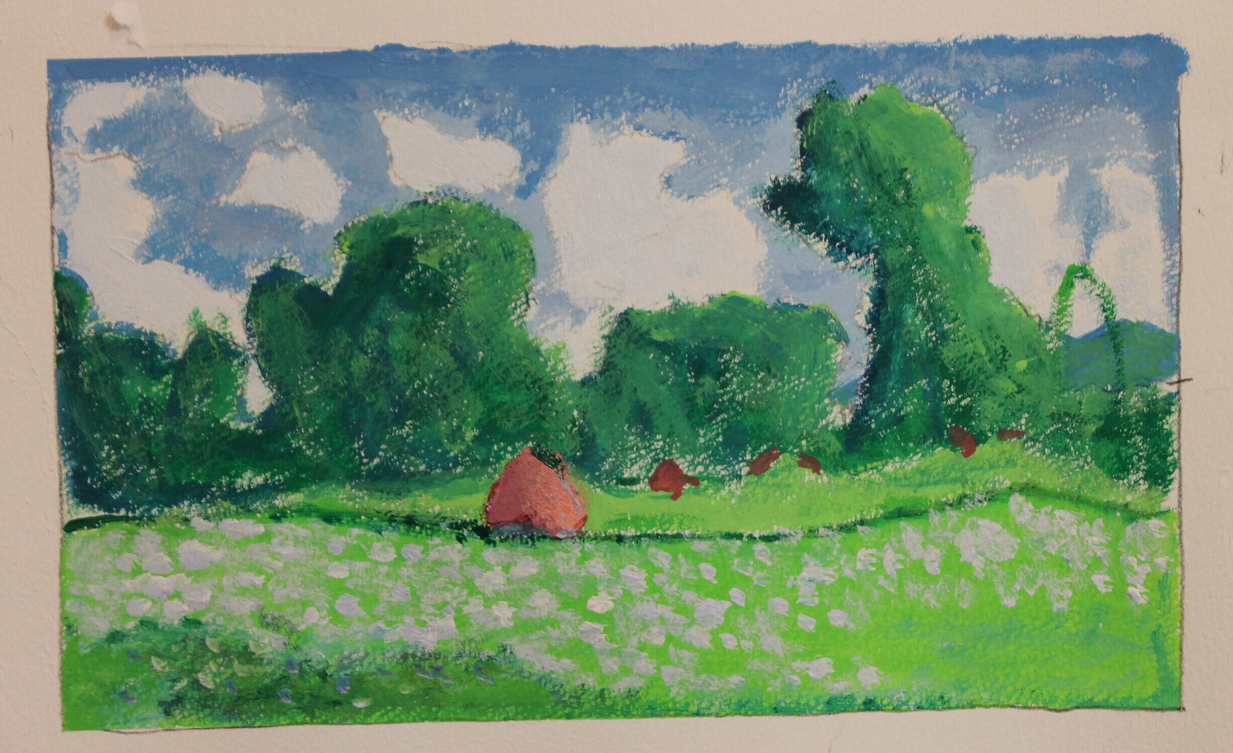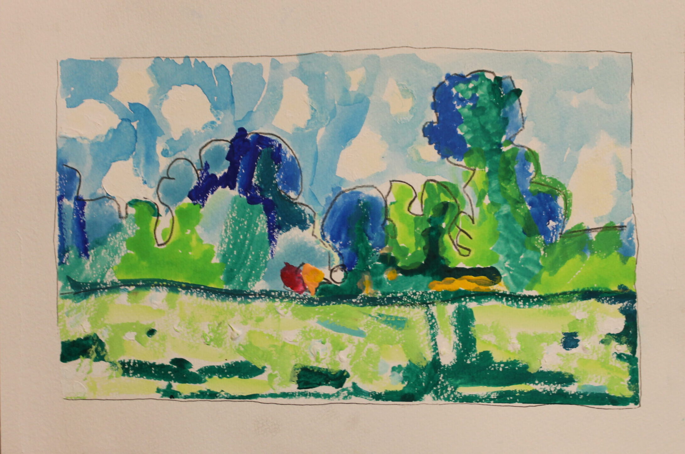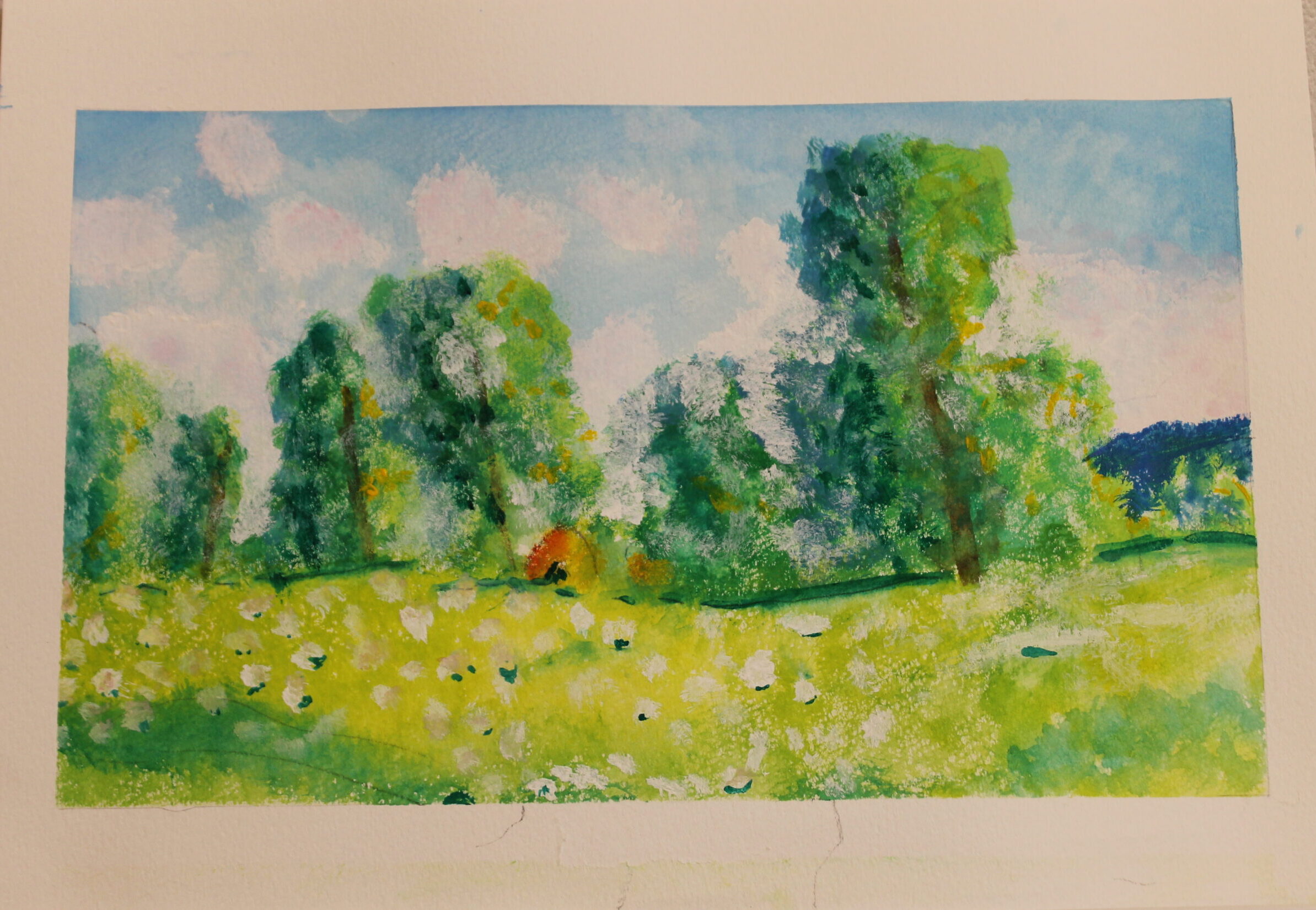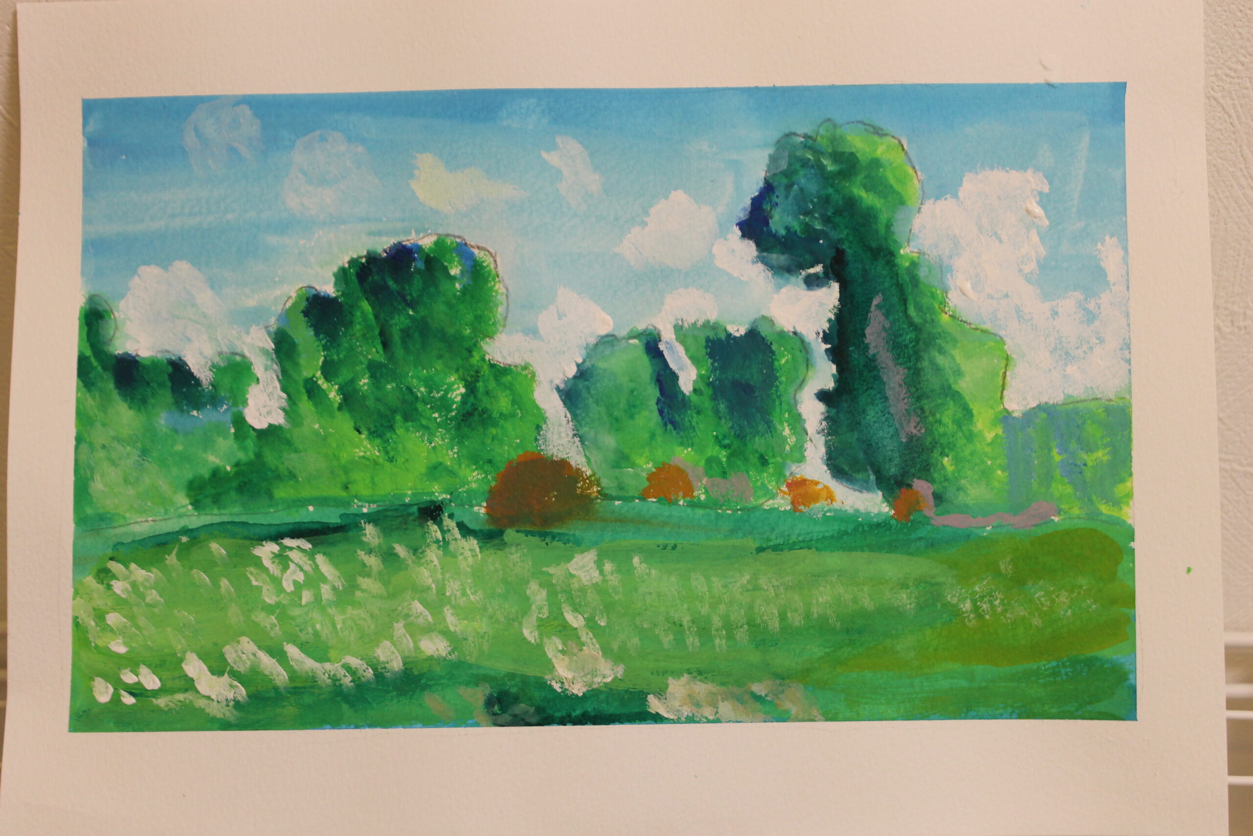 生徒さん達は、何とかモネの作品に似せようと混色したり、筆使いを工夫したり、時にはため息をついたりしながら頑張って模写を仕上げてくださいました。