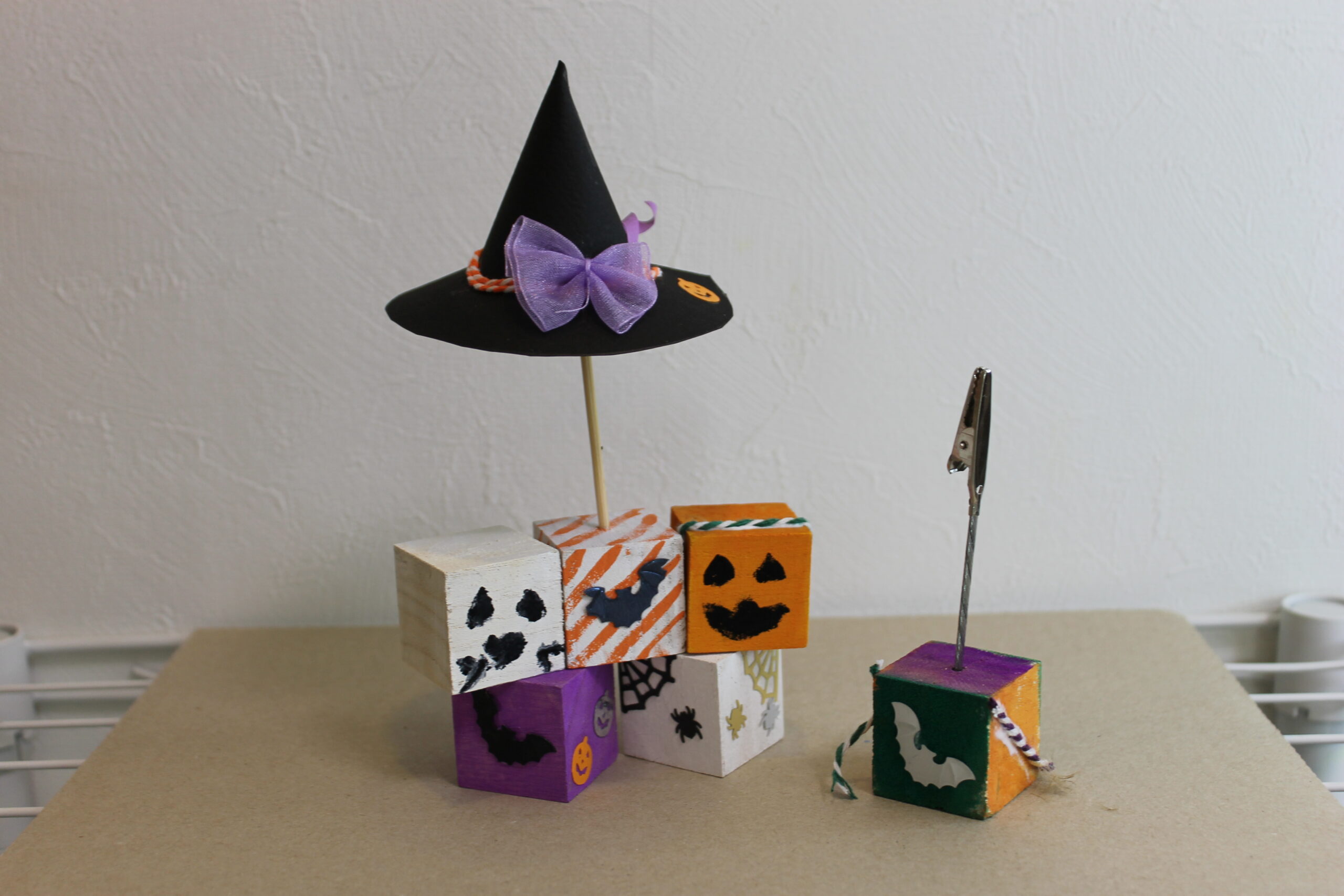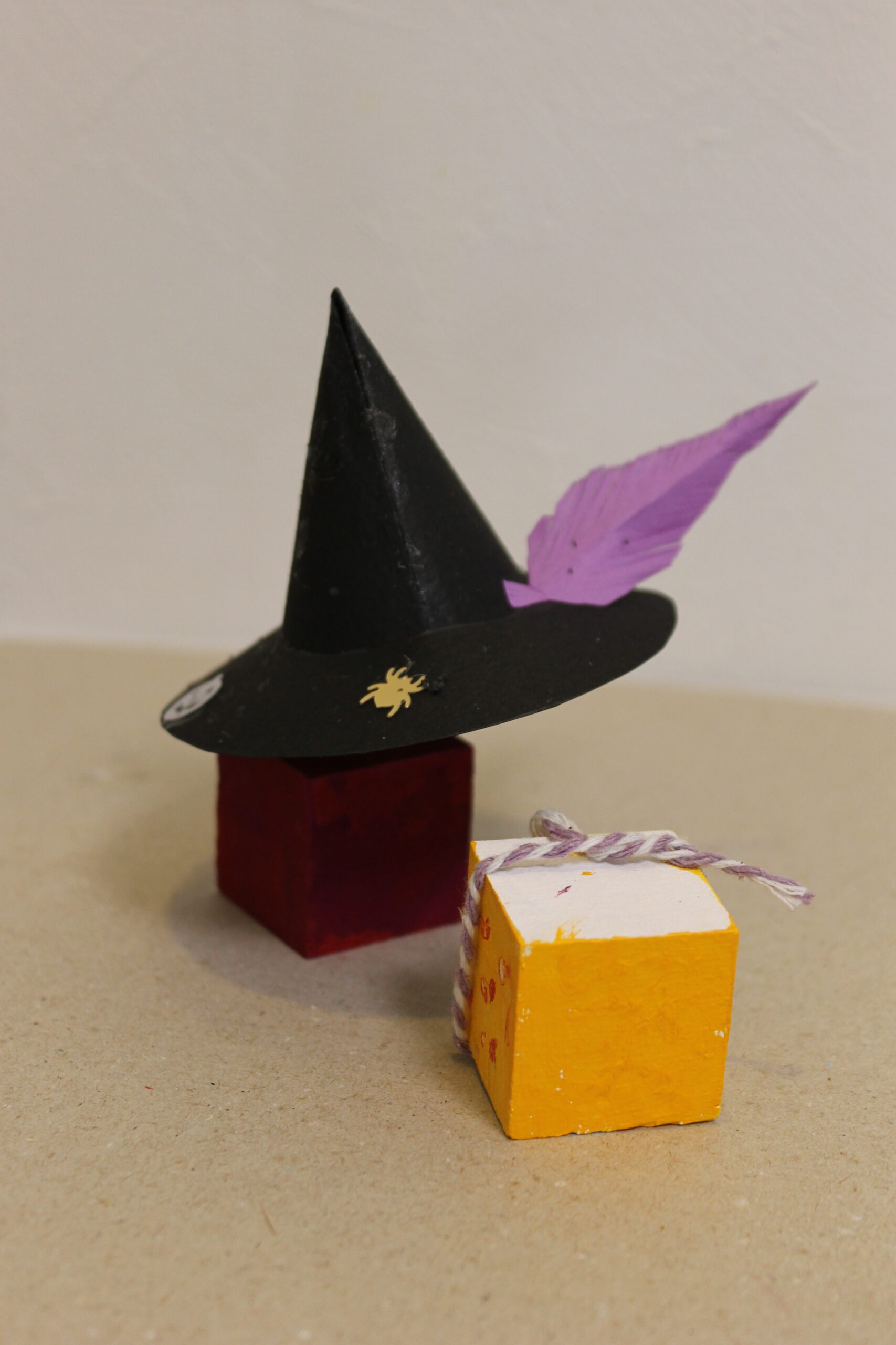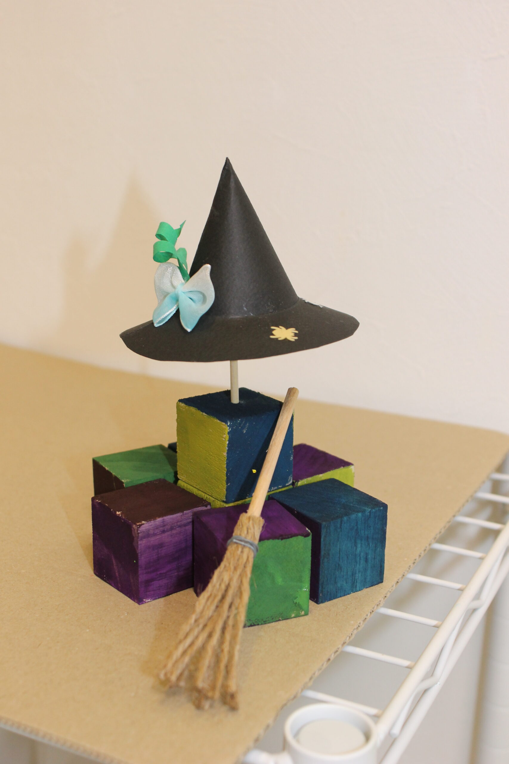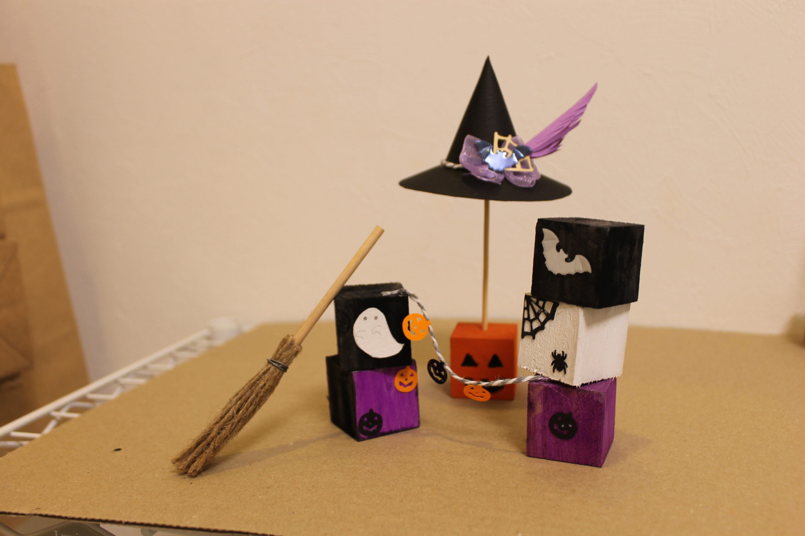 今回の工作では、ハロウィンの帽子と箒の作り方をお伝えし、その帽子と箒をディスプレイデザインしていただくことにしました。