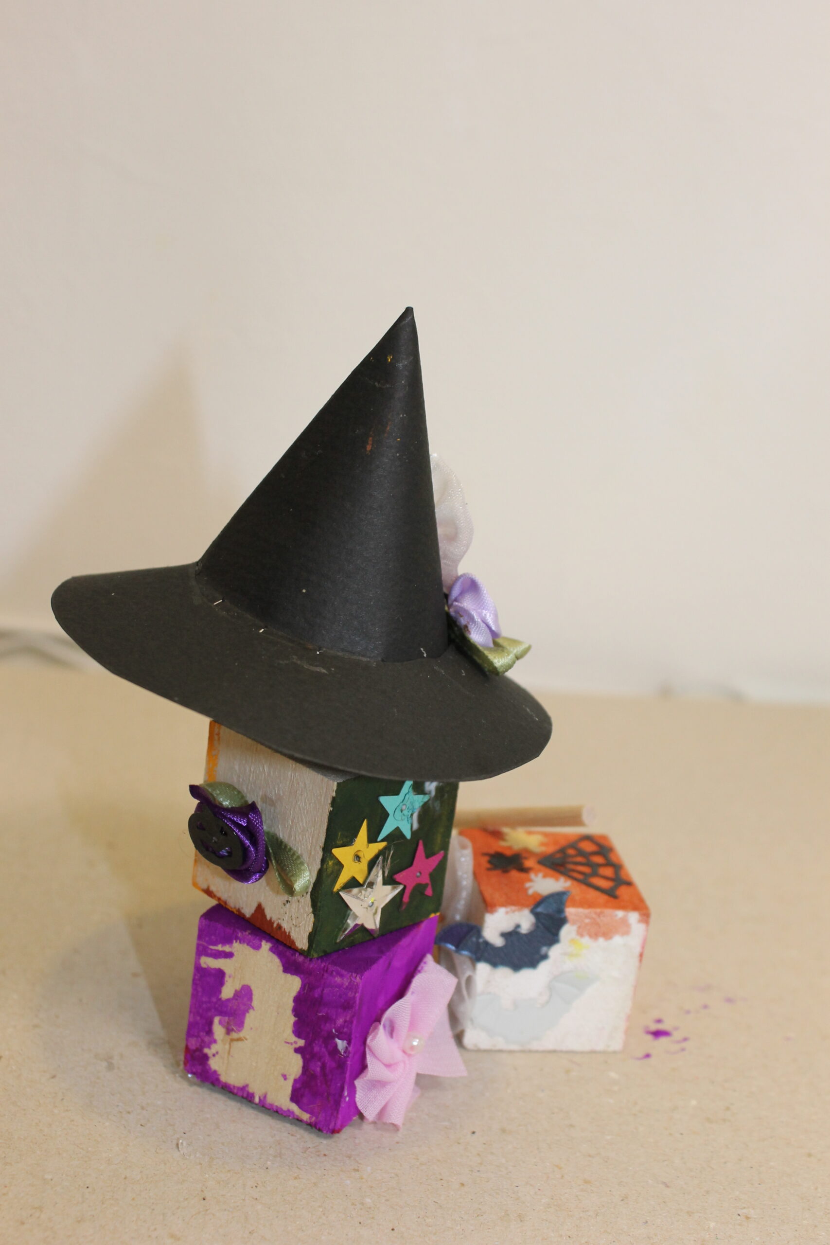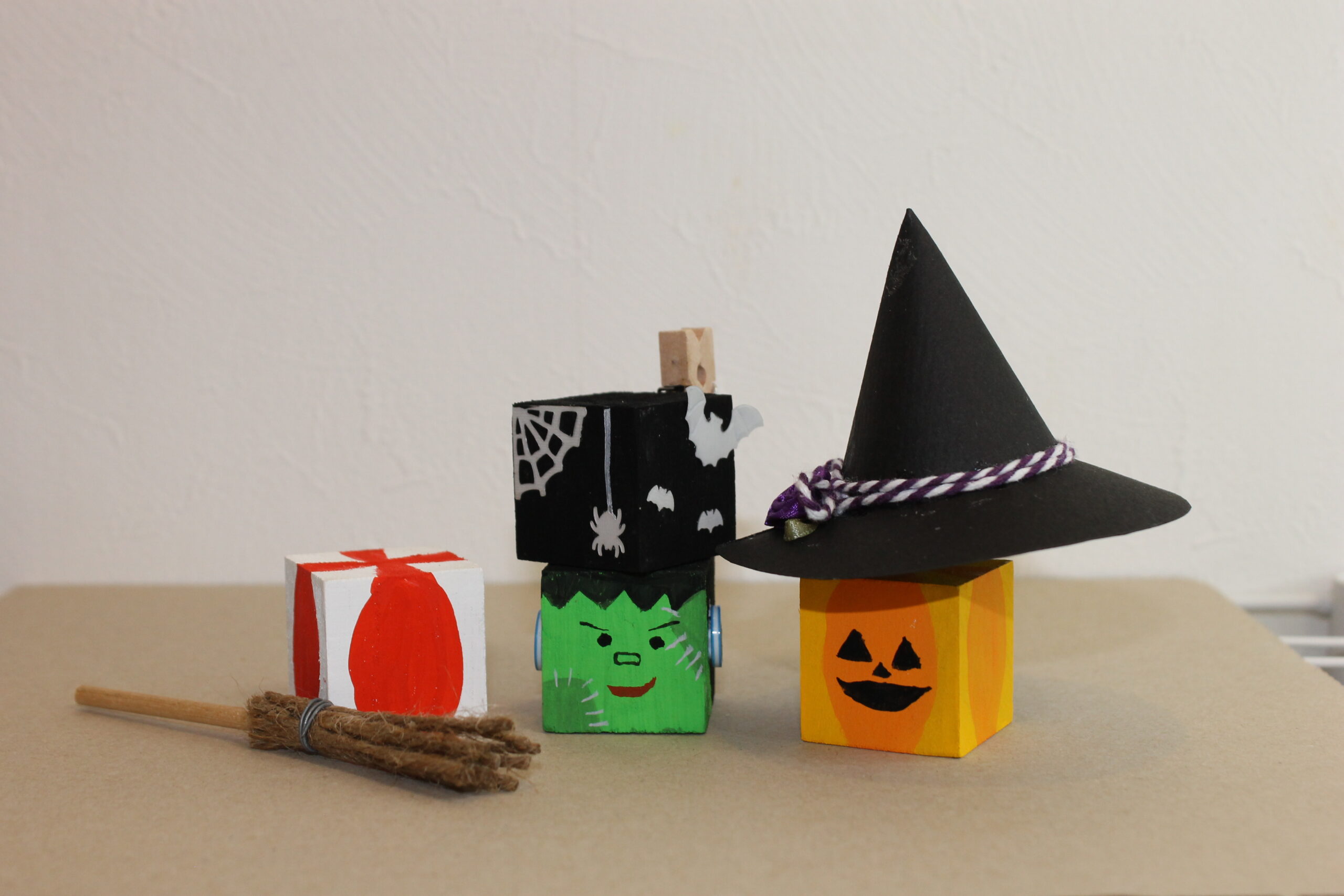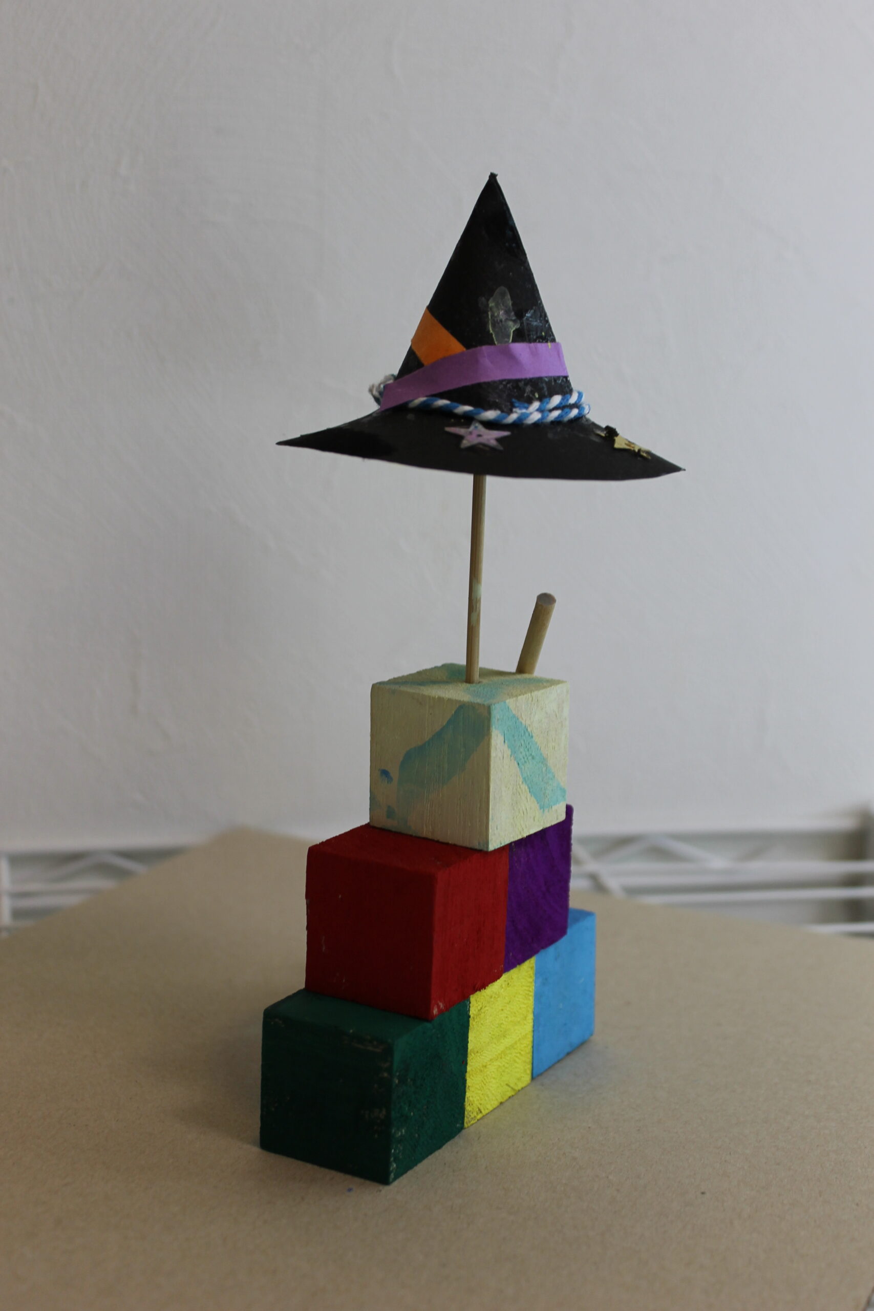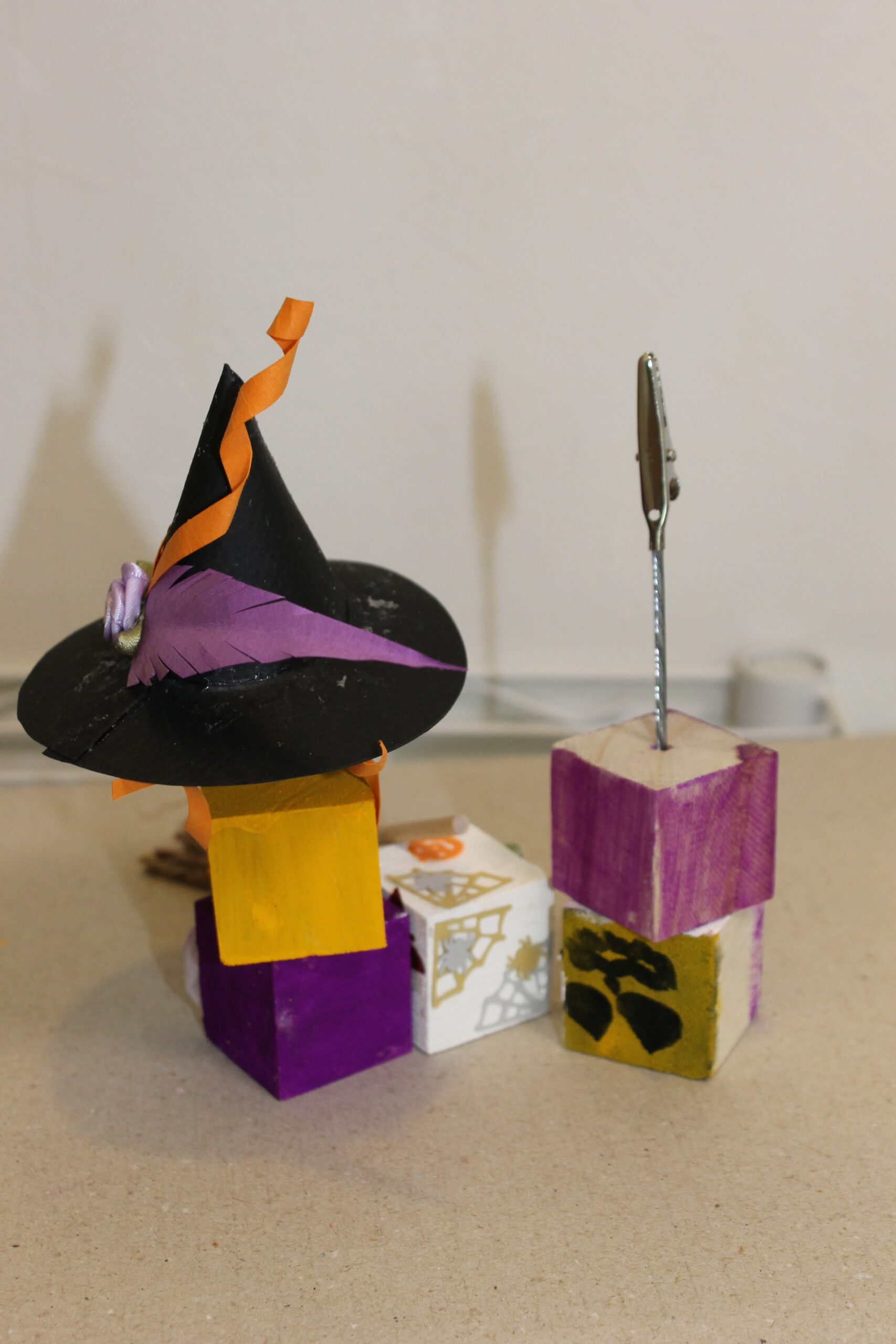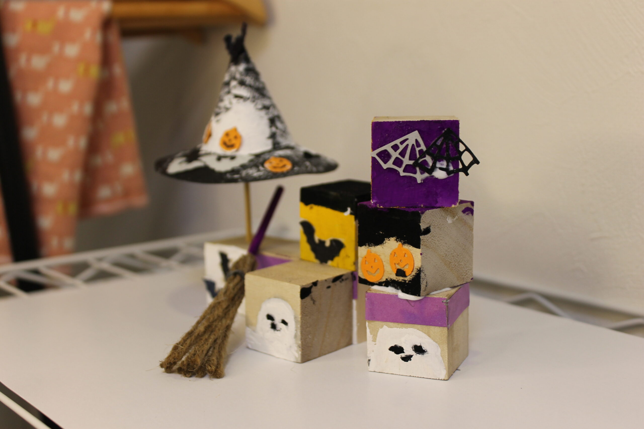 今回の工作では、ハロウィンの帽子と箒の作り方をお伝えし、その帽子と箒をディスプレイデザインしていただくことにしました。