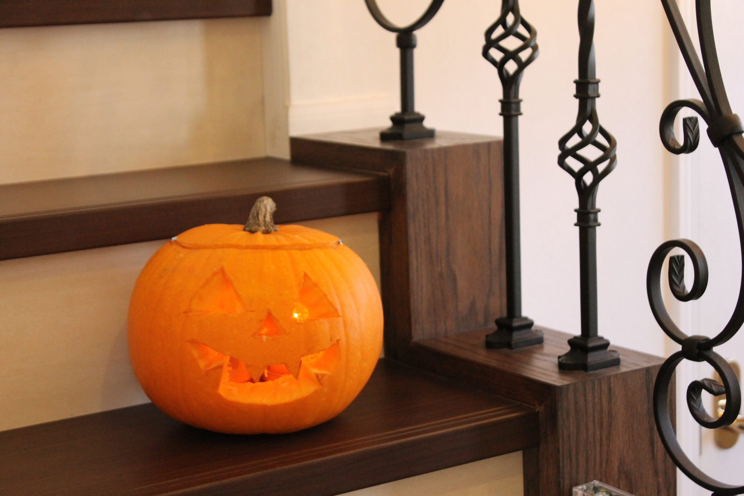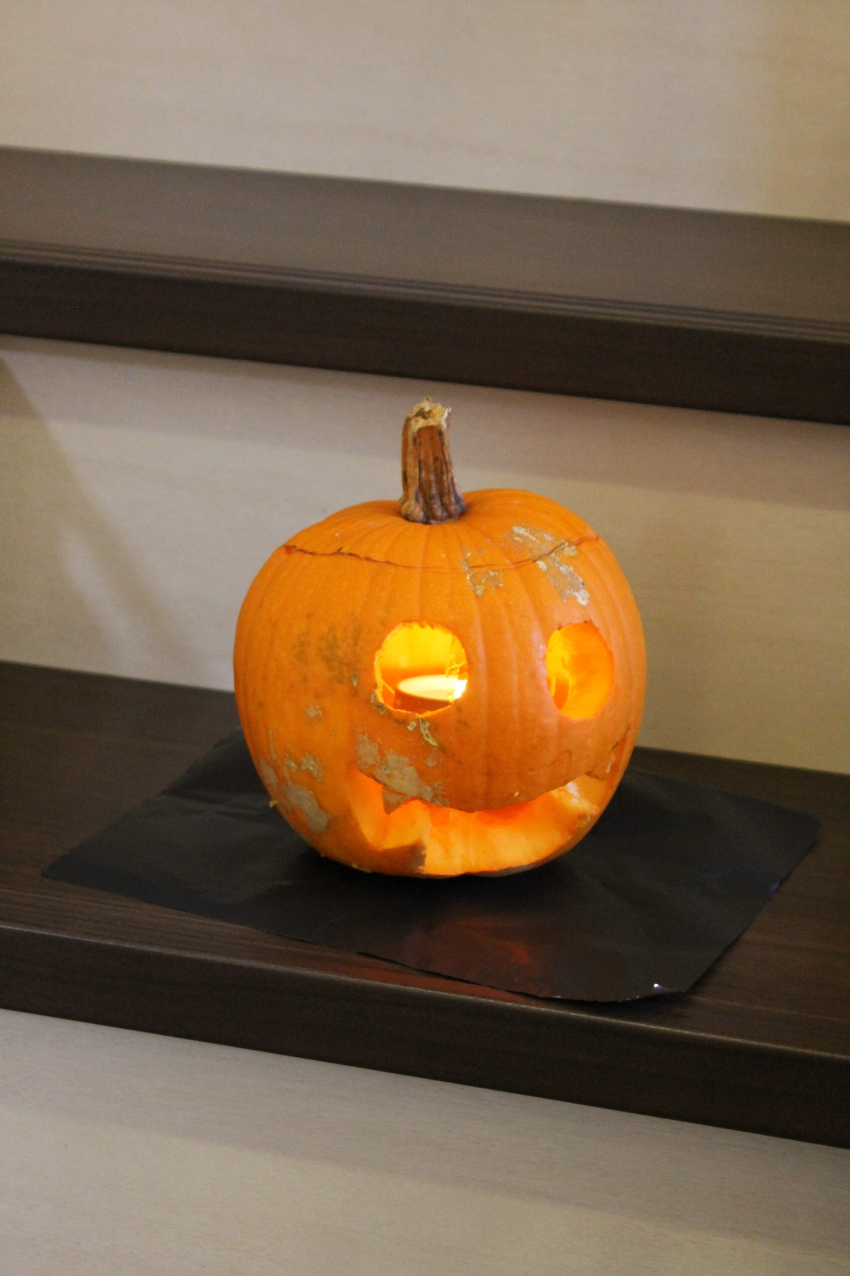 ジャックオーランタンが無事完成しロウソクに火を灯してみると、生徒さんたちの歓喜の声がにわかに上がりました。コロナウィルスが流行し始めてから生徒さんそれぞれの席を離して制作していたので、皆さん学校も違うこともあり、レッスン中に誰も話をしないことが多くなりました。ジャックオーランタンを一緒に作っていったことで、少しだけ距離が縮まったのではないでしょうか。共同制作もいいですね!