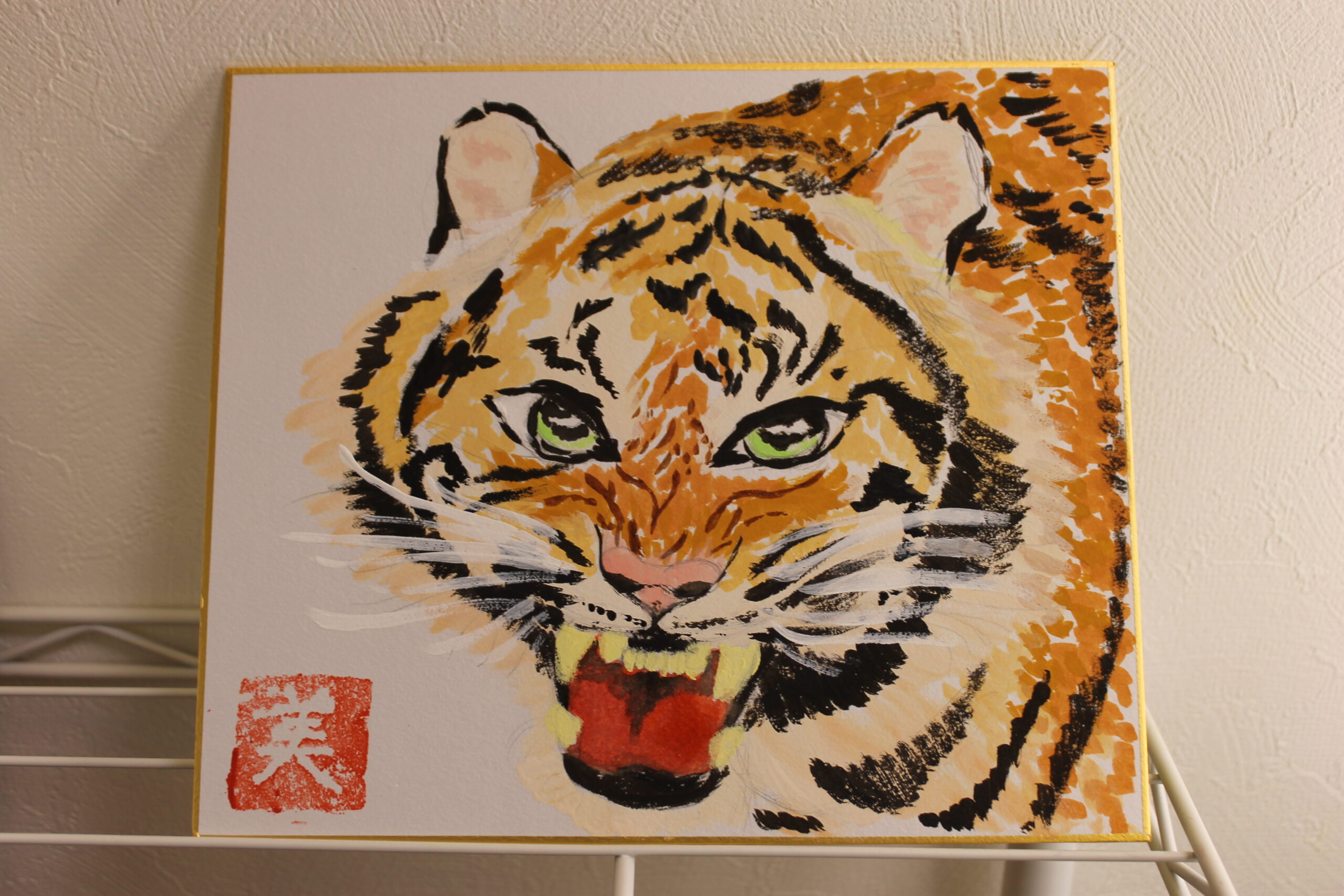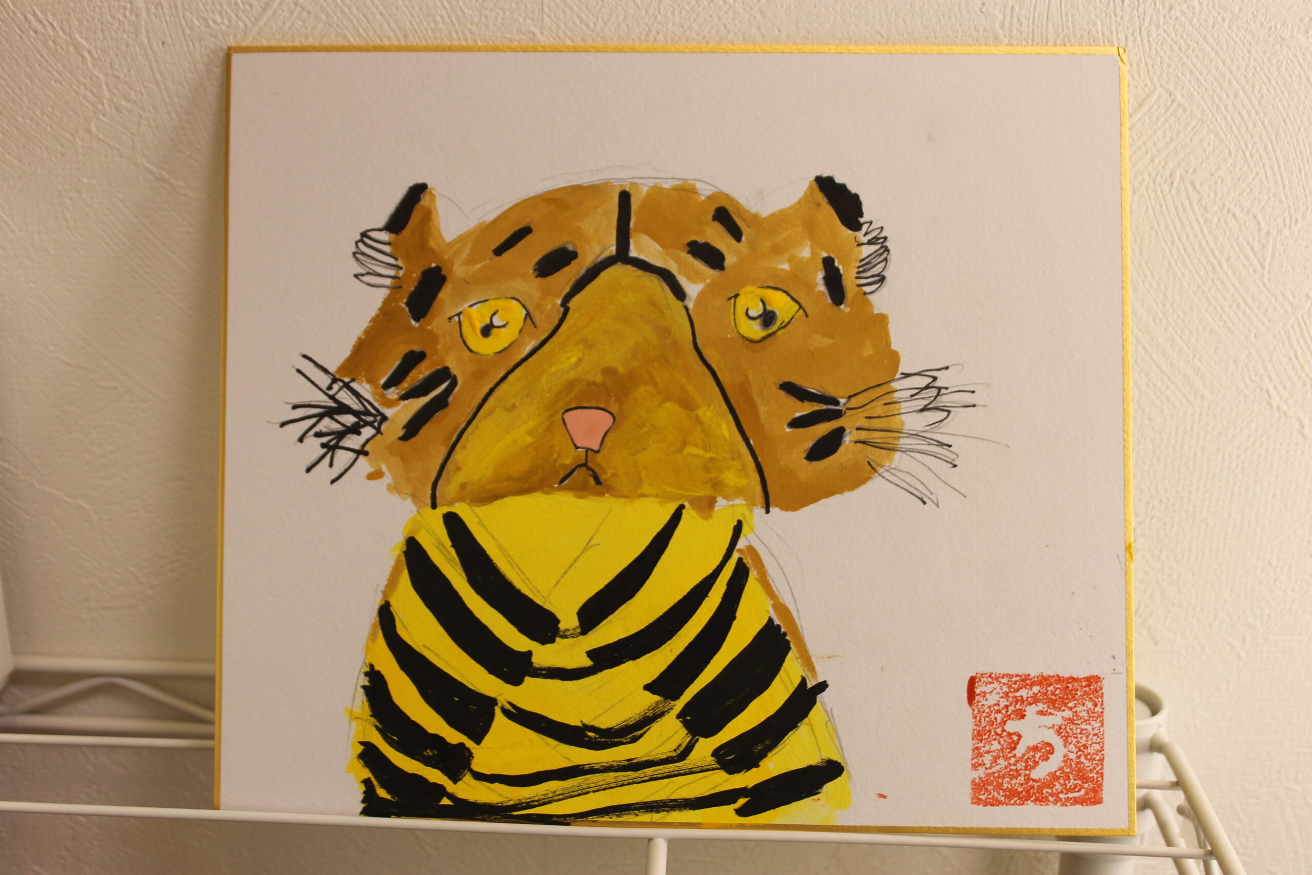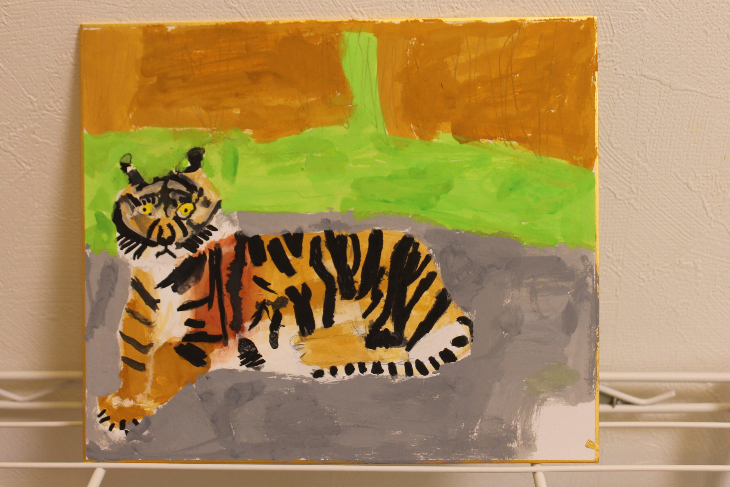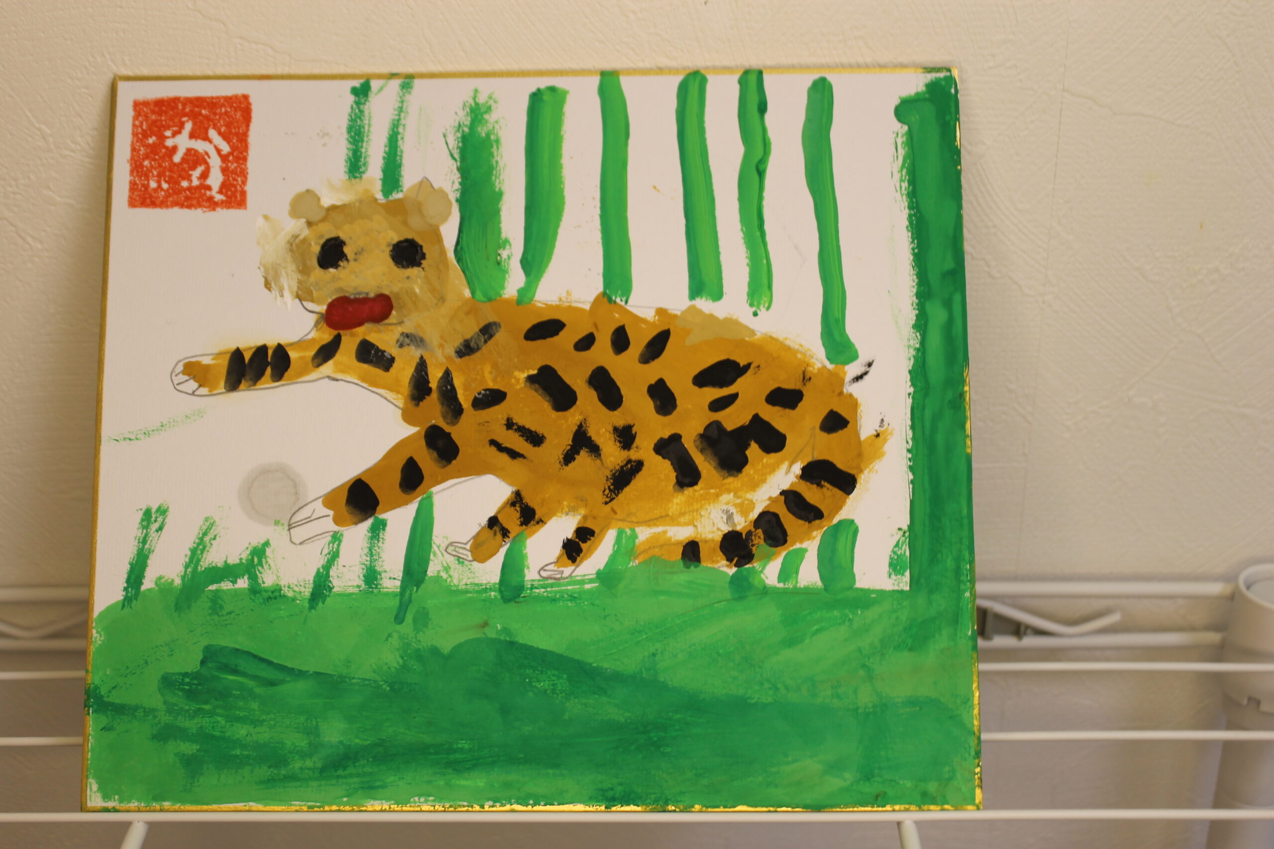 お子さん達にとって虎の絵は、黒い模様があることで描くことが難しかったようですが、可愛らしい虎、迫力のある虎、背景もそれぞれのオリジナリティーある絵が完成しました。来年1年間ご自宅に飾って楽しんでいただけたらと思います。