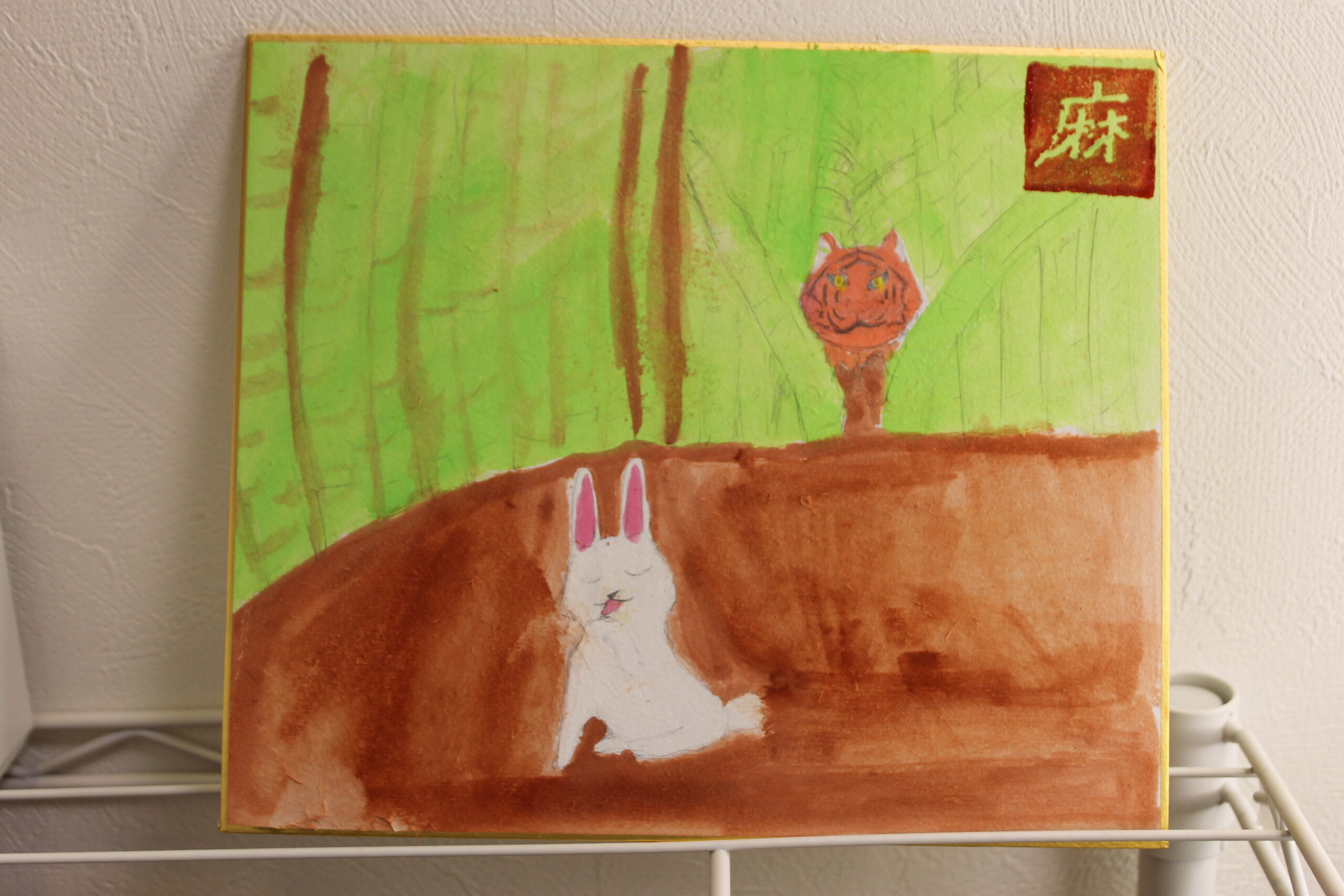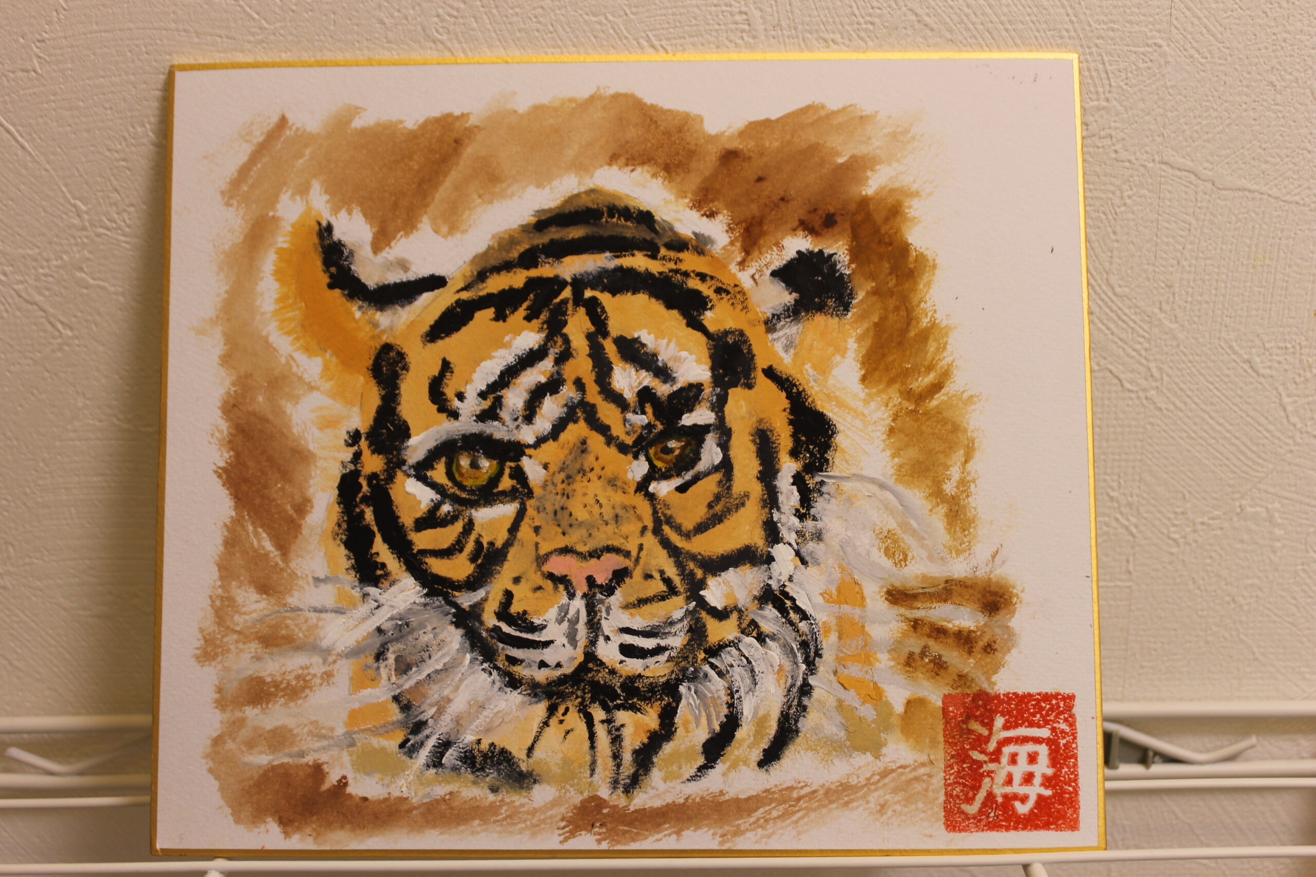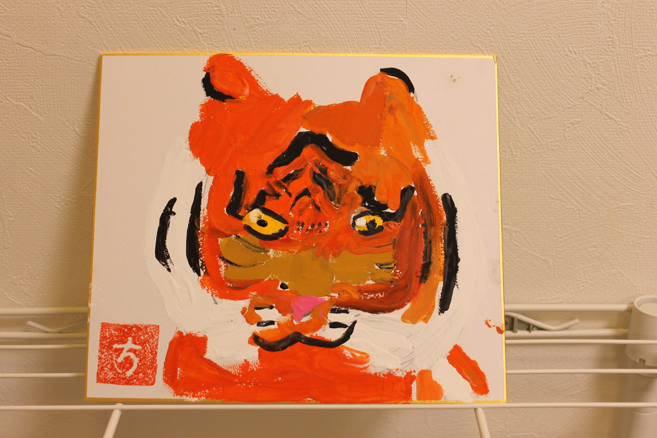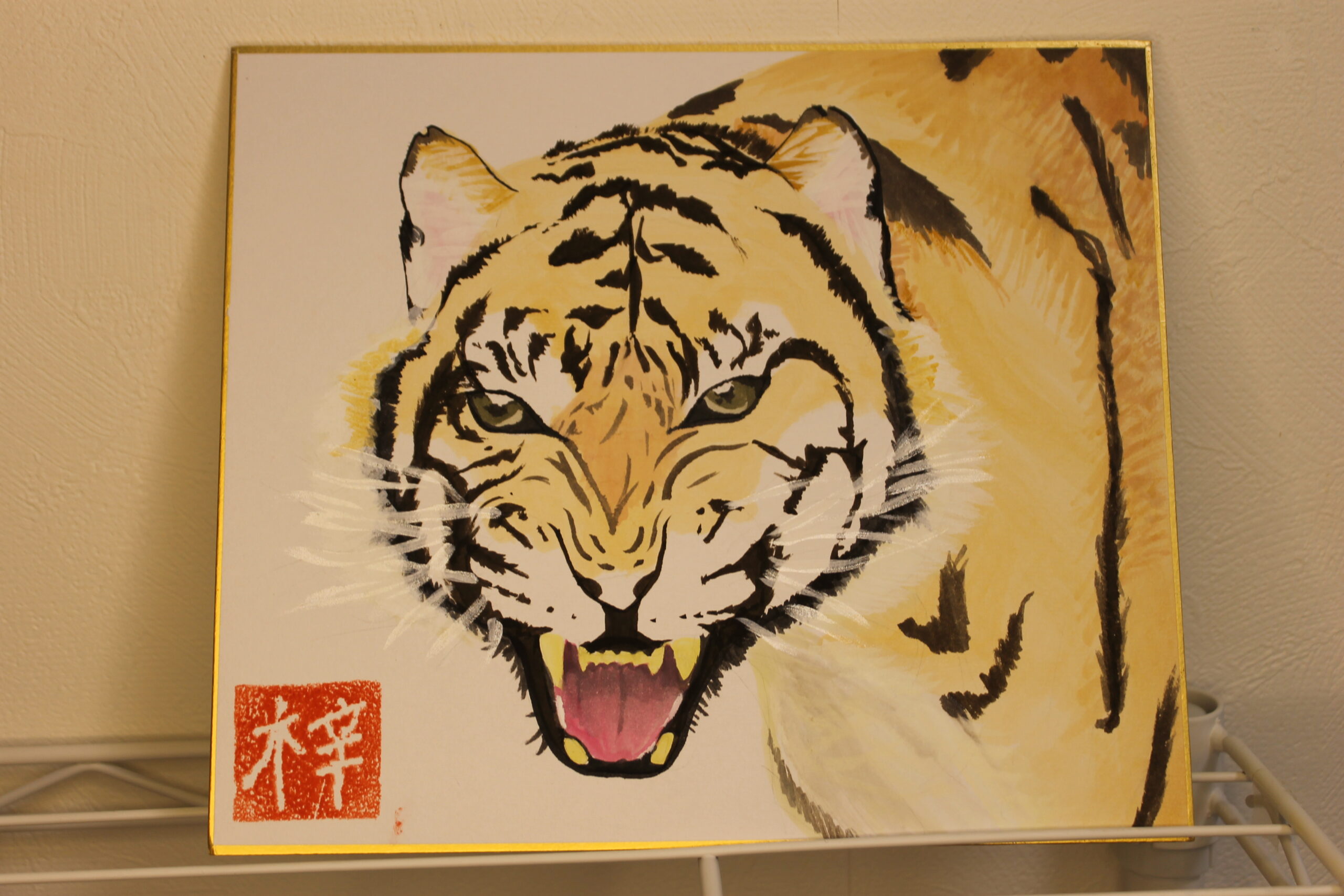 お子さん達にとって虎の絵は、黒い模様があることで描くことが難しかったようですが、可愛らしい虎、迫力のある虎、背景もそれぞれのオリジナリティーある絵が完成しました。来年1年間ご自宅に飾って楽しんでいただけたらと思います。