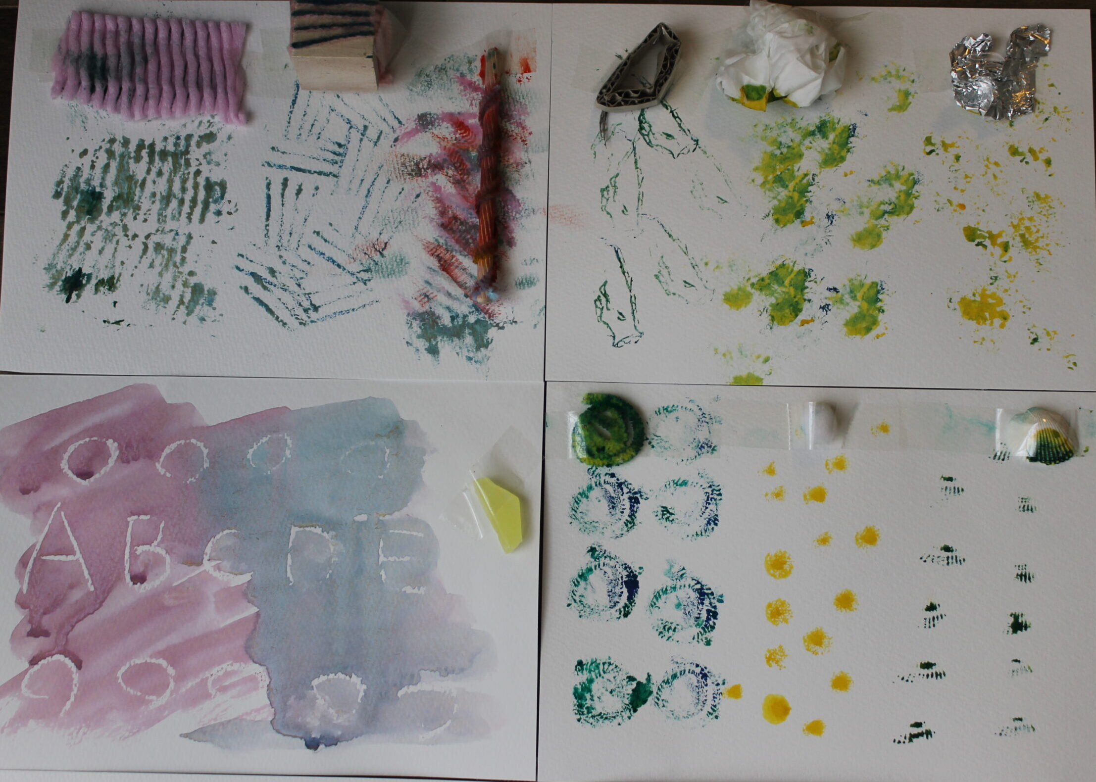 技法を使った絵や工作をする場合は技法の練習にじっくり時間をかけられないため、今回はじっくりと技法に向き合うために、技法の実験だけを行うことにしました。