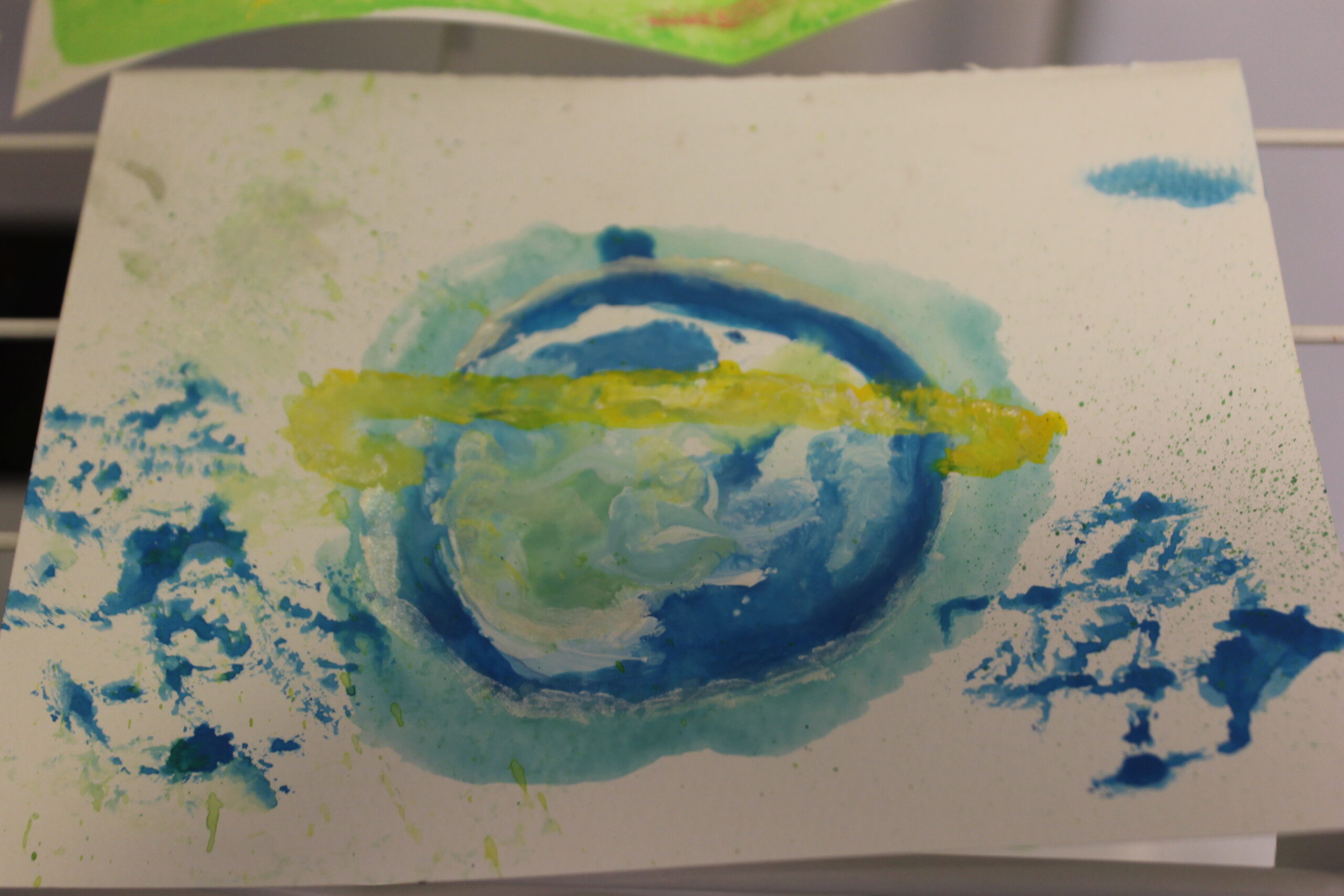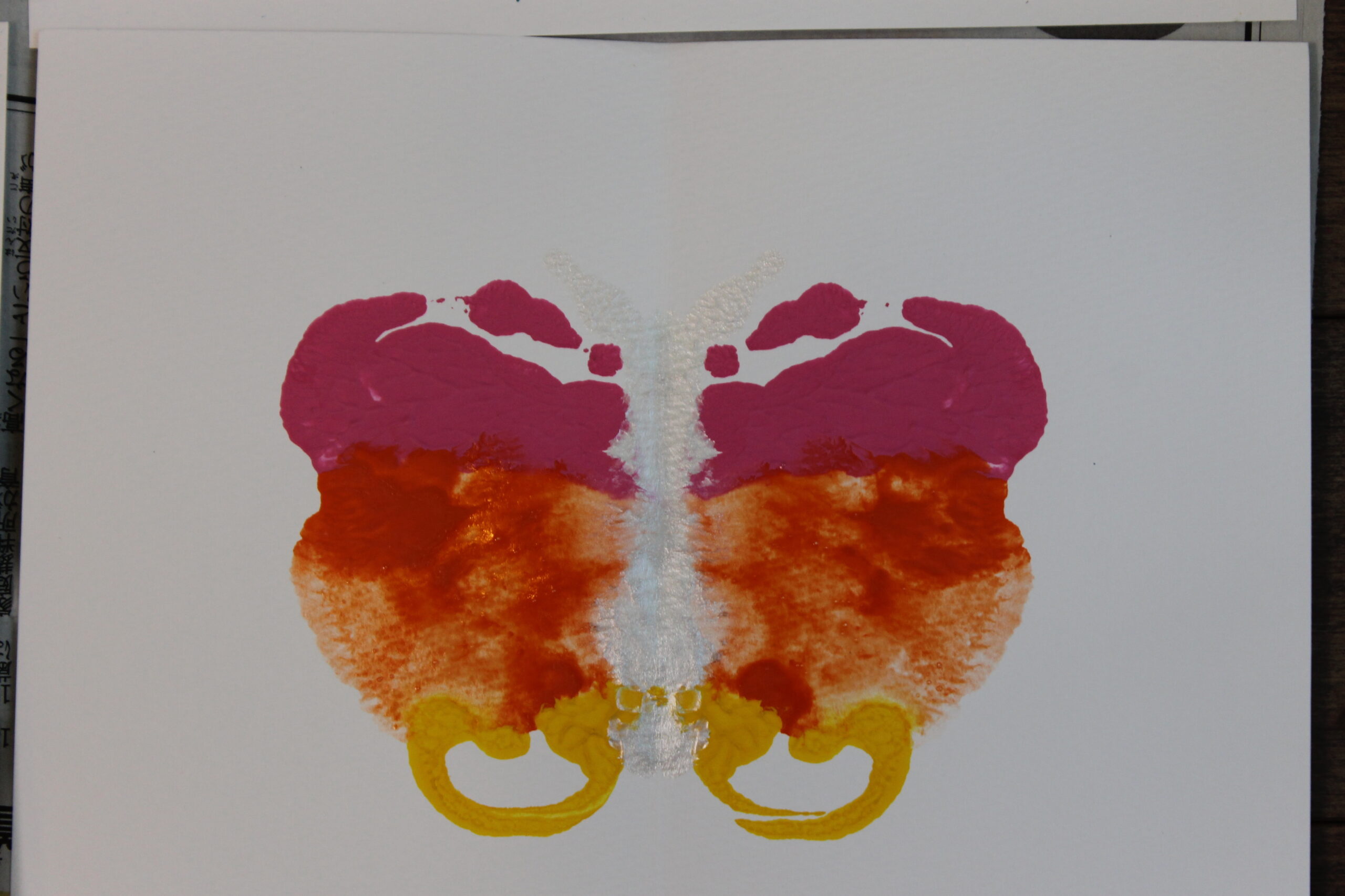 生徒さんたちは、とても楽しく取り組んでくださり、技法から発想して、何か抽象的な絵画のように表現につなげていくこともできたようです。是非、今後の作品作りに活かしていただけたら嬉しいです。