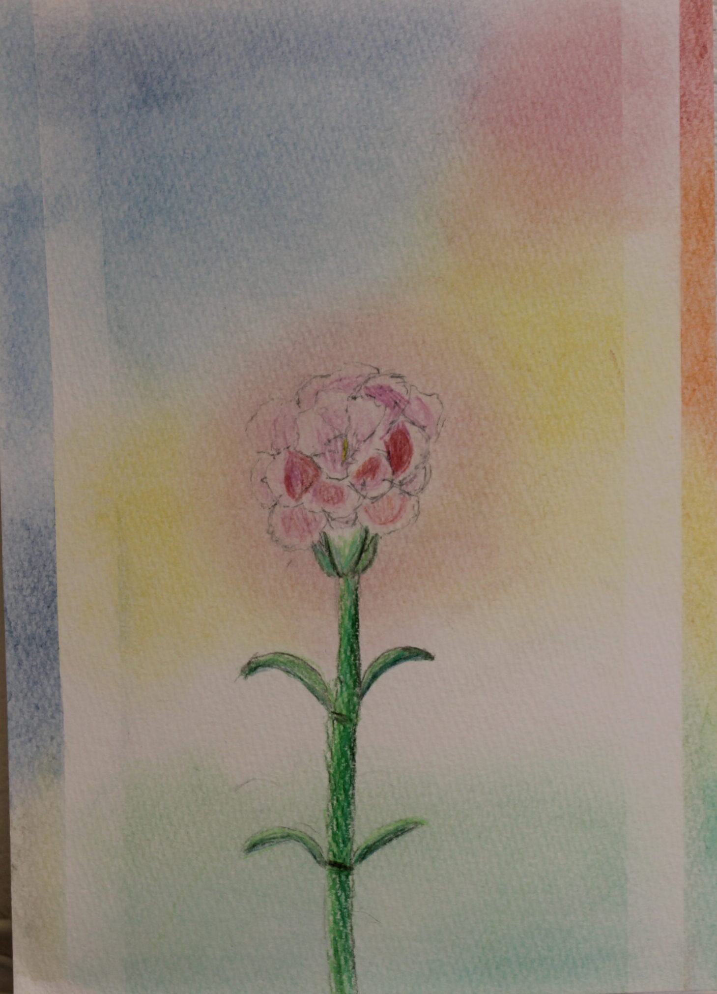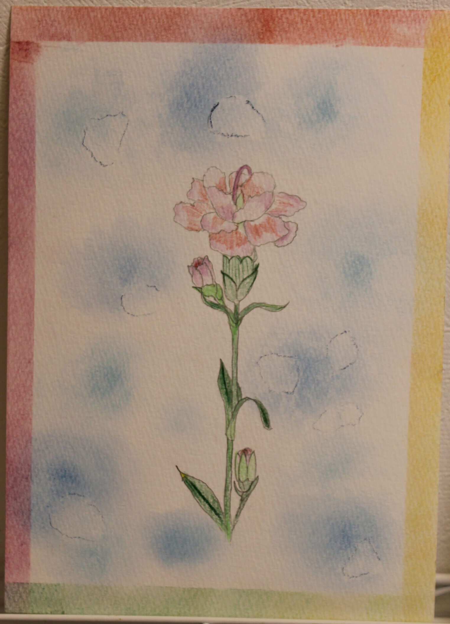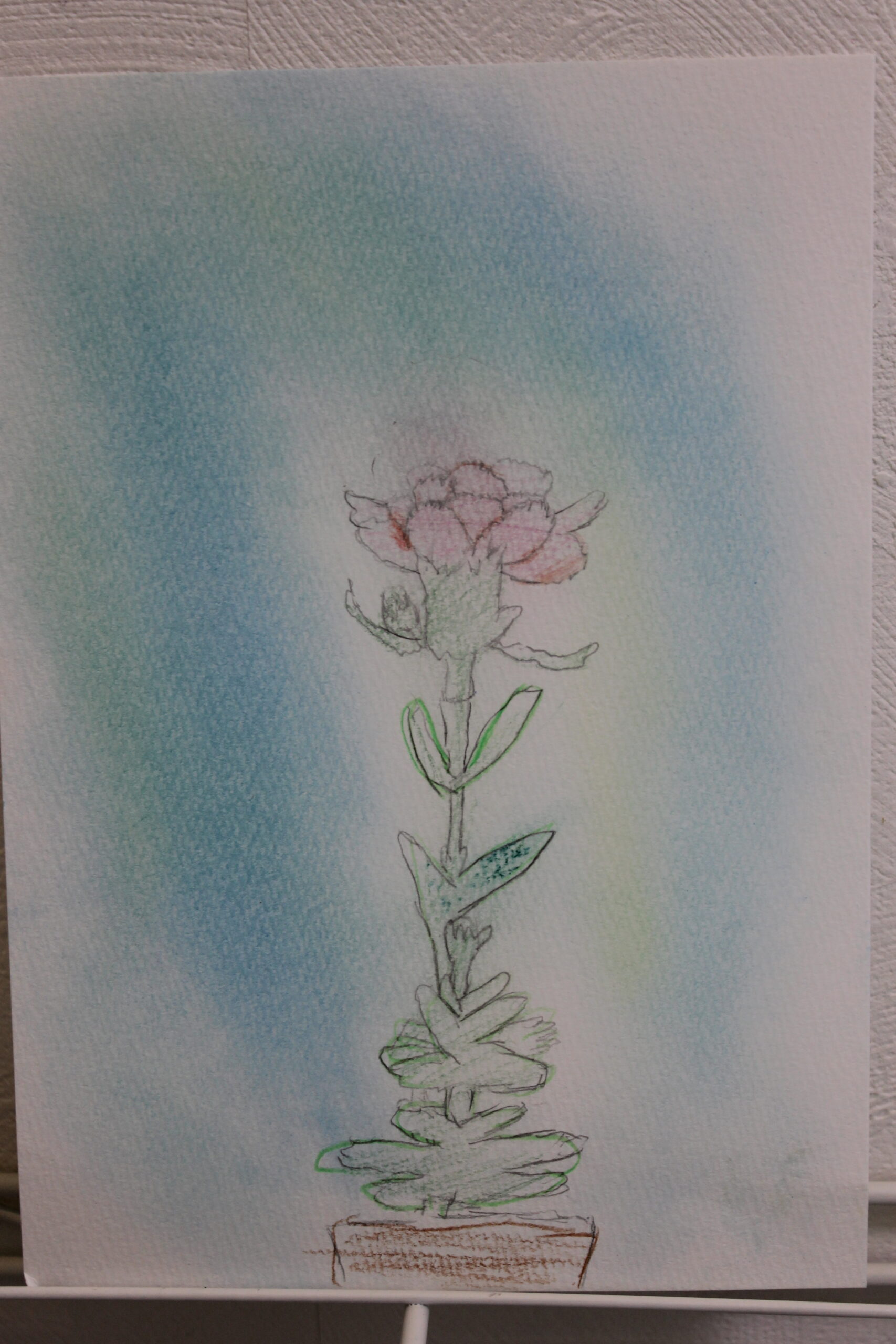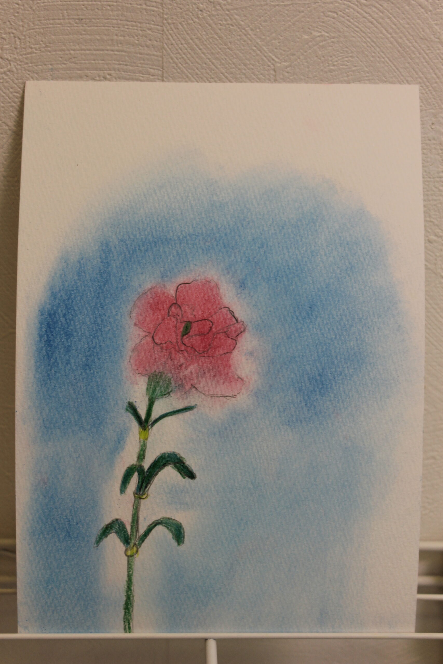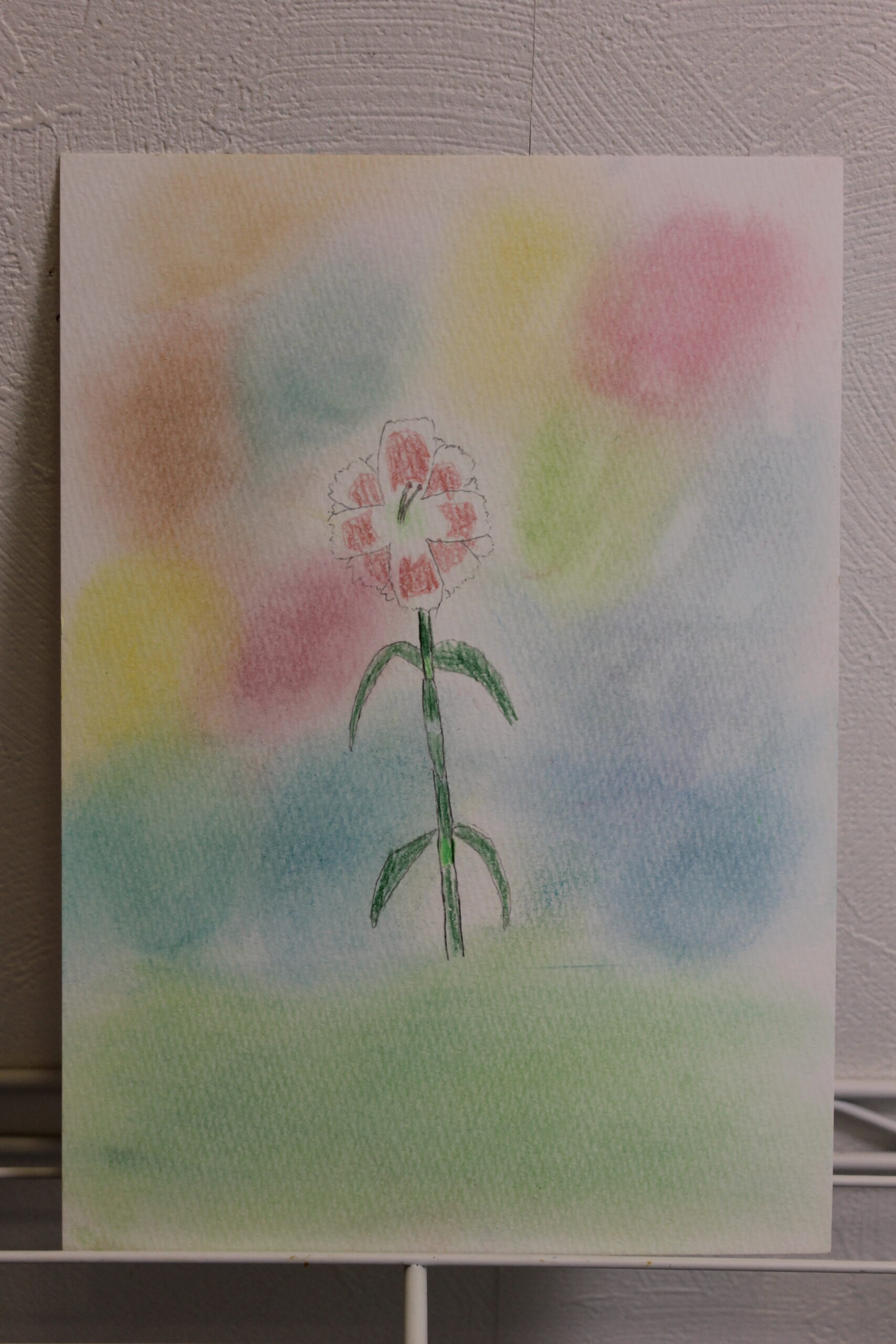 4月のこどもクラスでは花を描いております。今回描いている花はダイアンサス、和名はナデシコです。カーネーションもナデシコ属でよく似ているため、母の日まで飾っていただくのにちょうど良いかとこの花を描くことにいたしました。