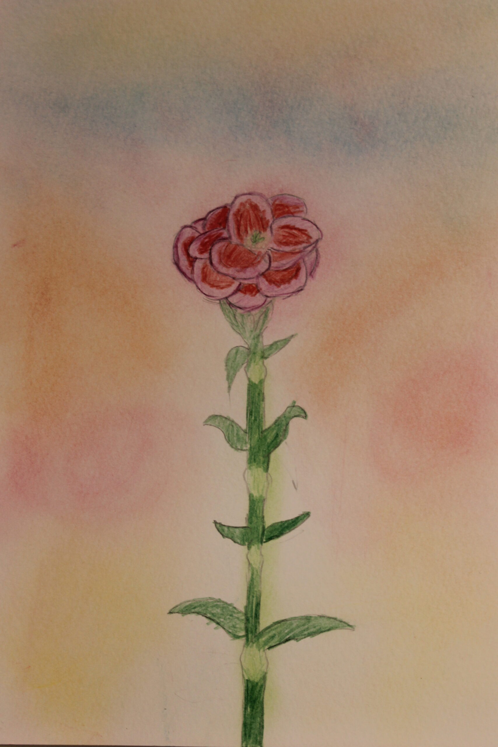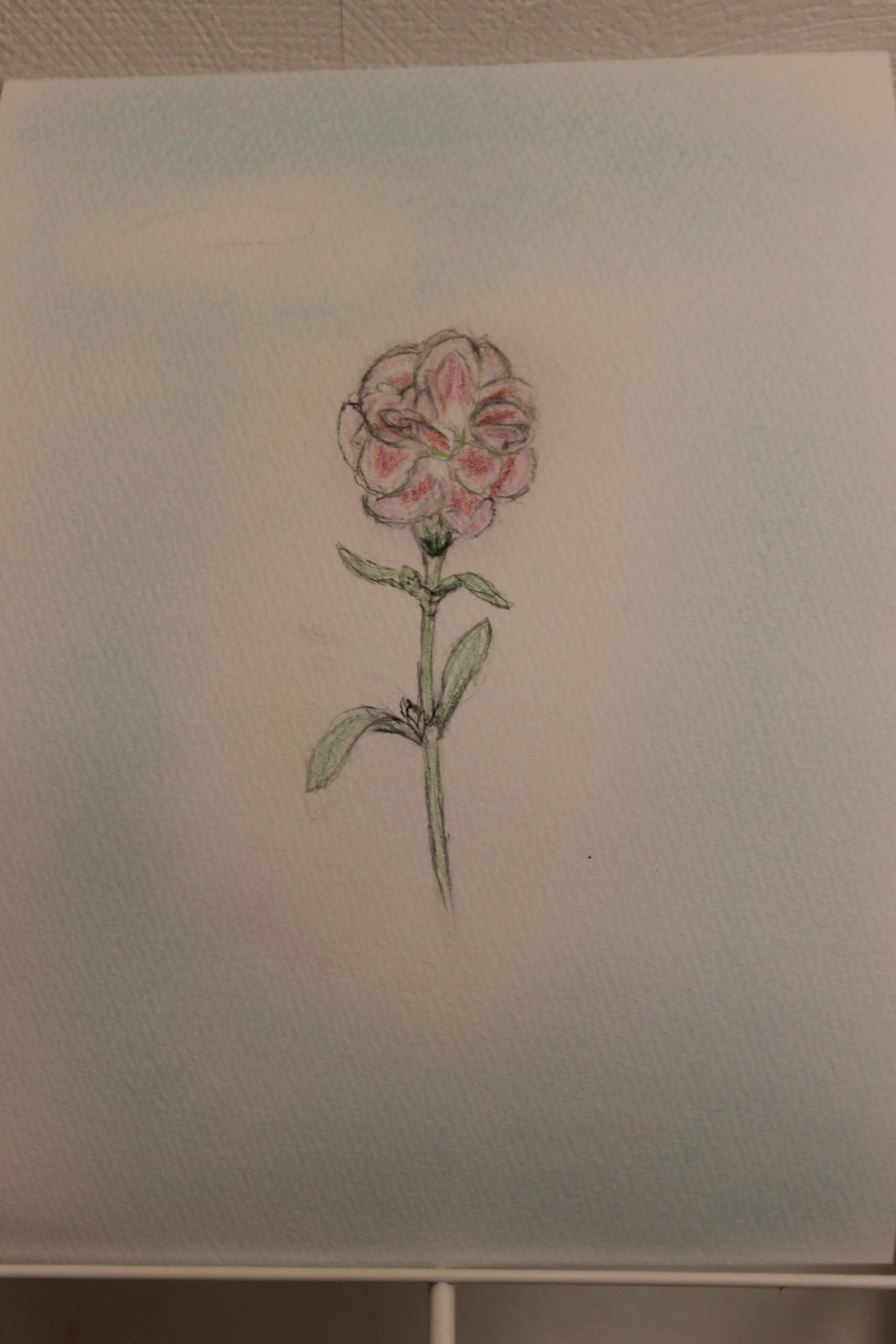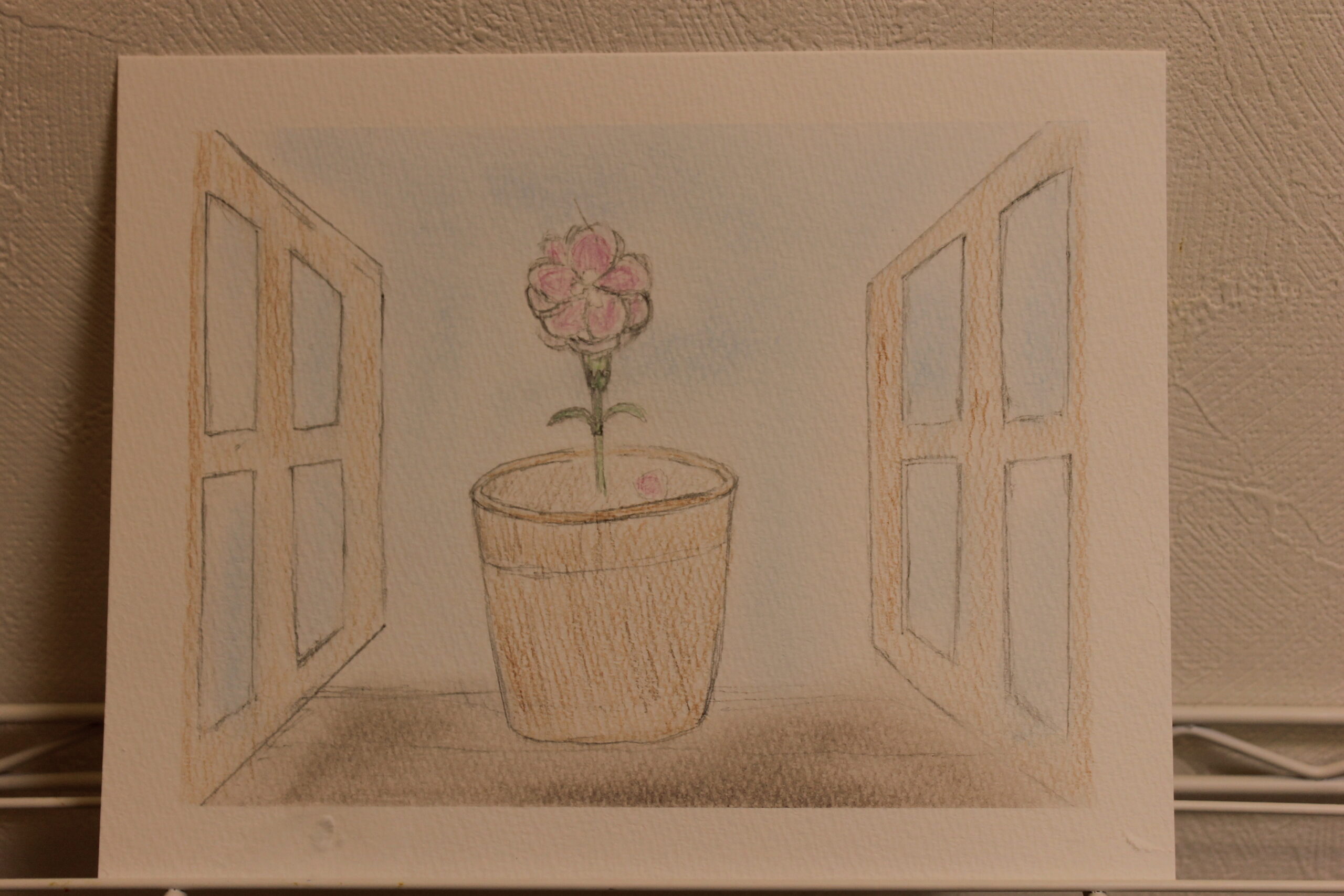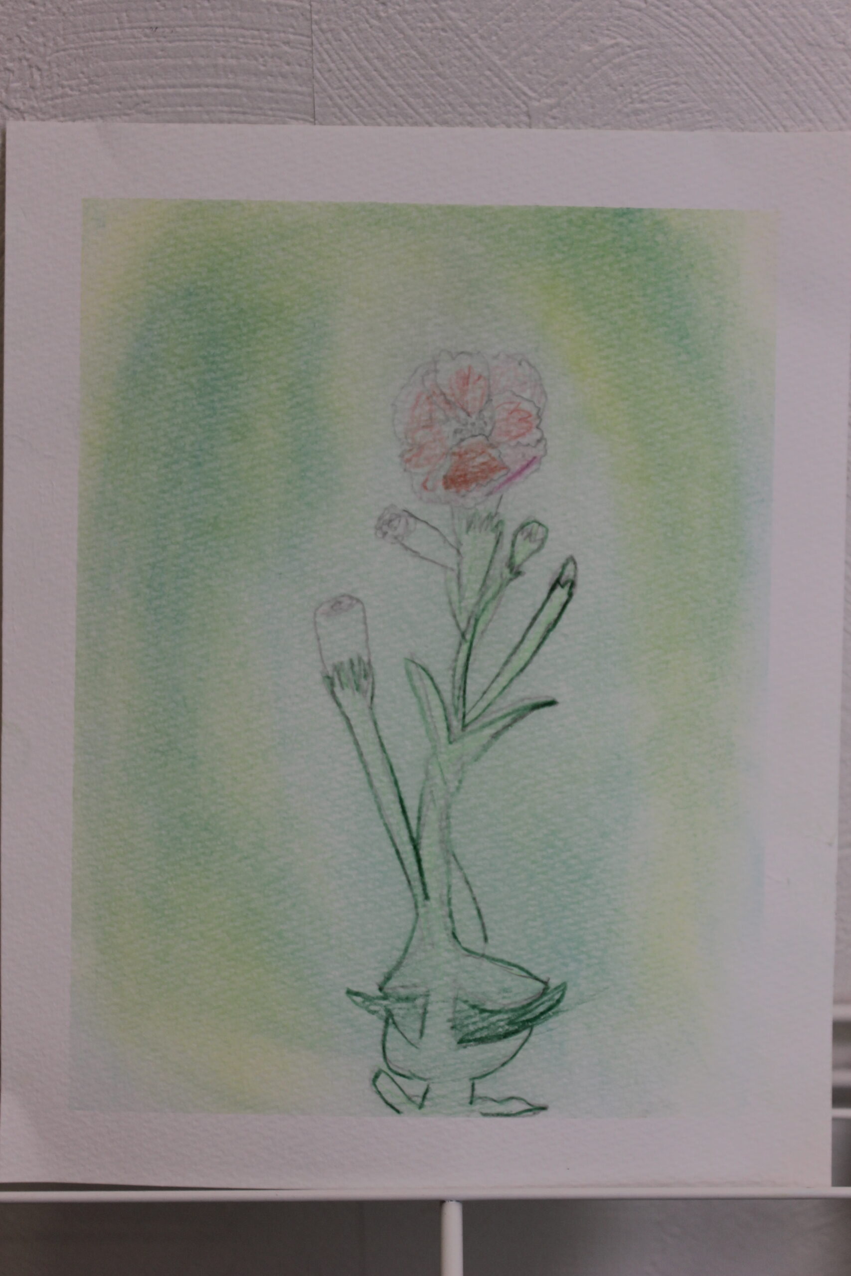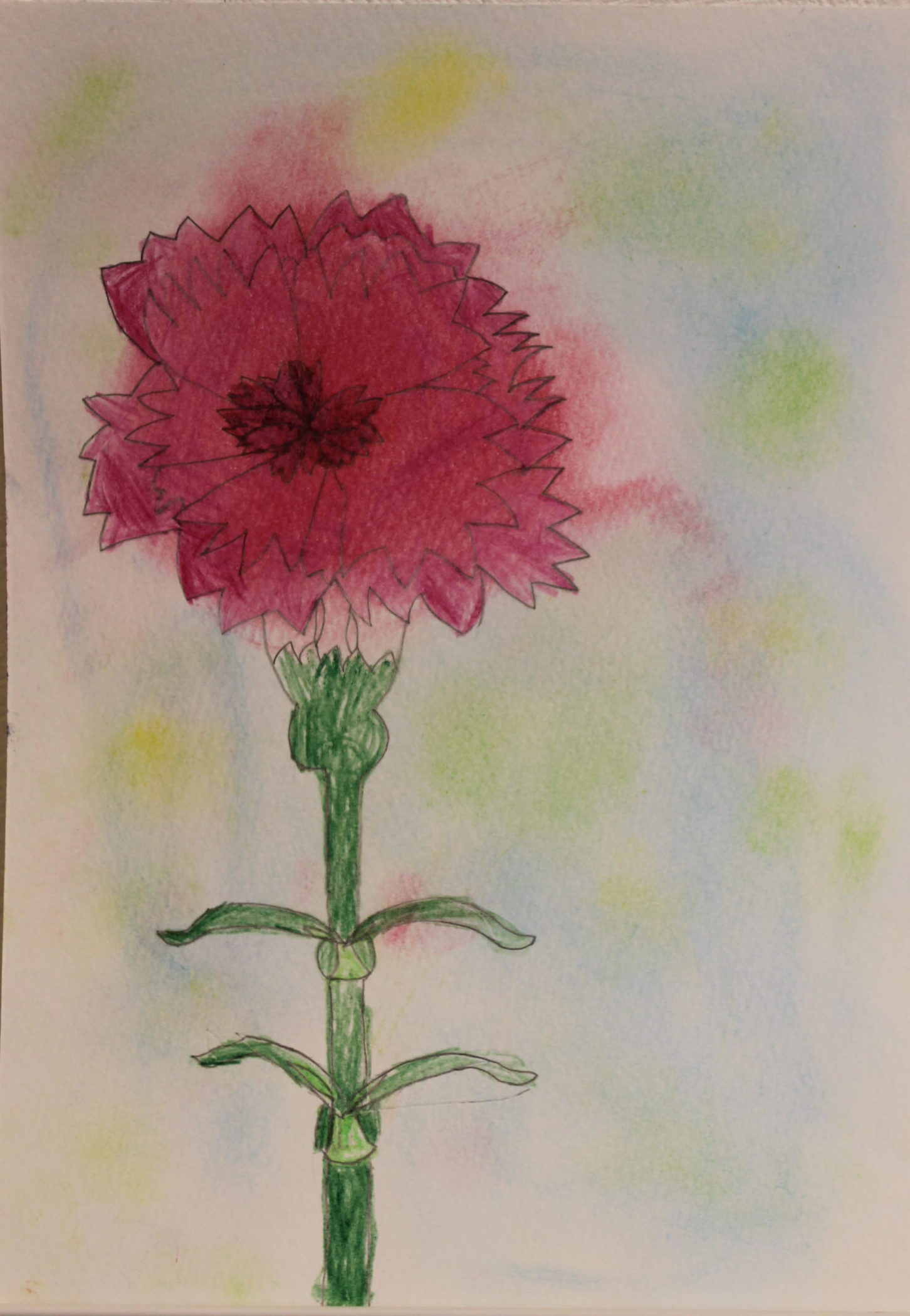 4月のこどもクラスでは花を描いております。今回描いている花はダイアンサス、和名はナデシコです。カーネーションもナデシコ属でよく似ているため、母の日まで飾っていただくのにちょうど良いかとこの花を描くことにいたしました。