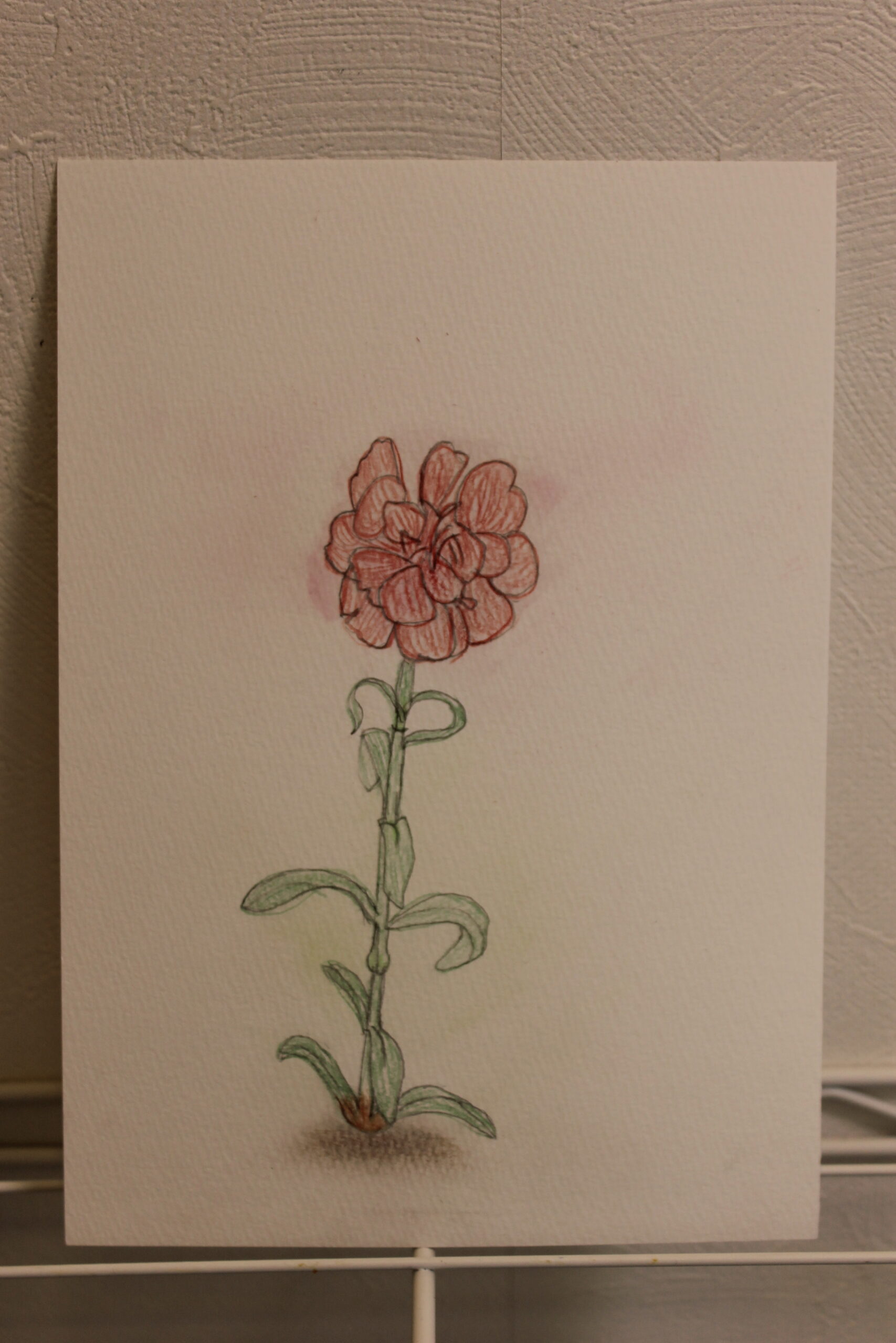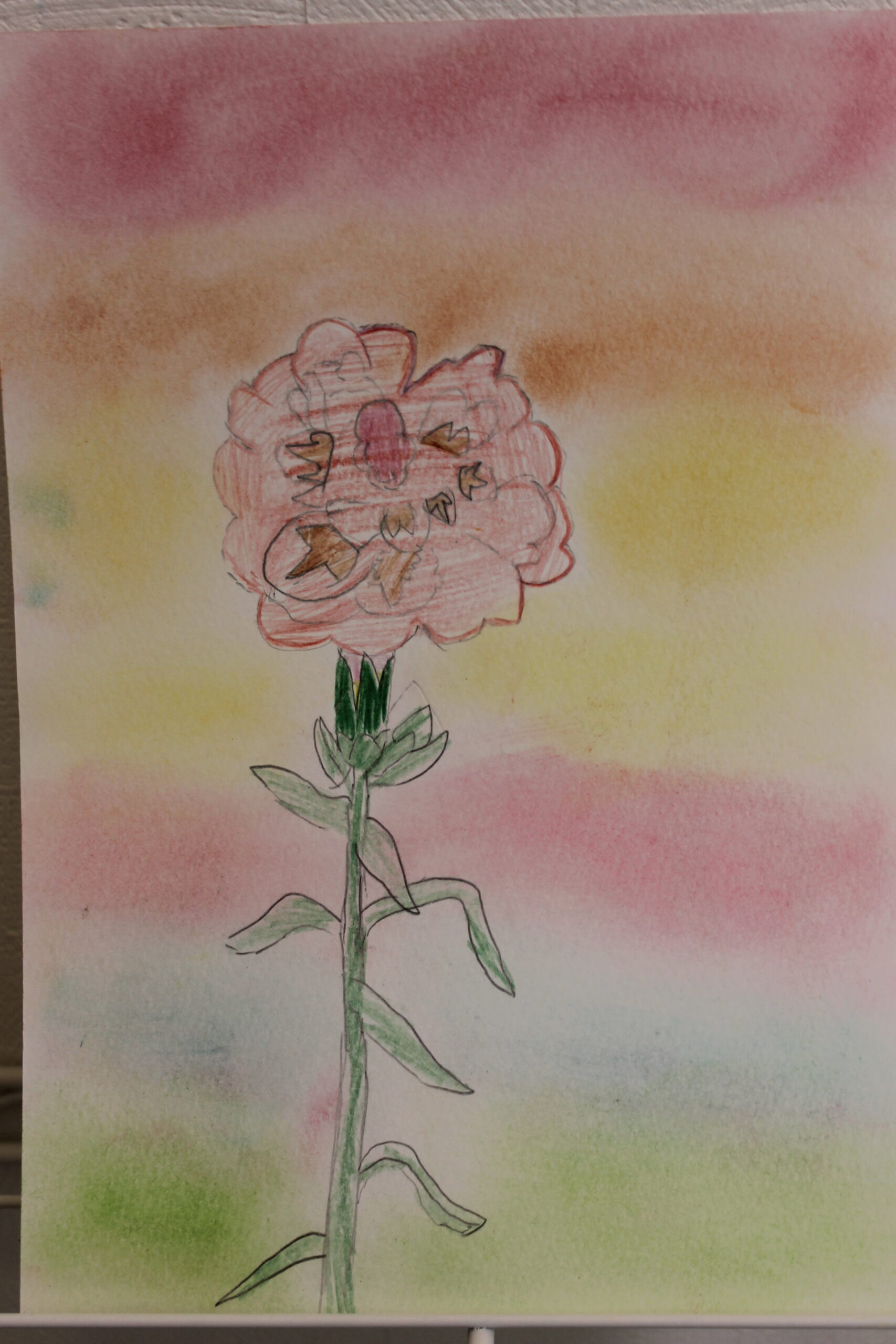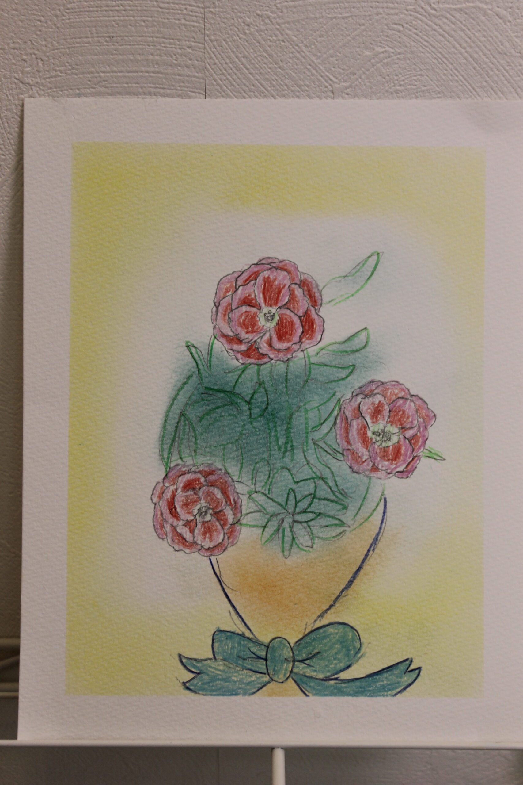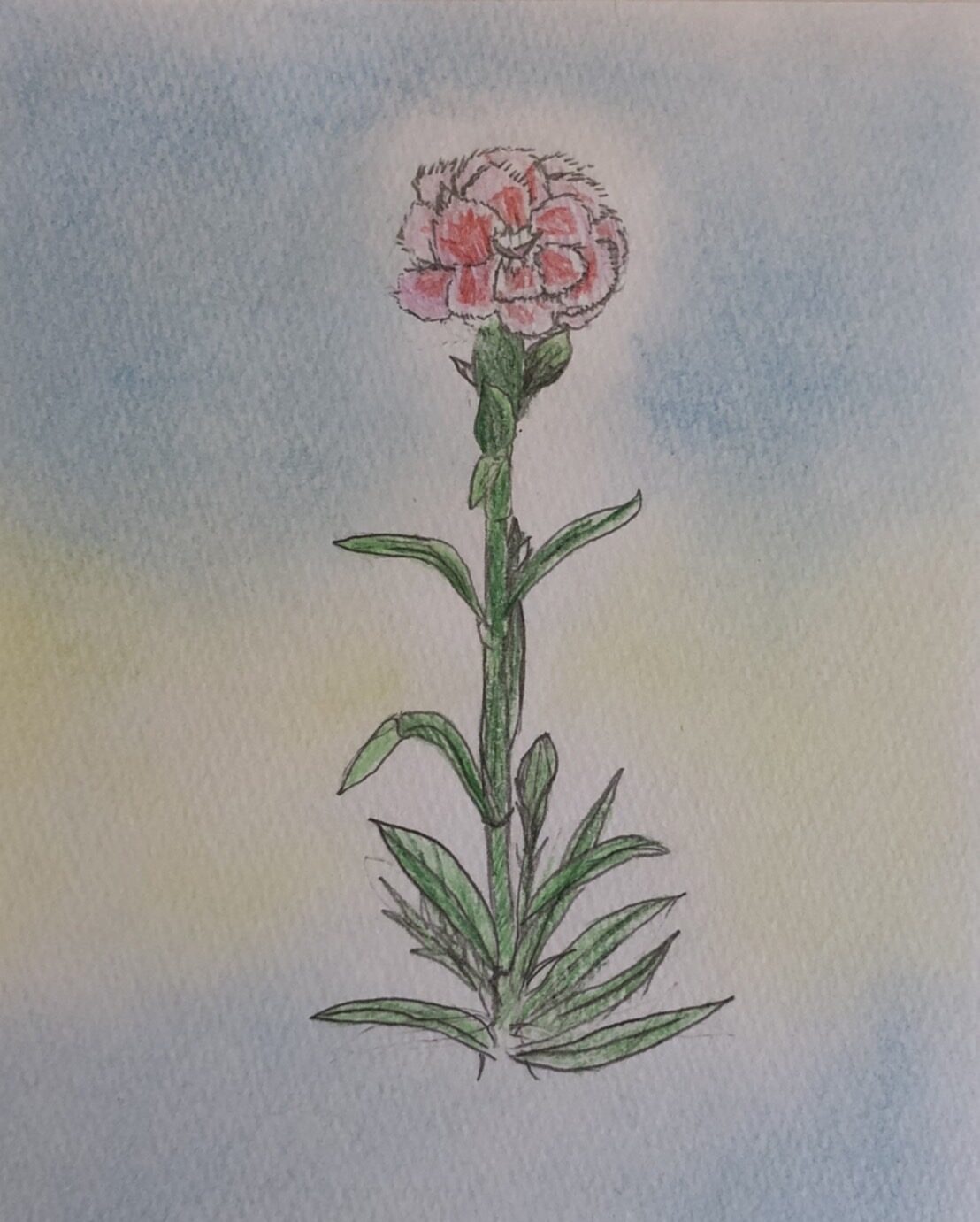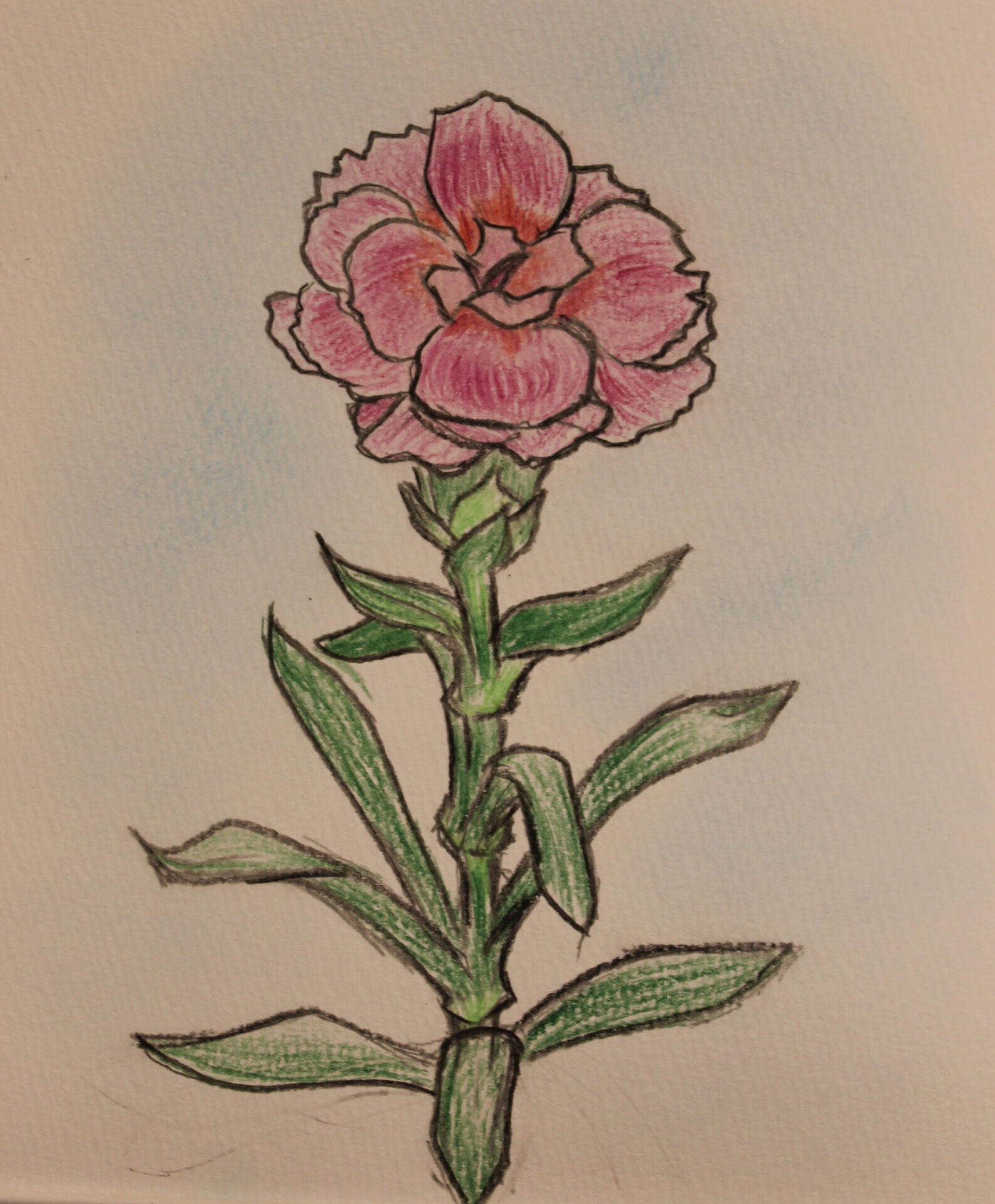 4月のこどもクラスでは花を描いております。今回描いている花はダイアンサス、和名はナデシコです。カーネーションもナデシコ属でよく似ているため、母の日まで飾っていただくのにちょうど良いかとこの花を描くことにいたしました。