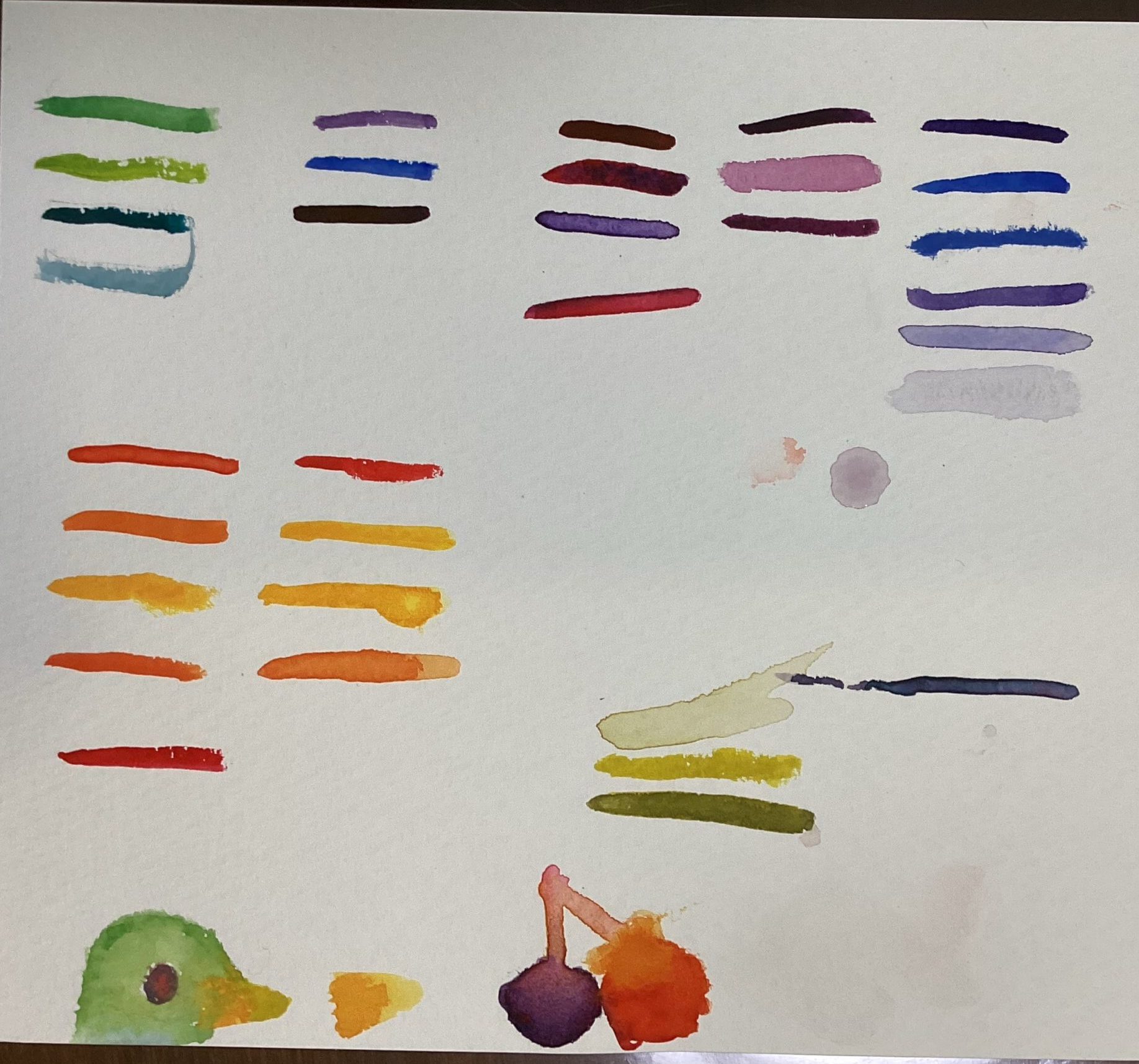 予めこちらが混色をした方が良いとお伝えしない限り、9割方のお子さんが絵の具のチューブから出したそのままの色を使います。絵の具の使い方と併せて混色の方法もお伝えし、なるべく自分の好きな色を工夫して作った方がより自分らしい絵になるといった助言をさせていただきました。