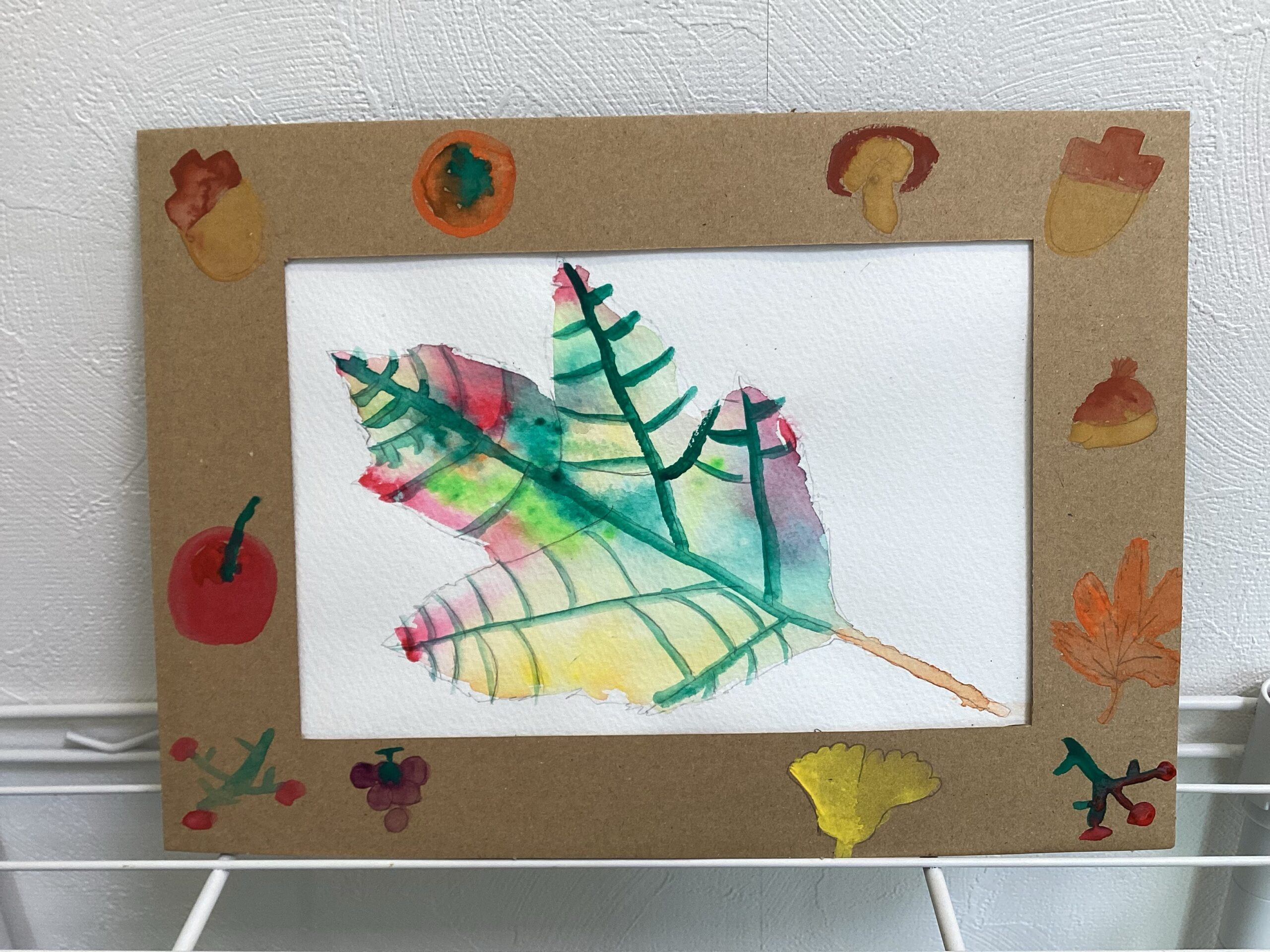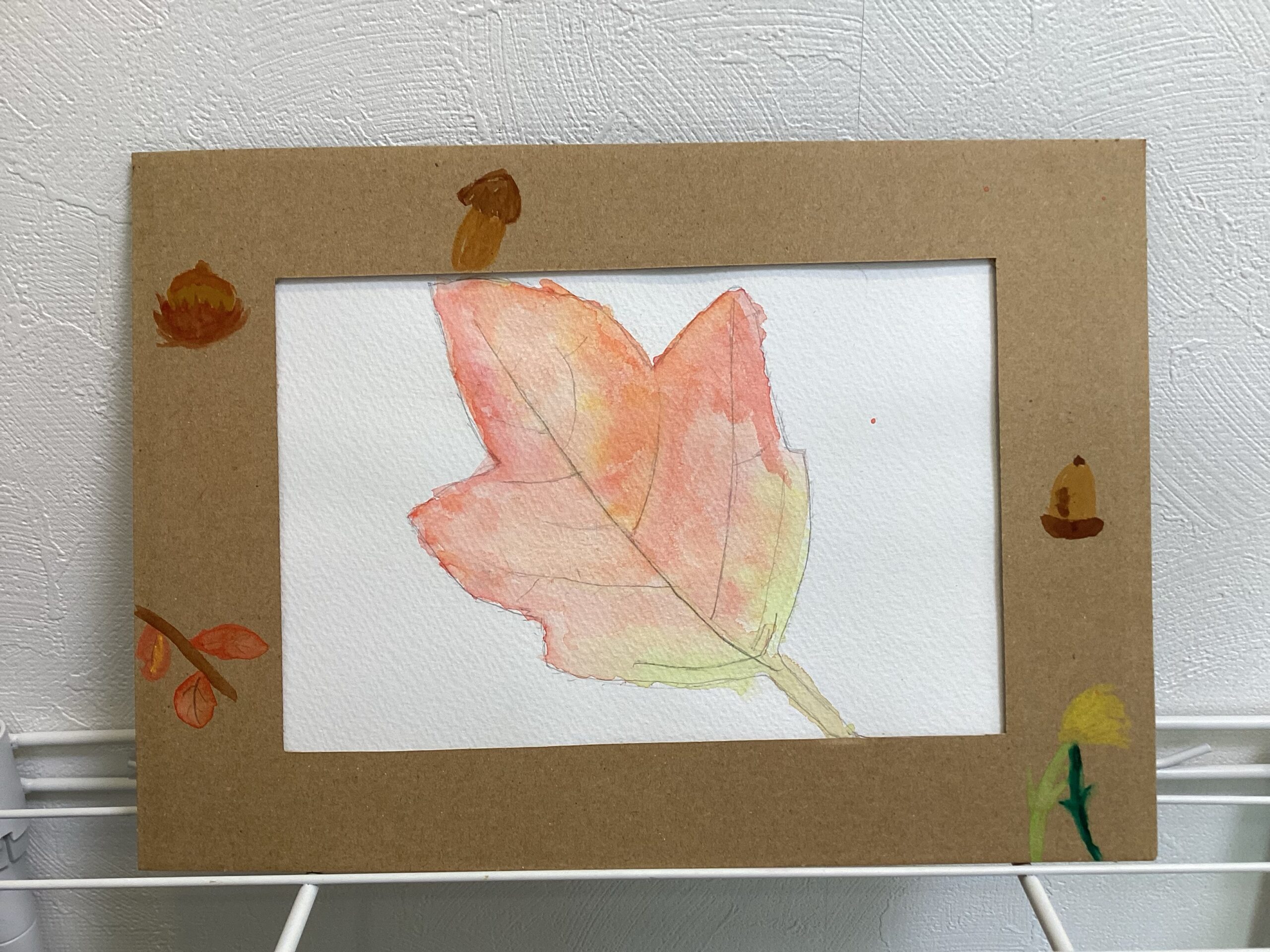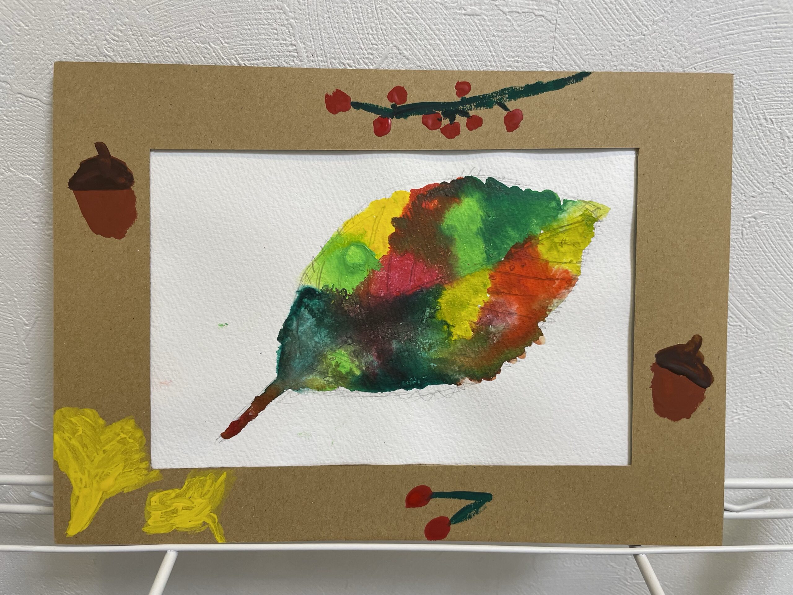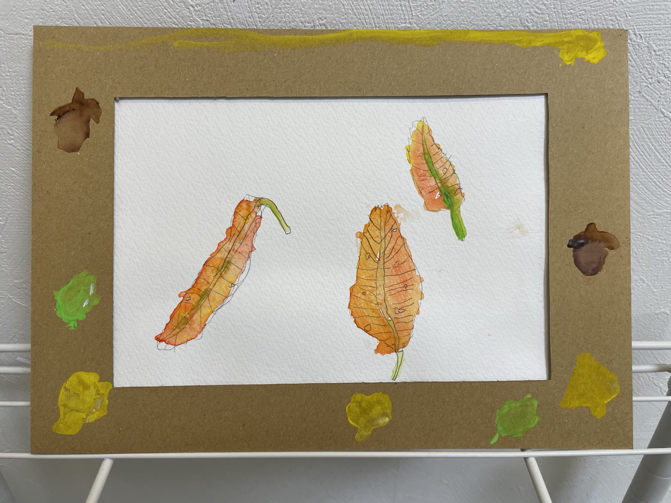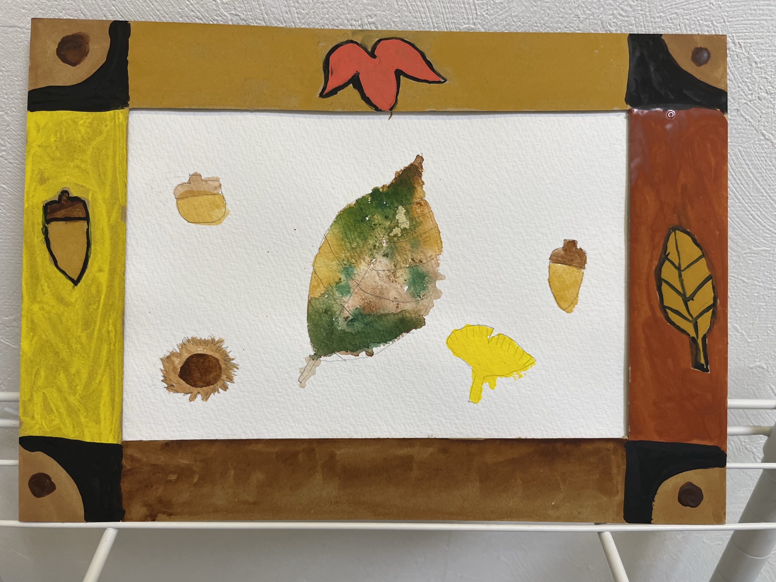 時間に余裕があった場合には、秋を感じさせる額のデザインもしていただきました。お教室で学んだ事を学校やご家庭でも生かし、楽しく生き生きと制作して頂けたらと思います。