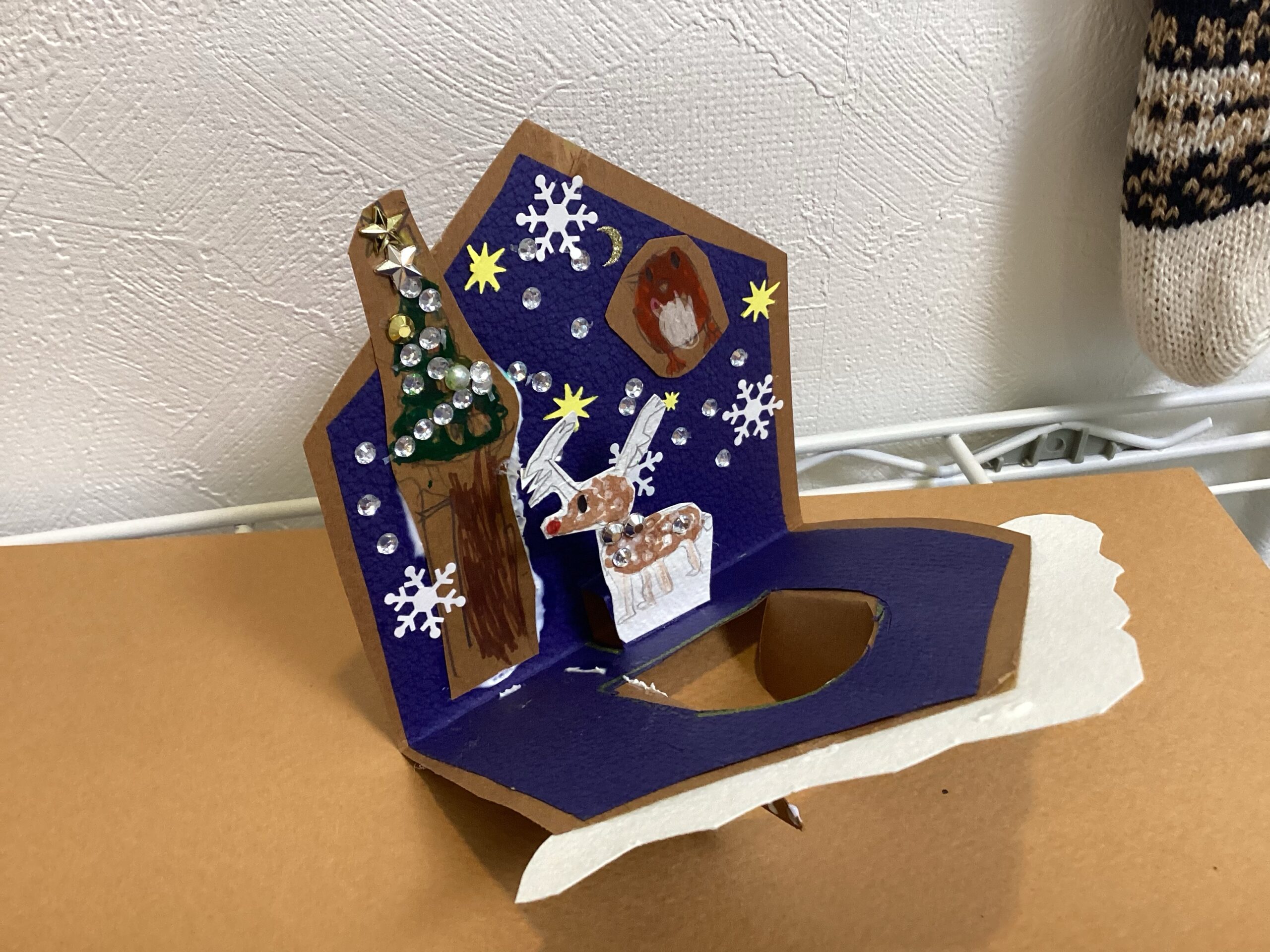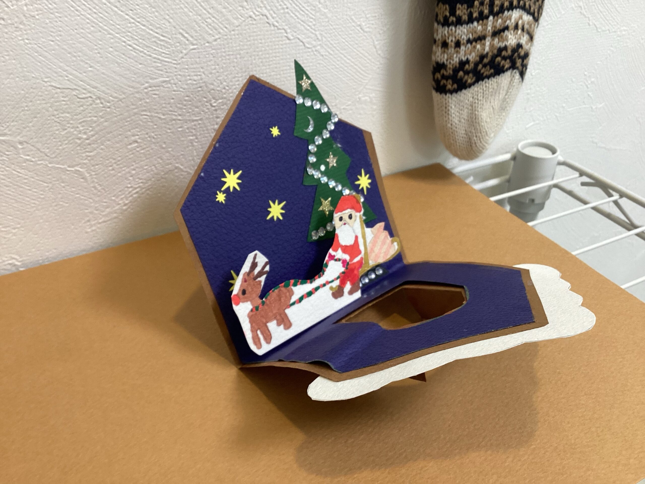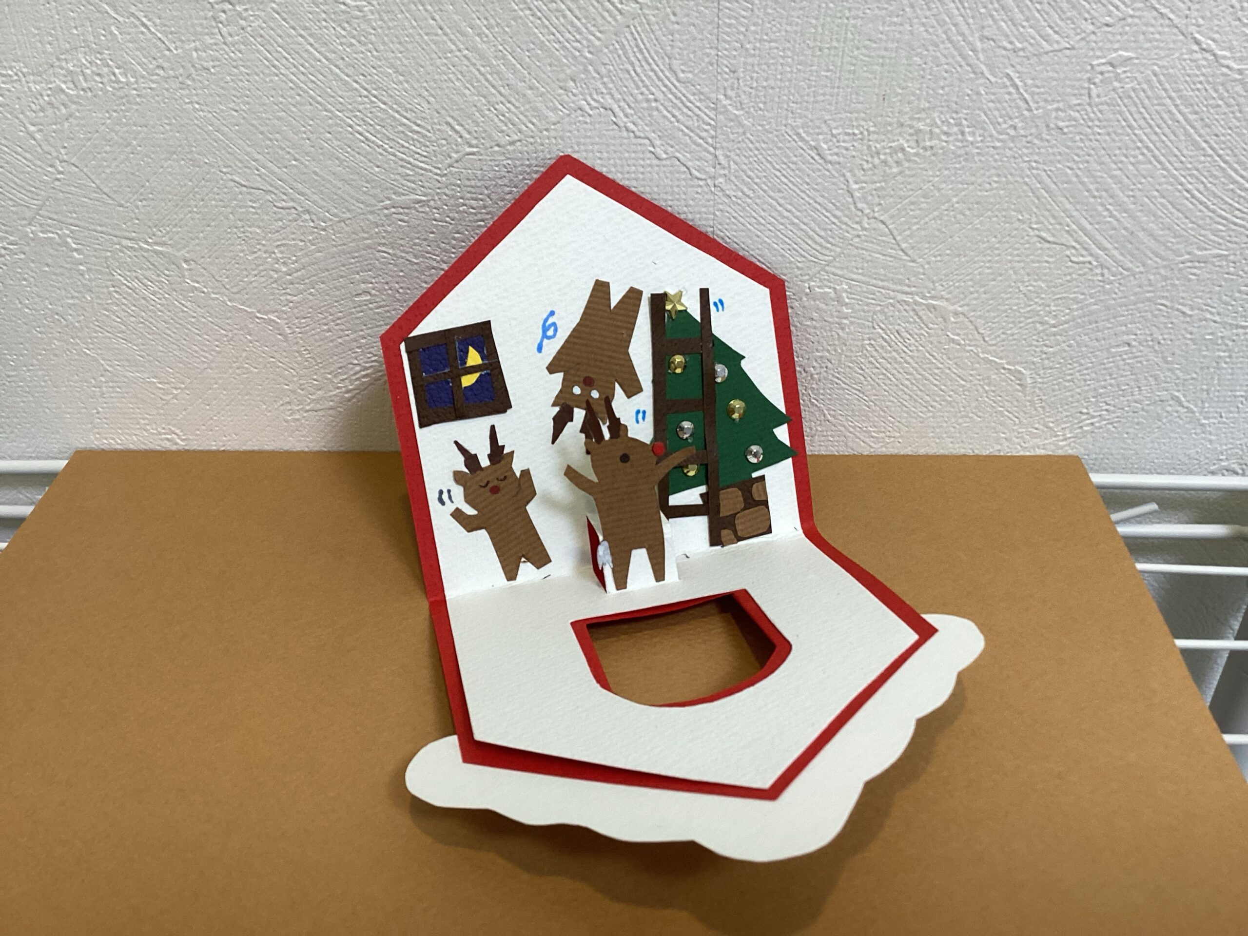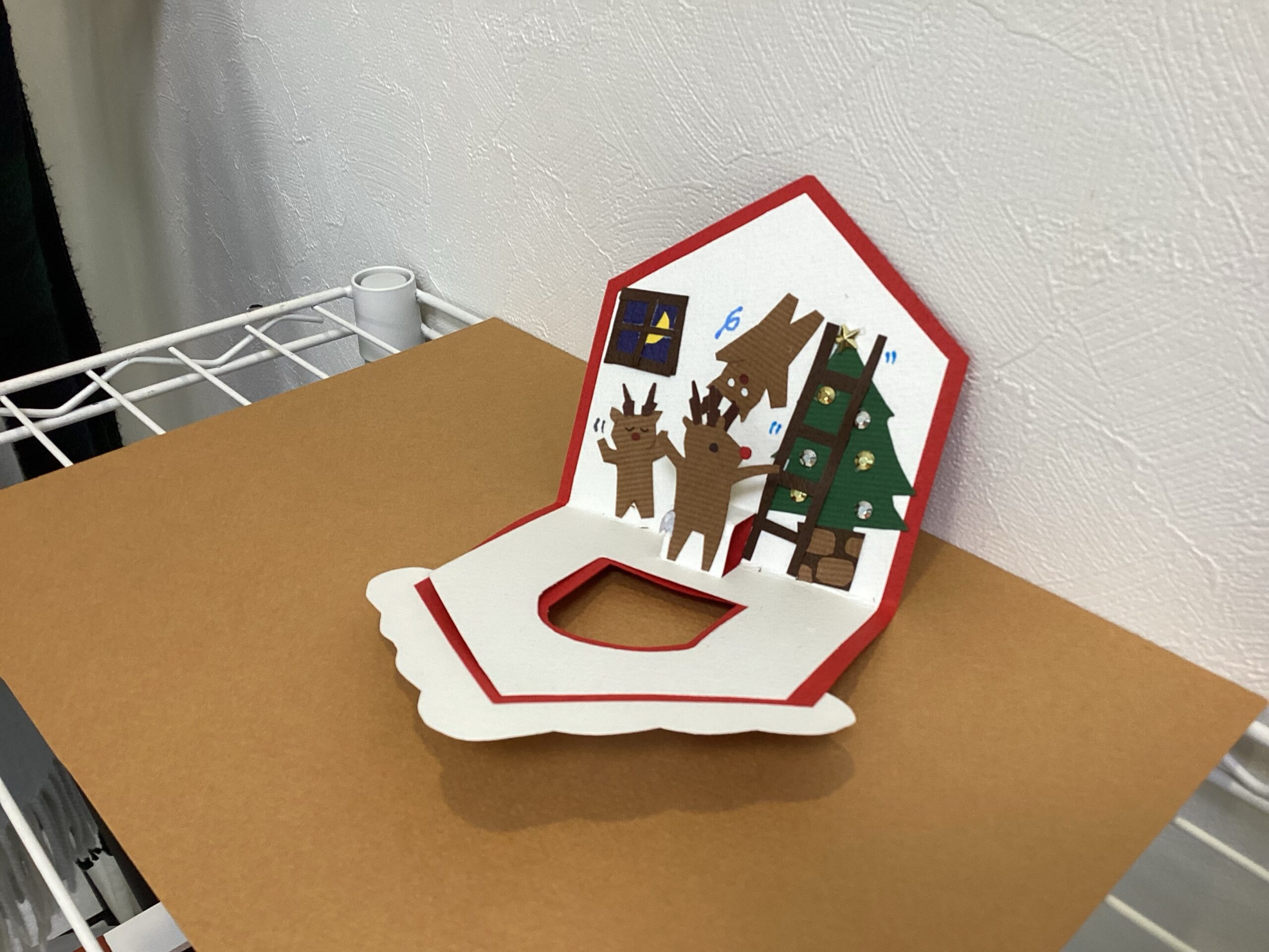 毎年どんな工作にしようか頭を悩ませるクリスマス工作ですが、今年は近くにある蔦屋書店の子供の本コーナーにポップアップ絵本が置いてあったことをきっかけに、ポップアップクリスマスカードを制作することに決めました。