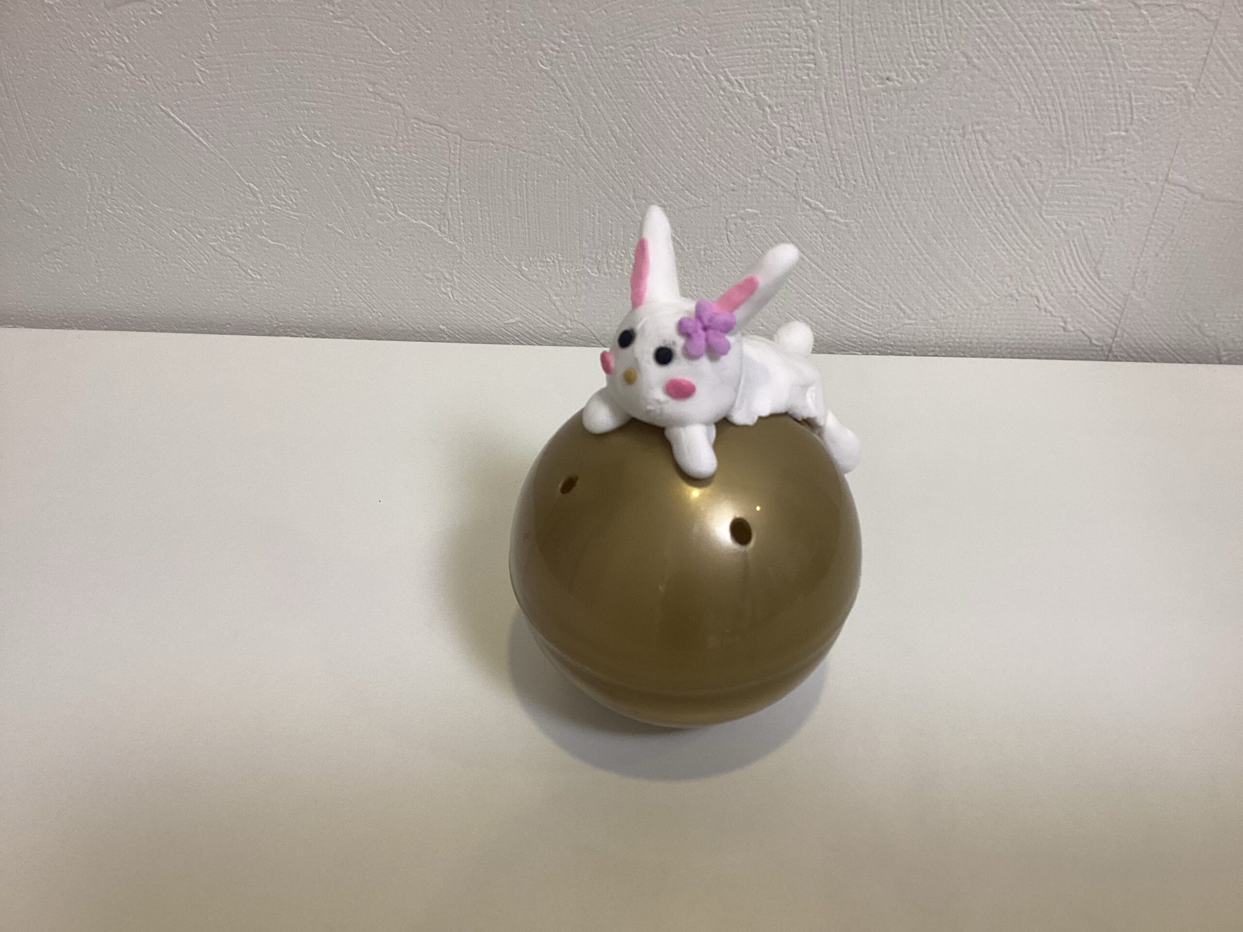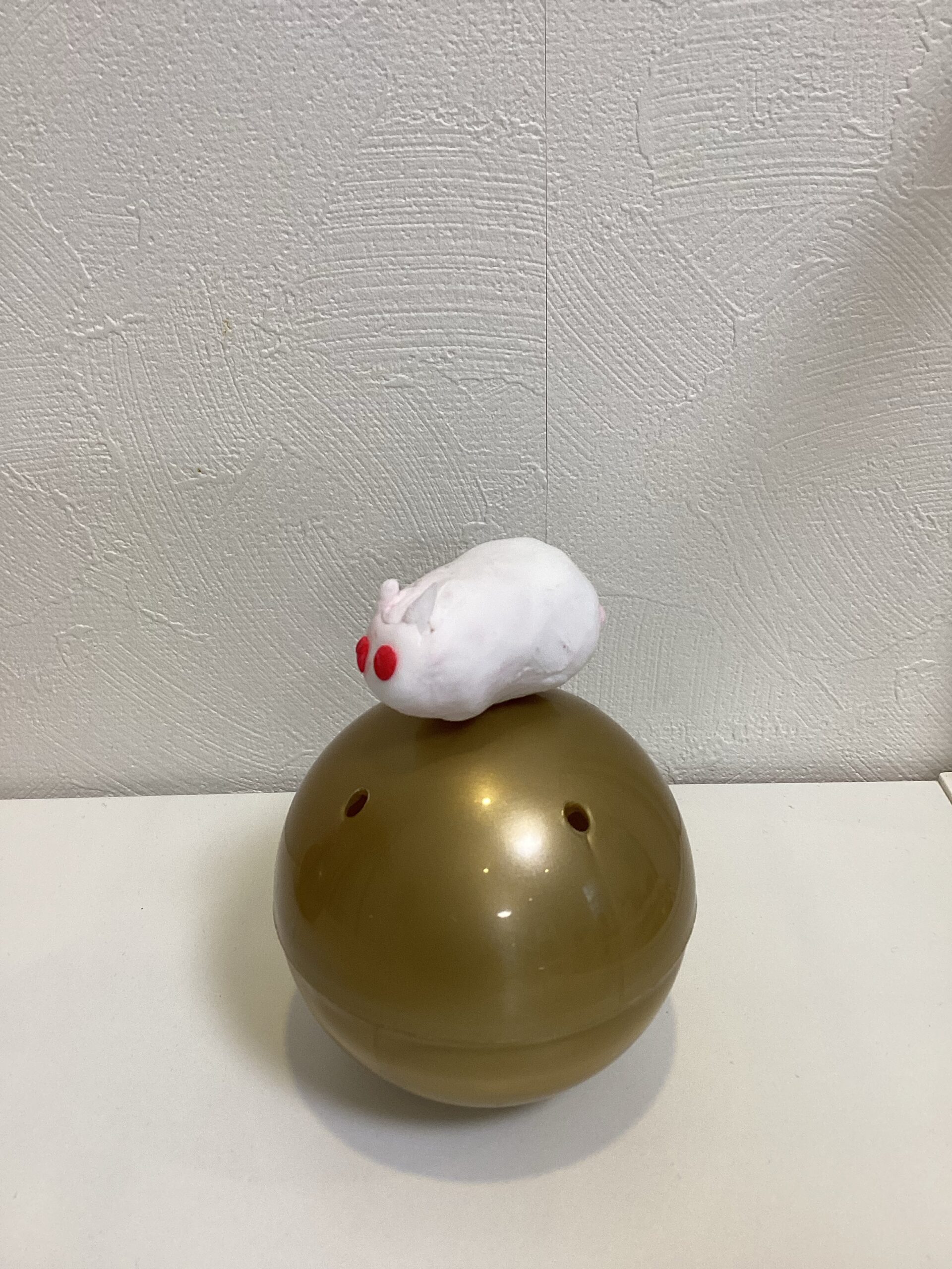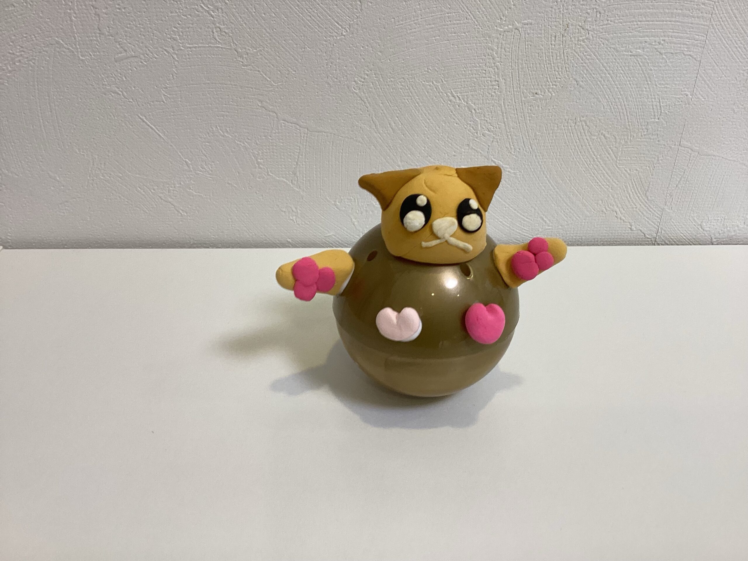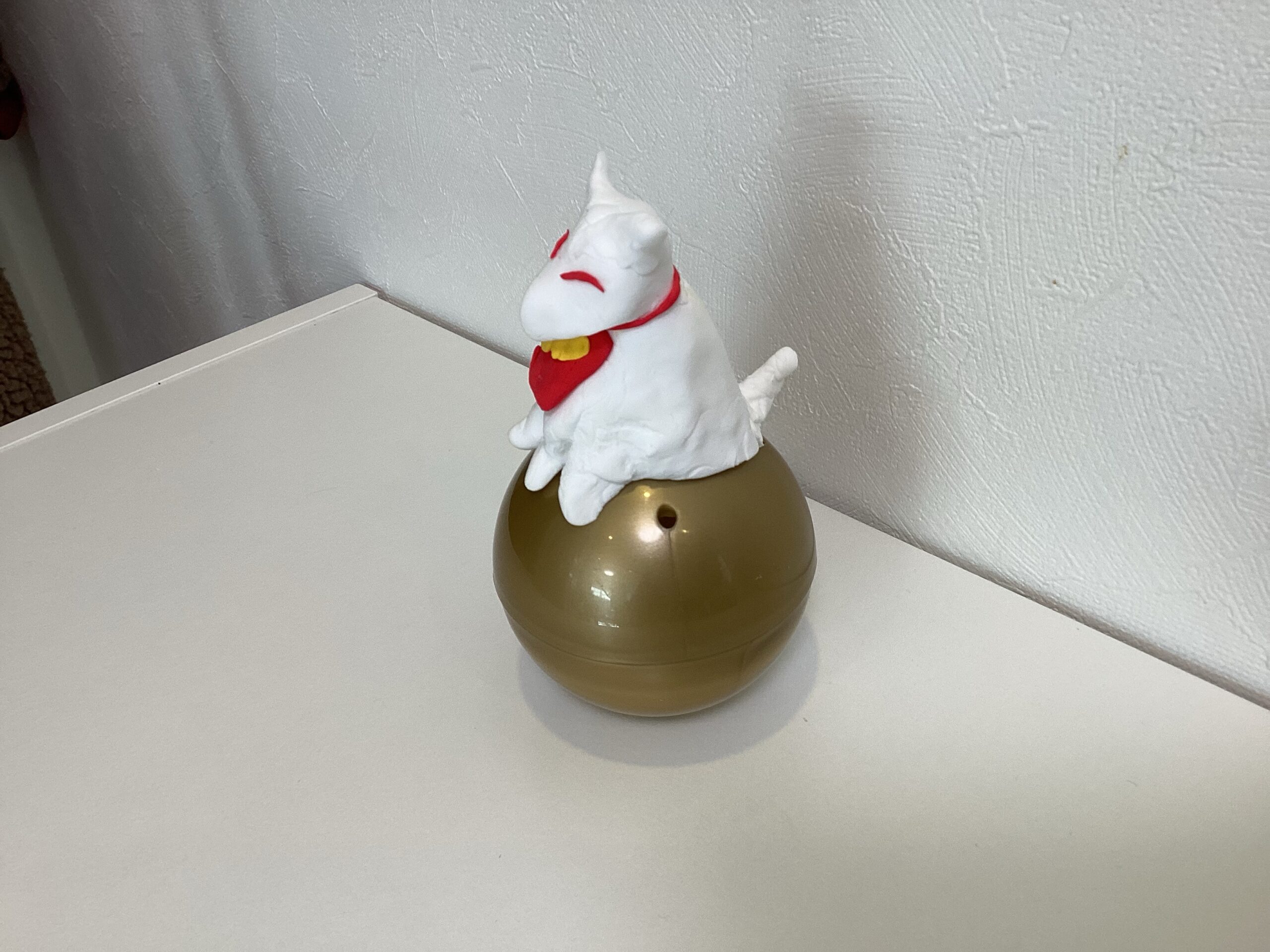 薄い紙を貼り合わせ張り子を作り、その中に錘を入れて作るのが伝統的な起き上がり小法師の作り方ですが、張り子は型を作ったり、乾くまでに数日間かかるため、今回はカプセルトイと紙粘土を使用して作ることにしました。カプセルトイとはガチャガチャ、ガチャポンなどの正式名称です。