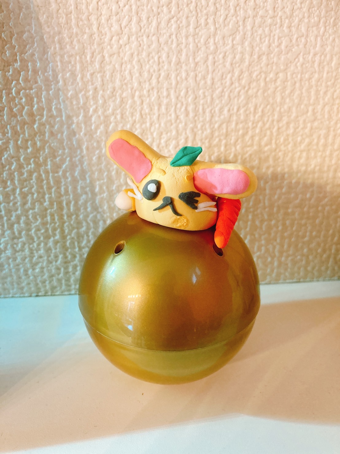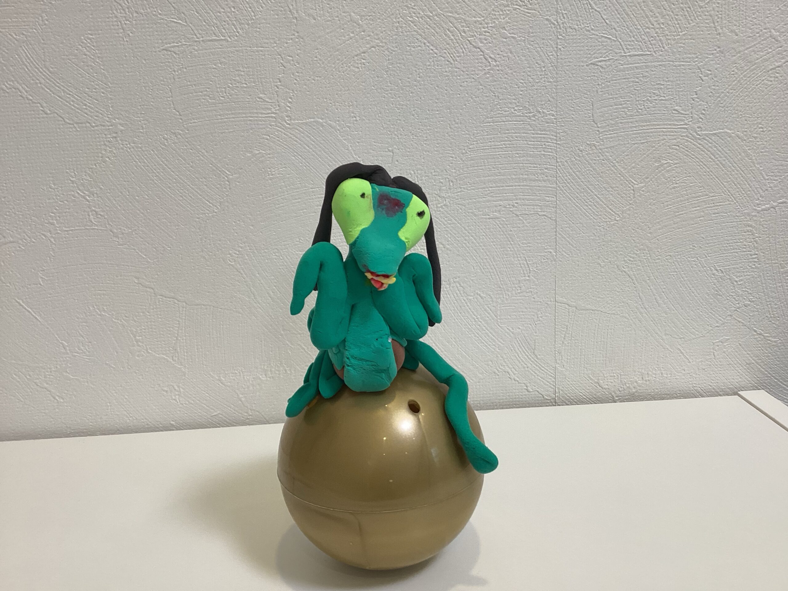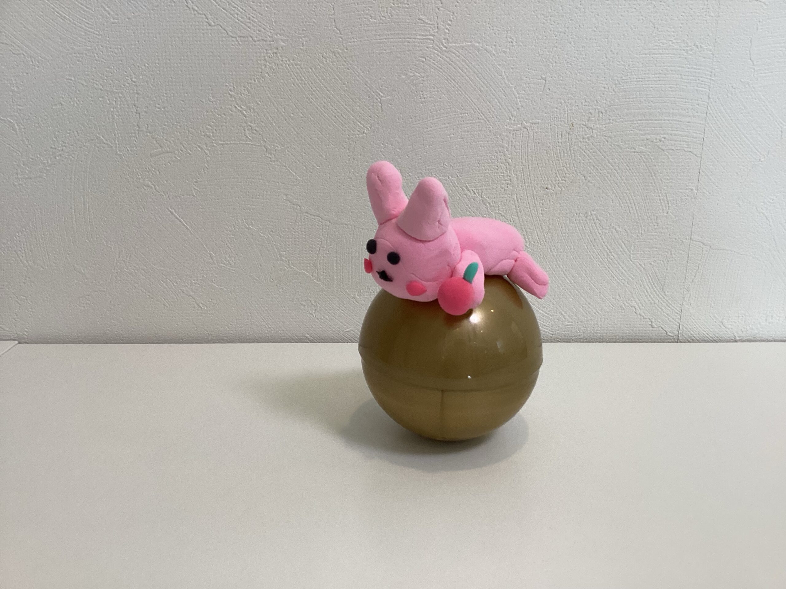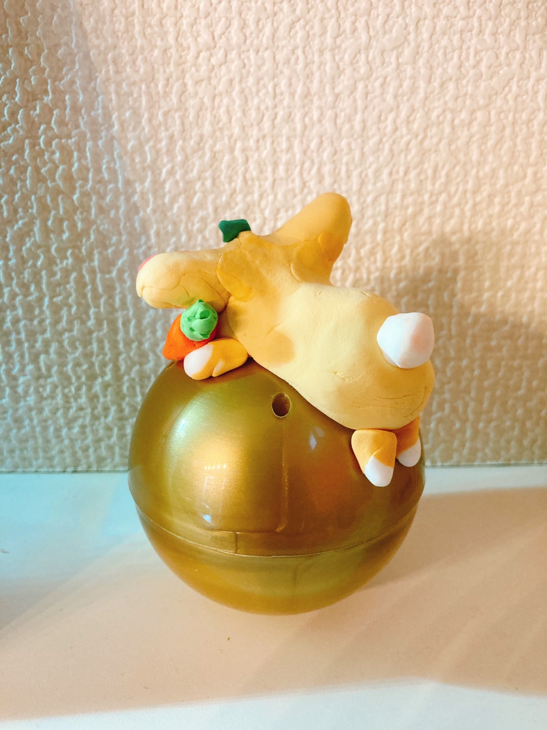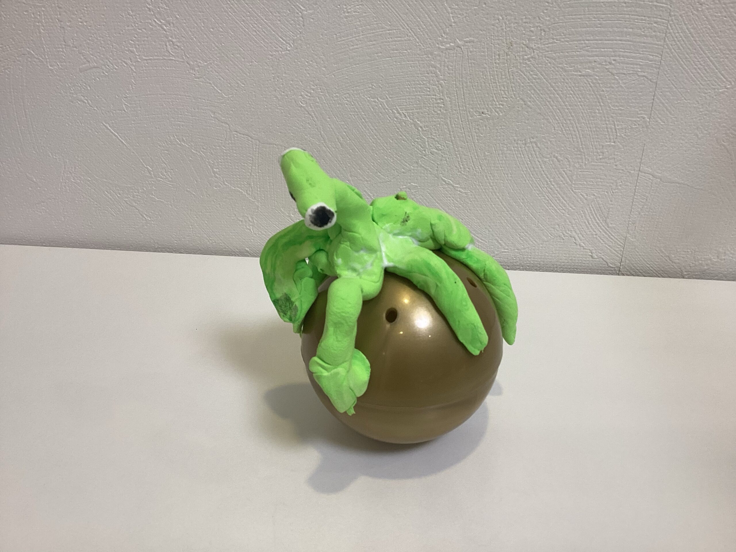 薄い紙を貼り合わせ張り子を作り、その中に錘を入れて作るのが伝統的な起き上がり小法師の作り方ですが、張り子は型を作ったり、乾くまでに数日間かかるため、今回はカプセルトイと紙粘土を使用して作ることにしました。カプセルトイとはガチャガチャ、ガチャポンなどの正式名称です。