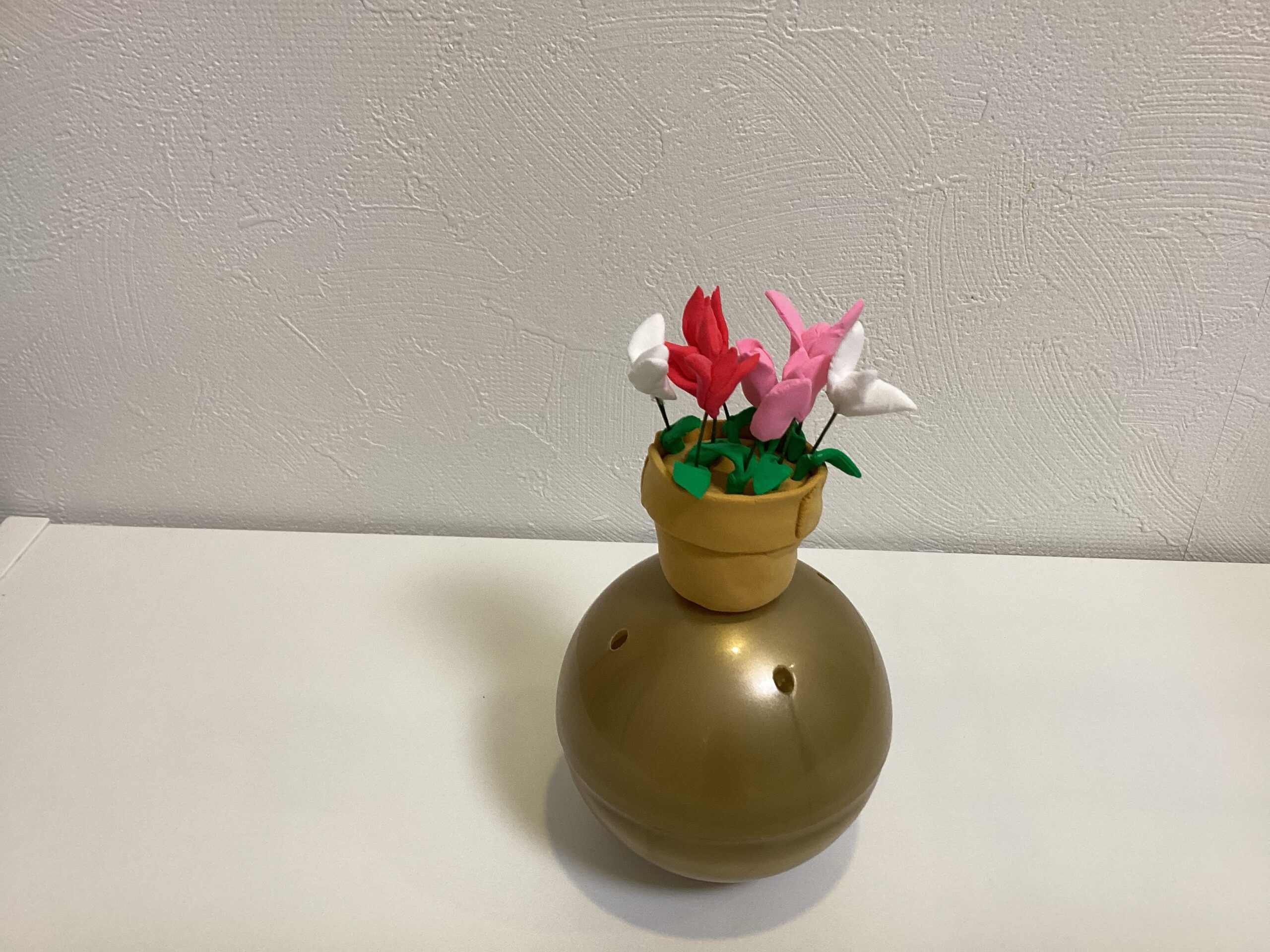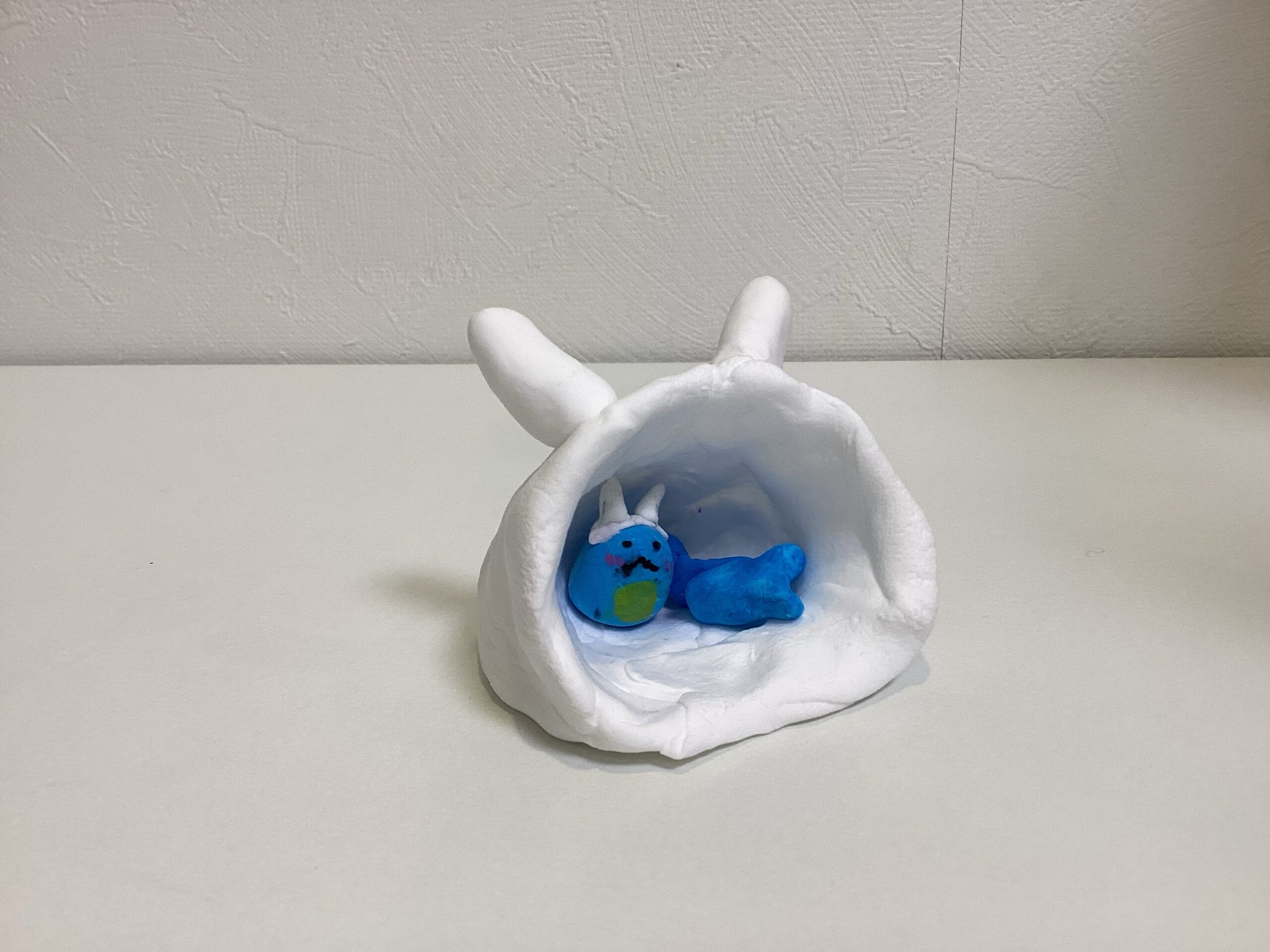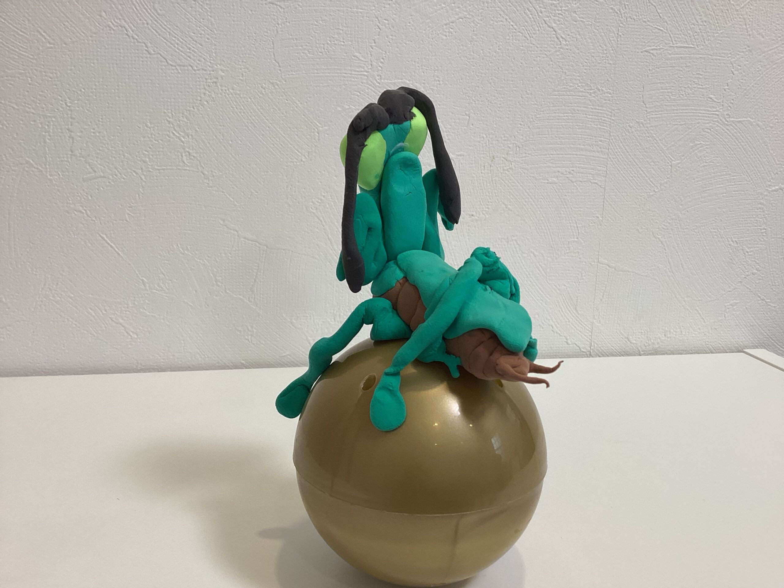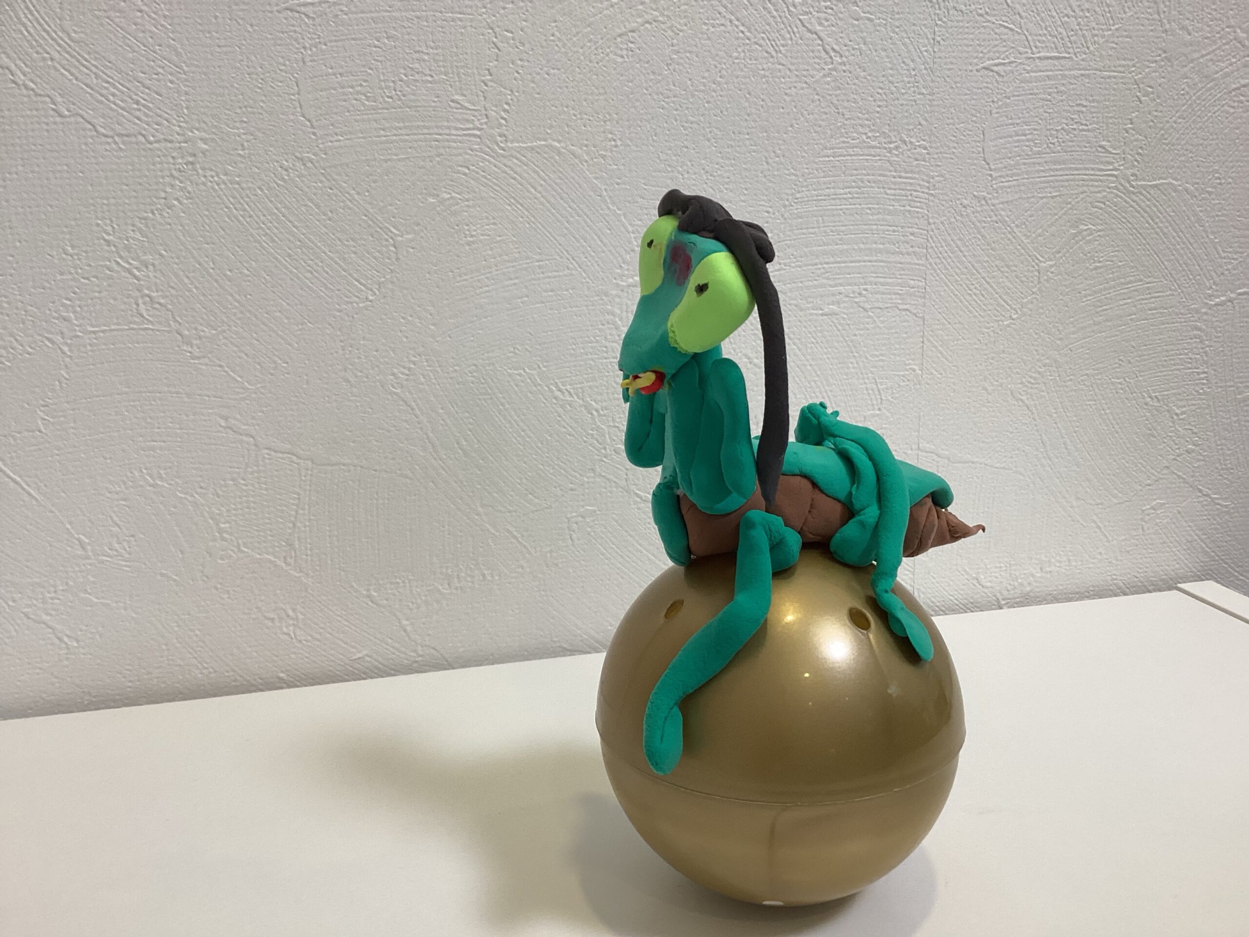 薄い紙を貼り合わせ張り子を作り、その中に錘を入れて作るのが伝統的な起き上がり小法師の作り方ですが、張り子は型を作ったり、乾くまでに数日間かかるため、今回はカプセルトイと紙粘土を使用して作ることにしました。カプセルトイとはガチャガチャ、ガチャポンなどの正式名称です。